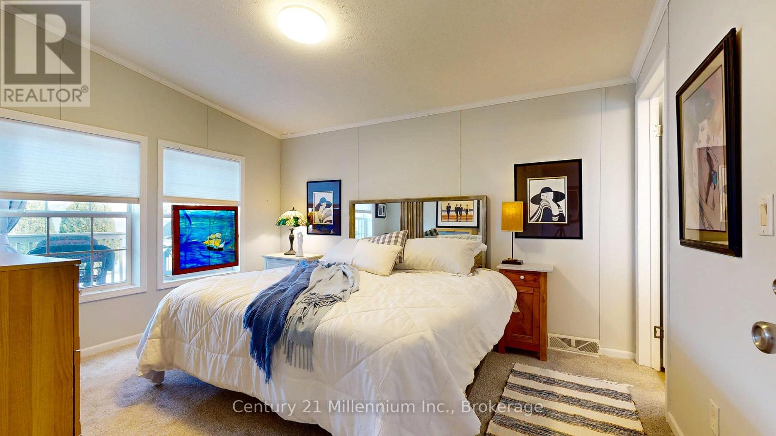 Welcome to 9 Illinois Crescent in the Parkbridge Adult 55+ Community! This well-maintained home in Park Place offers 2 bedrooms, 2 bathrooms, and a bright open-concept layout on the main floor. Recent updates include fresh paint throughout (2024), new blinds (2024), washer/dryer, fridge, stove, dishwasher, range hood all replaced (2025), new broadloom (2025), and a new modern ceramic backsplash in the kitchen (2025). Additional features include ample storage and updated countertops in the kitchen and primary bathroom (2021).Walk out from bedroom to deck featuring a tin roof gazebo with curtains and screening, propane BBQ, and a sprinkler system, perfect for morning reflections or evening entertaining. Plenty of space with potential to add a garage or carport. Enjoy a peaceful, nature-surrounded setting just minutes from trails, shopping, amenities, and the waterfront in Wasaga Beach. Furniture is negotiable. Kitchen light fixture is excluded. A fantastic opportunity for comfortable, low-maintenance living in a desirable community! (id:64974)
