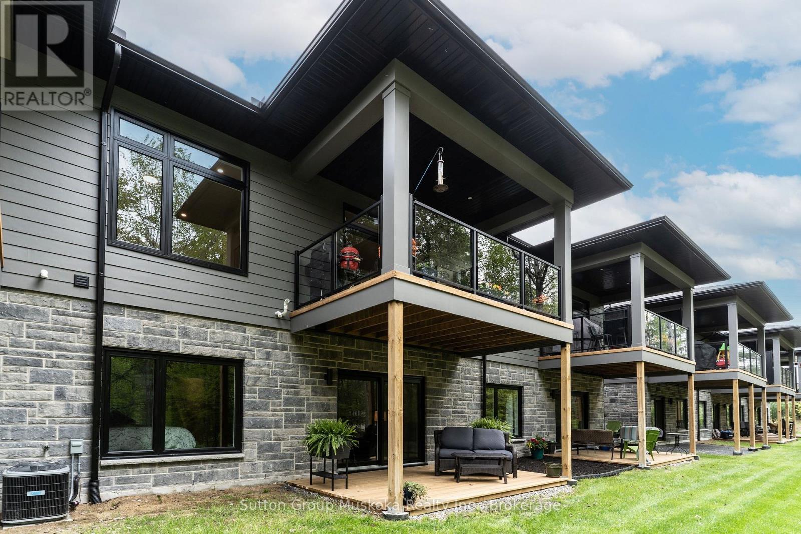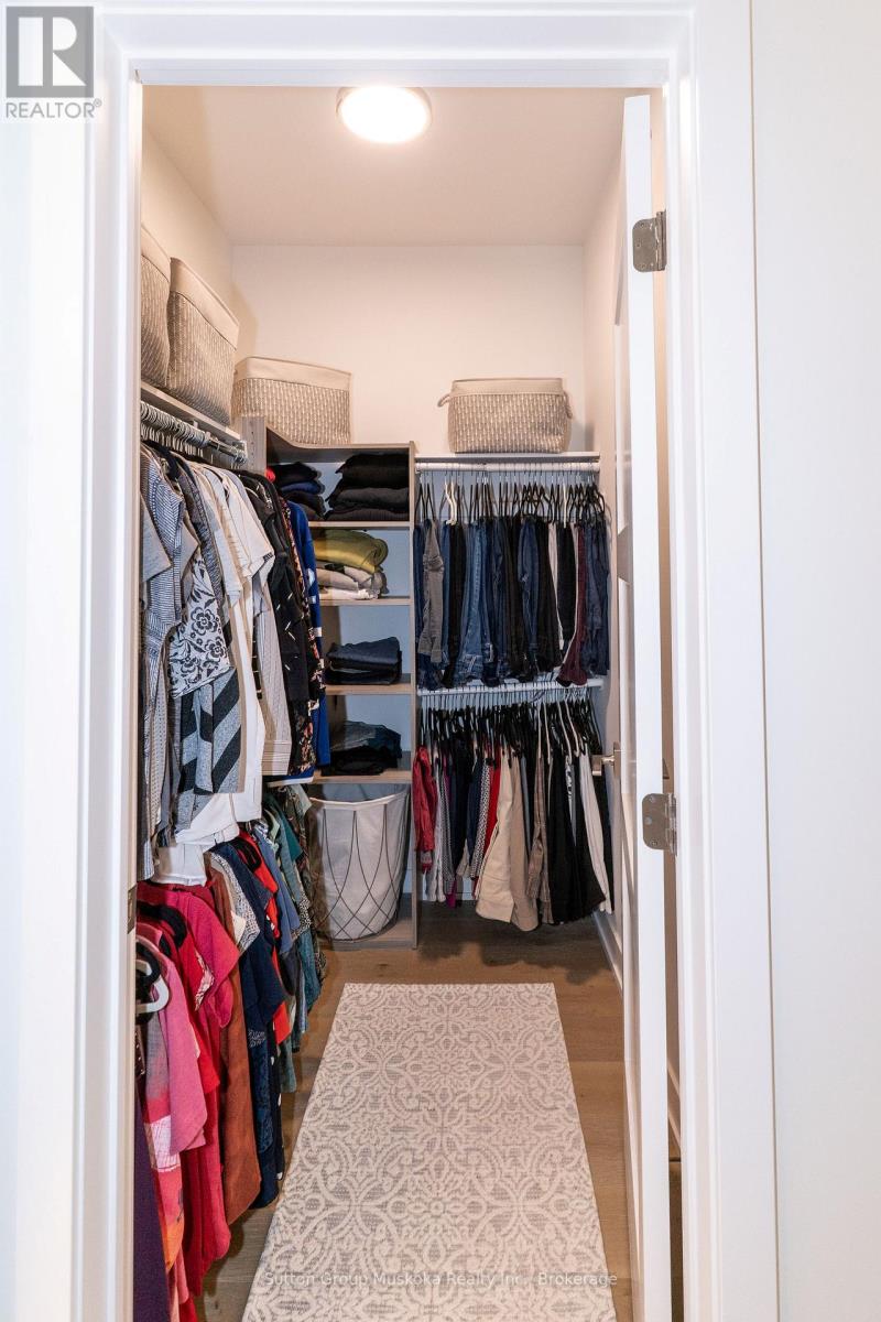 Welcome to 9 Jack Street, Huntsville. Conveniently located within walking distance to shopping & minutes to the waterfront in historic downtown Huntsville. This upgraded 2-bedroom, 2-bathroom unit is virtually brand new & includes upgraded engineered wood flooring throughout the main living area, ceramic tiled entryway, quartz counter tops, soft-close cabinets, under-counter lighting, pot lighting, main floor laundry with tiled floor and custom cabinets & more. This impressive unit has an open concept living room, dining area, and kitchen. The kitchen features a large center island with a quartz countertop, 42-inch base cabinets. The upgraded appliances, which are included, are stainless steel Frigidaire Professional series. The bright and spacious living room walks out to a large private covered deck, a great place to relax and enjoy a BBQ. The spacious primary bedroom includes a large picture window looking out to the woods, which provides loads of natural light. The bedroom also includes a private ensuite with a walk-in glassed shower and a walk-in closet with custom-built-ins for your wardrobe. On the main floor, you will also find an additional bedroom or office and a laundry room with custom cabinets and a quartz countertop. There is access from the laundry room to the garage. The lower level offers a walkout and is ready to be finished. From the walkout, there is access to a deck that walks off to the lawn and access to a walking trail, perfect for pet lovers. The basement offers plenty of room for an additional bedroom(s), family room, storage, as well there is a rough-in for a third bathroom. This home includes full town services, high-speed internet, an economical natural gas forced air furnace, central air conditioning, and an air exchanger. Located on a private street, this unit is perfect for someone looking for low maintenance and a peaceful location. Lawn cutting, gardening, and snow removal are included. (id:64974)