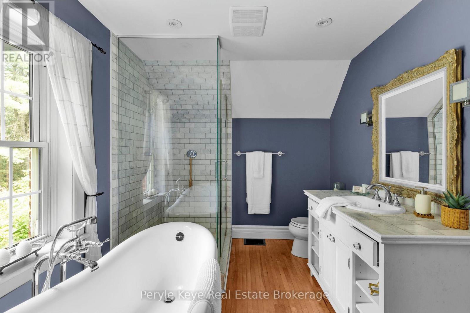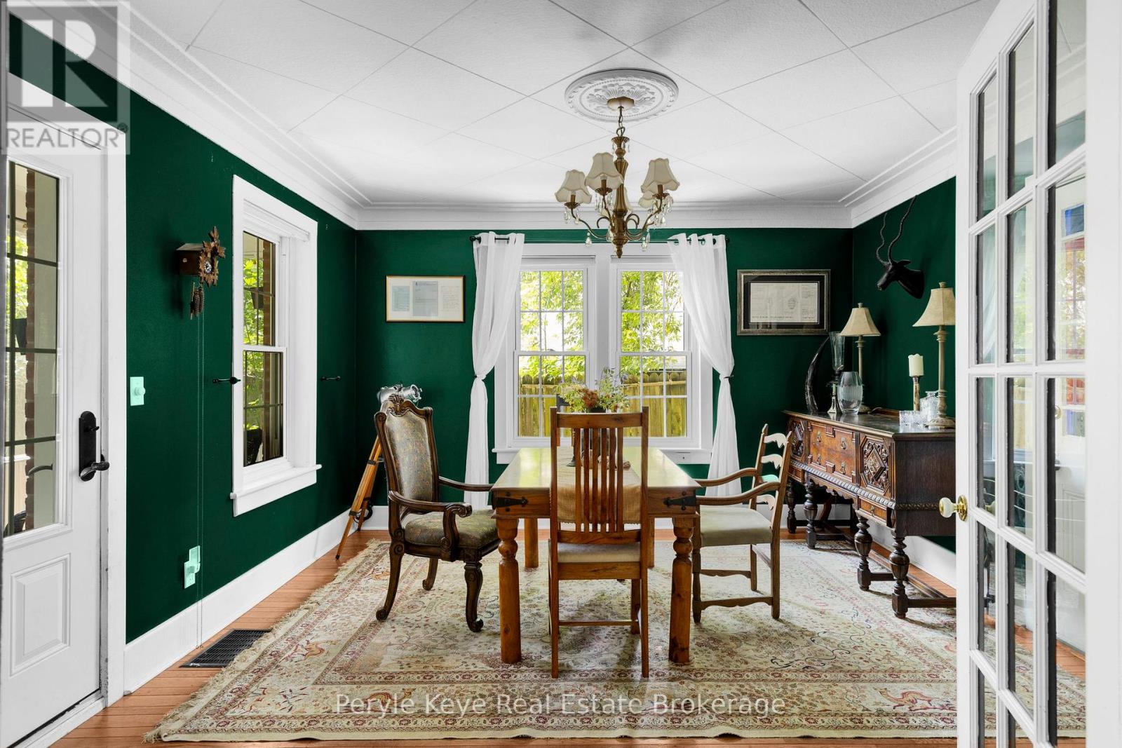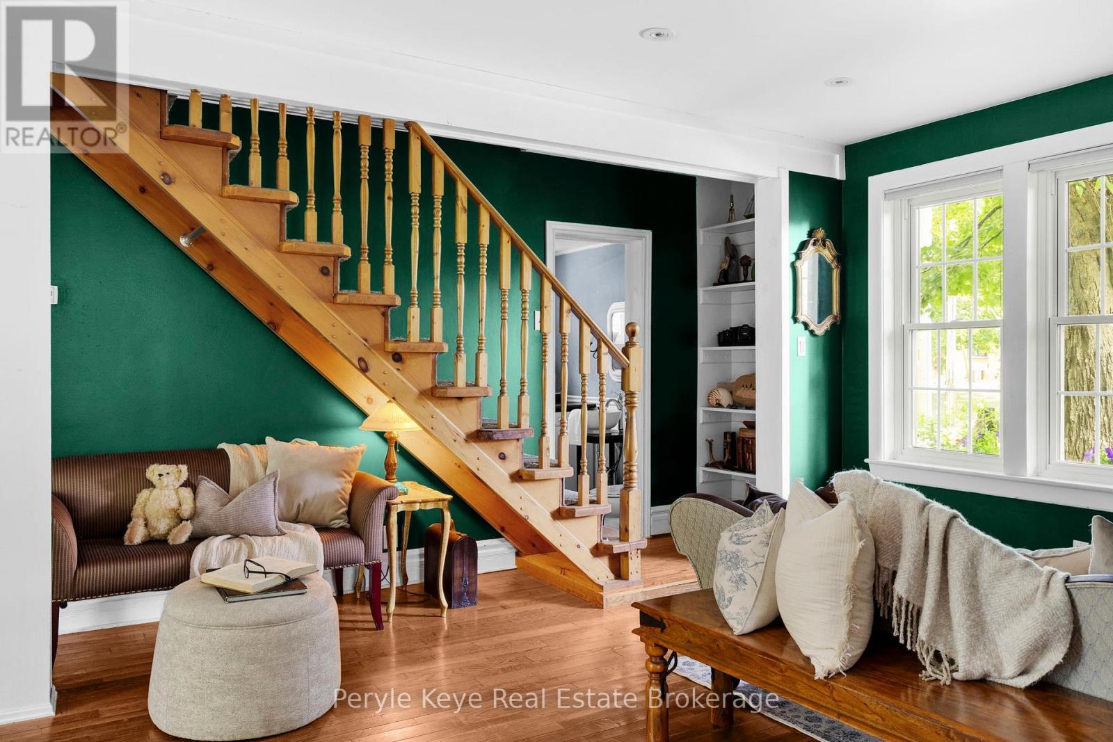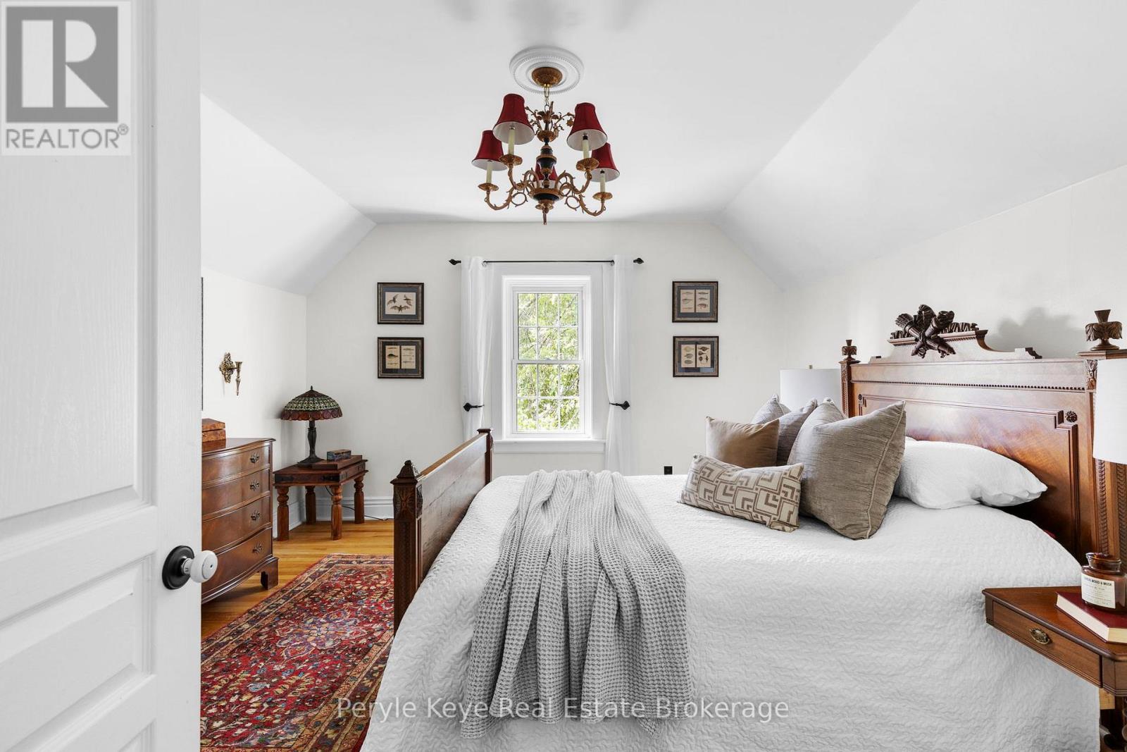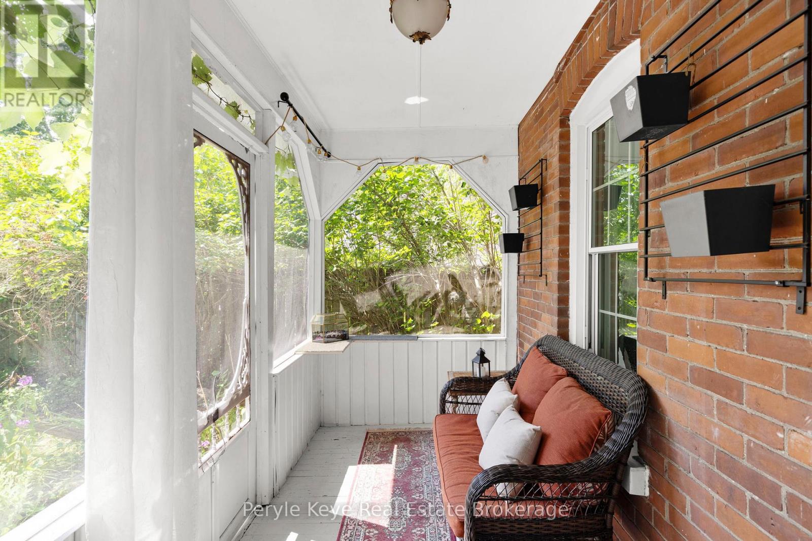 Every so often, something truly special shows up.This is one of those times. Set on a peaceful cul-de-sac, with green space and wooded trails right at your back door, 9 King Street offers a rare balance of character, privacy, and walkability. Coffee downtown in the morning. A swim in the river by afternoon. Life here keeps it all within reach. As you arrive, the brick exterior framed by a towering tree sets the tone. Step inside and the story deepens: warmth, light, and timeless character at every turn. The sleek black kitchen makes its statement with a butcher block countertop, stainless steel appliances, and soft pot lighting. A wood fireplace anchors the living room, surrounded by windows that frame the seasons. Its a place for slow reads and long talks.The dining room invites connection. Evenings begin around the table, then drift to the screened-in porch, where conversation lingers long after the plates are cleared. A Muskoka room offers another place to pause, the perfect spot to rest after tending the gardens. A 2 pc guest bath and laundry complete the main level. Upstairs, a spacious primary bedroom and a comfortable guest room offer quiet retreats. The spa-inspired 4 pc bath features a glass shower a clawfoot tub. Plus, two tucked-away nooks - right now they are closets, but with a little creativity? They could be so much more. Think an entry with a hidden bookcase door or a dormer that turns it into your next favourite room. Inside, the world slows. Outside, it opens up-private, well-treed, and spacious. Picture a bonfire glowing under the stars or afternoons spent unwinding in natures embrace. Here, fires crackle, garden beds bloom, and you feel worlds away from the pace of town. Historic charm matters everyday convenience with full municipal services, natural gas heat, and high-speed internet available. Art, nature, and community-all right here.This is where town meets quiet. Where history meets possibility. And where life-finally-feels like it fits. (id:64974)