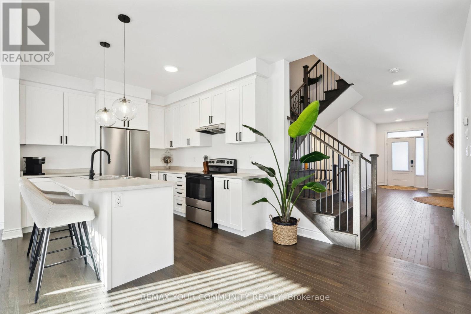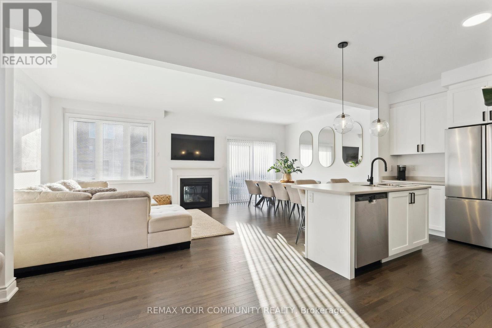 Welcome to 9 Lisa Street - a stunning, brand new home in The Villas of Upper Wasaga by Baycliffe Homes, located in the highly desirable Wasaga Sands Community. This unique 4-bedroom end-unit townhome lives more like a semi, offering exceptional privacy and an abundance of natural light throughout. Step into a spacious and welcoming front foyer with a large closet and a bright 2-piece powder room. The main level is open and elegant, featuring soaring ceilings, gleaming hardwood floors, and a stylish kitchen complete with upgraded cabinetry, brand new stainless steel appliances, a large island, a cozy breakfast area, and sleek, modern finishes. Just off the Kitchen, you'll find a spacious sunken laundry room with a convenient sink, adding both functionality and charm to the main floor layout. The great room offers the perfect place to gather and unwind, highlighted by a warm gas fireplace and sliding patio doors that lead to a freshly sodded backyard-ideal for outdoor relaxation, kids, or pets. There's also a bonus mudroom with garage access, ideal for coats, boots, and everyday essentials. Upstairs, discover four generously sized bedrooms and two full bathrooms. The luxurious primary suite features a large walk-in closet and a beautifully designed ensuite with double sinks, a spacious shower, and a freestanding soaker tub for the ultimate retreat. The unfinished basement is a wide-open canvas with a rough-in for a bathroom, hot water on demand, and an HRV system-ready for future expansion or customization. Click the Multimedia tab to view the video tour! This home is a must-see! (id:64974)