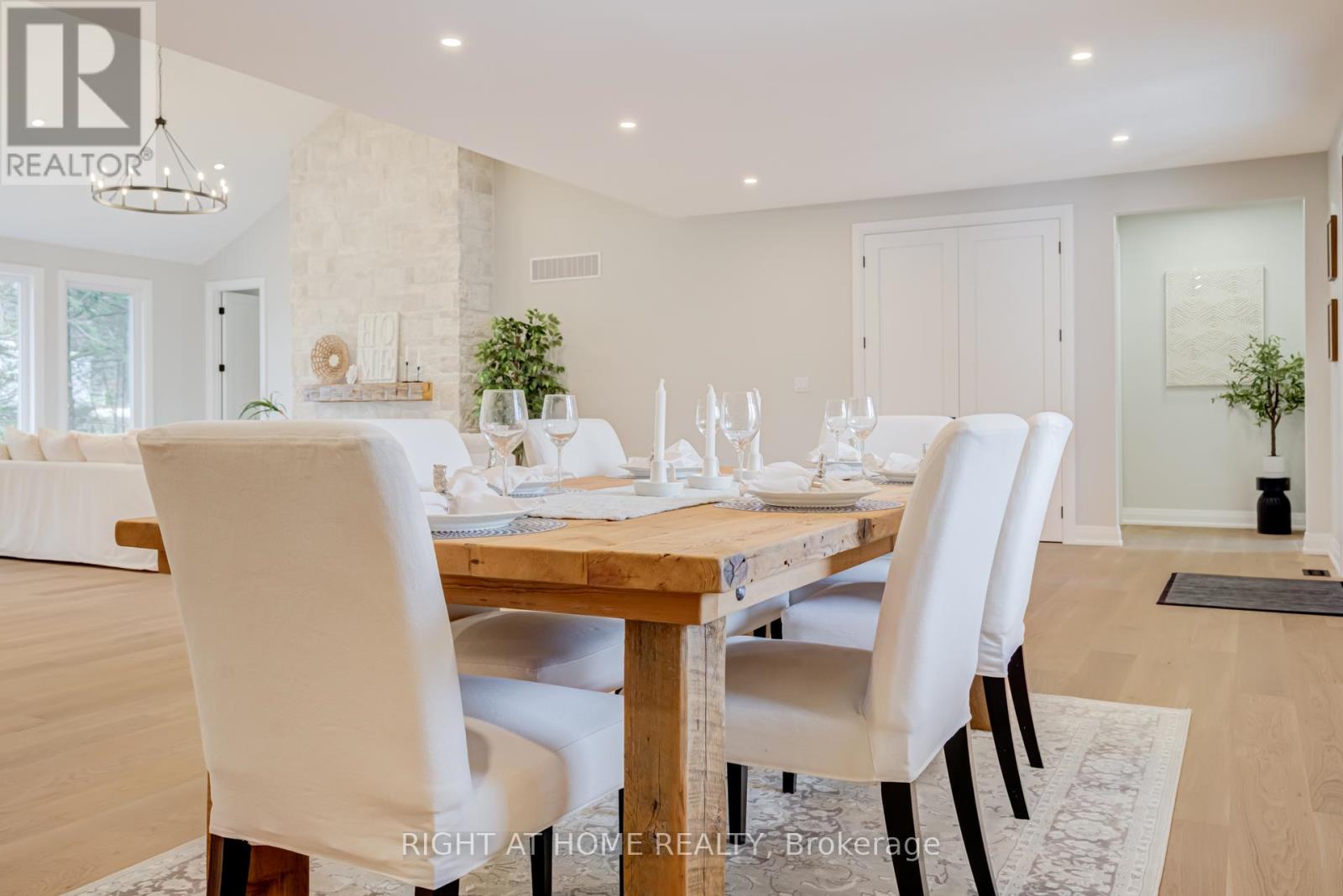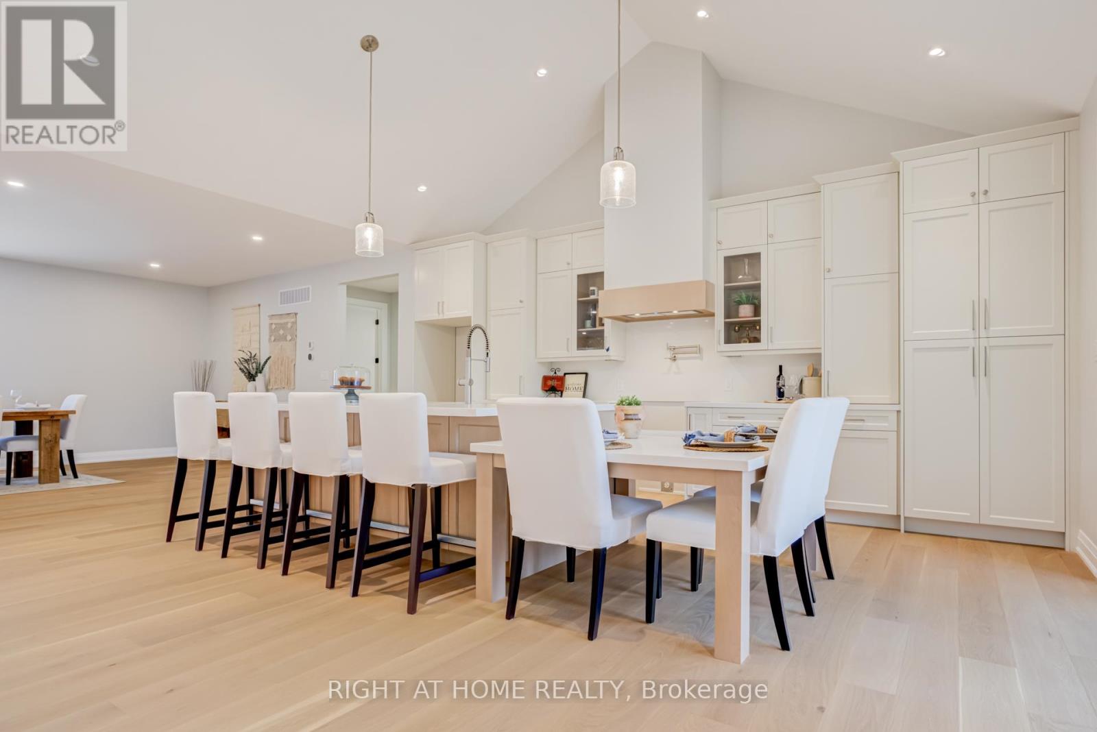 This gorgeous bungalow is looking for a family to call it home! Custom built open concept with 4 bed, 3.5 bath and 3145 sq ft of exquisitely finished space. Nearly 6300 sq ft in total! A stunning cathedral ceiling spans the kitchen and centres upon the cozy stone-clad gas fireplace adorned with a farmhouse chandelier in the living room. The interior finishes are elevated with recessed lighting and wide plank hardwood floors throughout. The show-stopping white and hardwood kitchen with gleaming quartz counters & continuous backsplash is sure to impress, with a built-in lower seating area, cabinetry on both sides of the island, walk-in pantry, pot filler for added convenience and statement glass cabinets. The laundry room has it all - cuteness and practicality with an oversized stainless steel sink, tons of cabinetry and natural light, open shelving, clothes hanging bar, quartz countertops, and even a stop-n-drop for coats and shoes. The Primary suite is a dream, offering privacy through separation from the other bedrooms, a walk-in closet outfit with built-in cabinetry and countertop, and a 5pc ensuite with heated floors, free-standing tub, private water closet, double vanity and glass shower. So much more to see! Generous 100 x 150 ft lot on quiet street in sought after Caledon Village. Tarion New Home Warranty. Awesome commuter location - 15 mins to Brampton or Orangeville! To be completed May 2026: Final grading, grass seeding, rear deck railing (black alum. pickets) and steps, interlock path to front door and steps, driveway to be widened to 3 car. (id:64974)