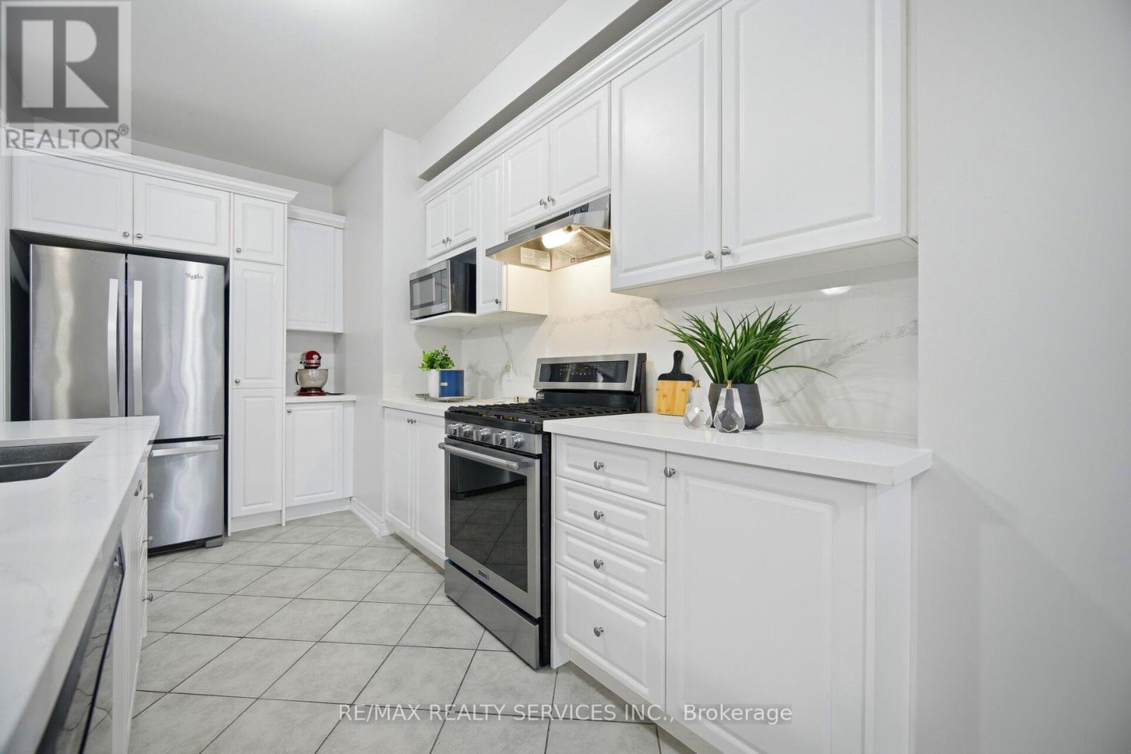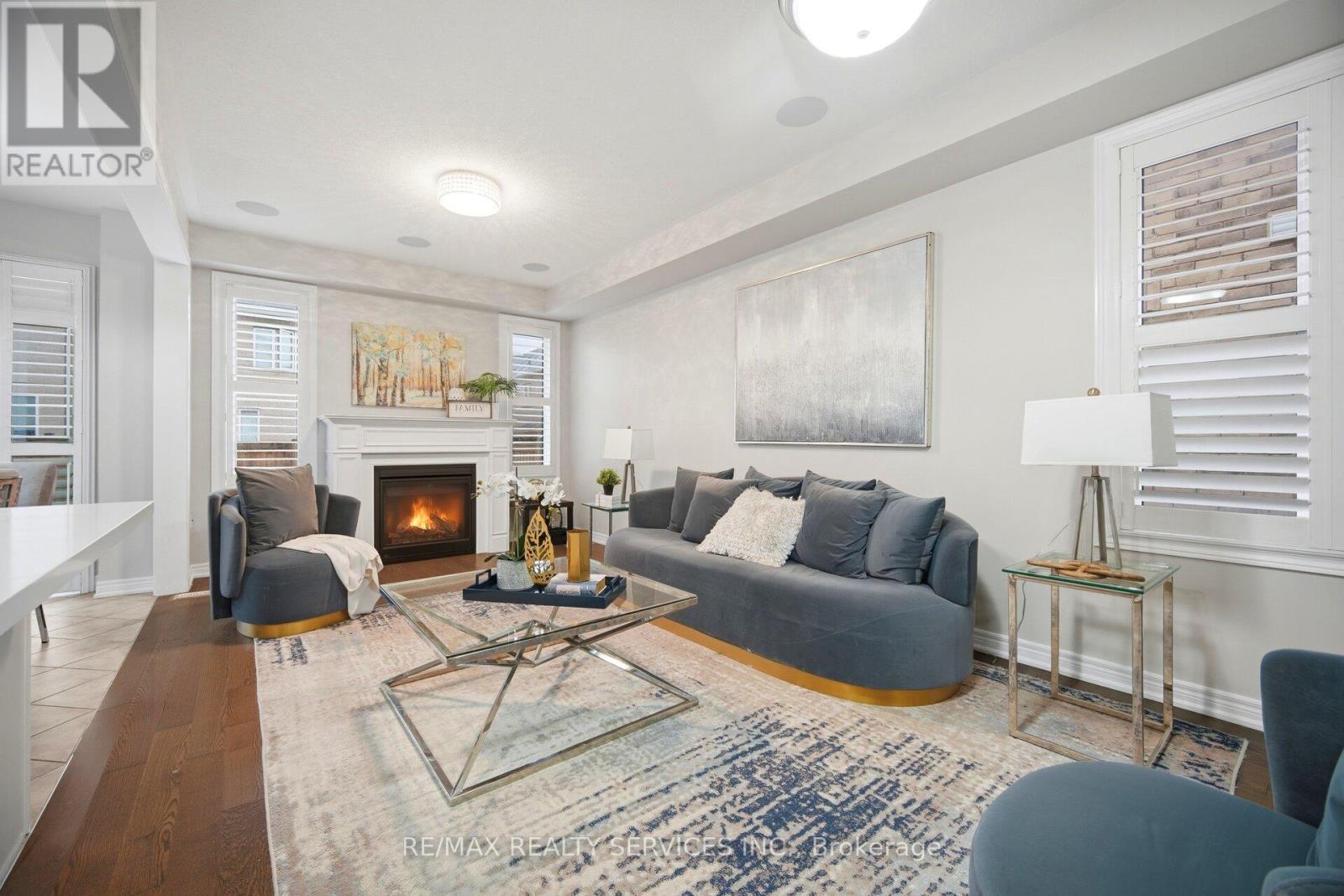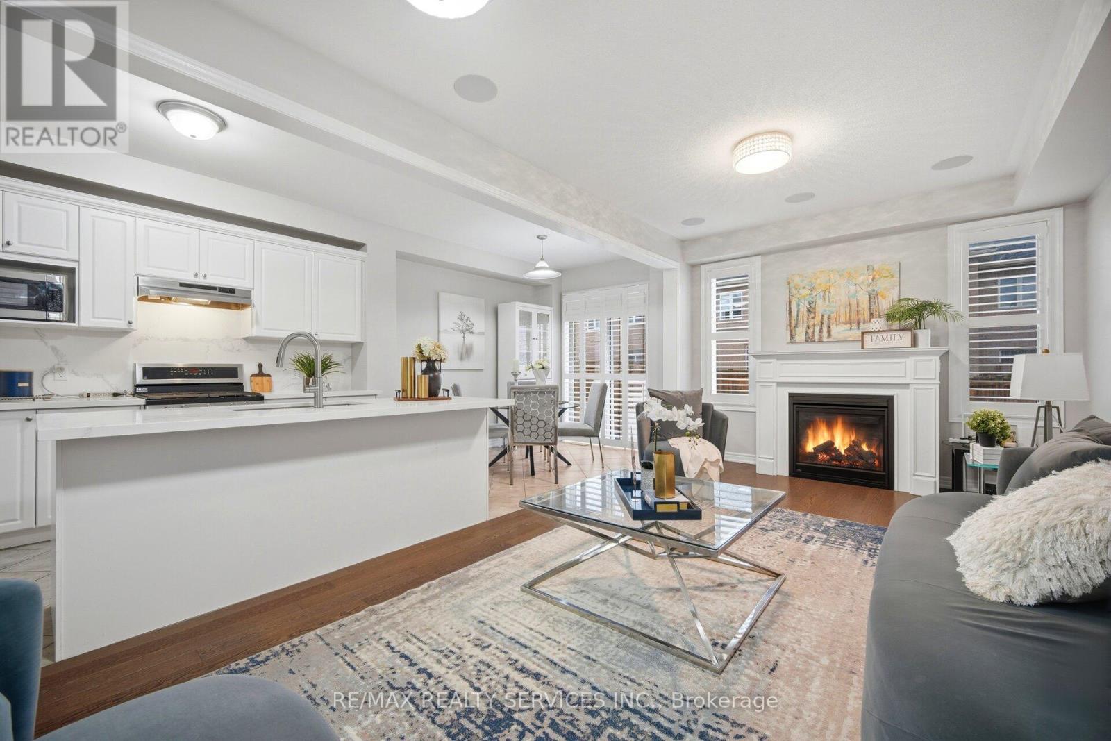 ** Luxury Rosehaven Built ** //1815 Sq Ft// Fully Freehold 2 Storey Stone Elevation End-Unit Town House With No Side Walk For Extra Parking In Prestigious Southfields Village Caledon! ** No Side Walk ** Can Fit 2 Cars In Driveway! Open Concept Layout In Main Floor Including Gas Operated Fireplace, 9 Feet High Ceilings & Hardwood Flooring!! Open Concept Sun-Filled Move-In Ready House! Solid Oak Staircase!! **No Carpet In The House** Chef Inspired Kitchen With Brand New Quartz-Countertop & Matching Back-Splash, Massive Center Island, Drawer Units, Microwave Shelf & Crown Molding!! 3 Generous Size Bedrooms Including - Master Bedroom Comes With 5 Pcs Ensuite & Walk-In Closet* Laundry Is Conveniently Located In 2nd Floor* Brand New Laminate Floor In 2nd Floor! Freshly & Professionally Painted Whole House! Walking Distance To Park & Schools! Few Steps To Etobicoke Creek! Shows 10/10 (id:64974)