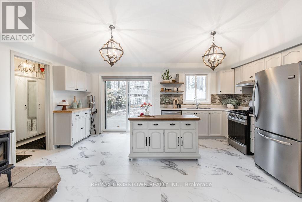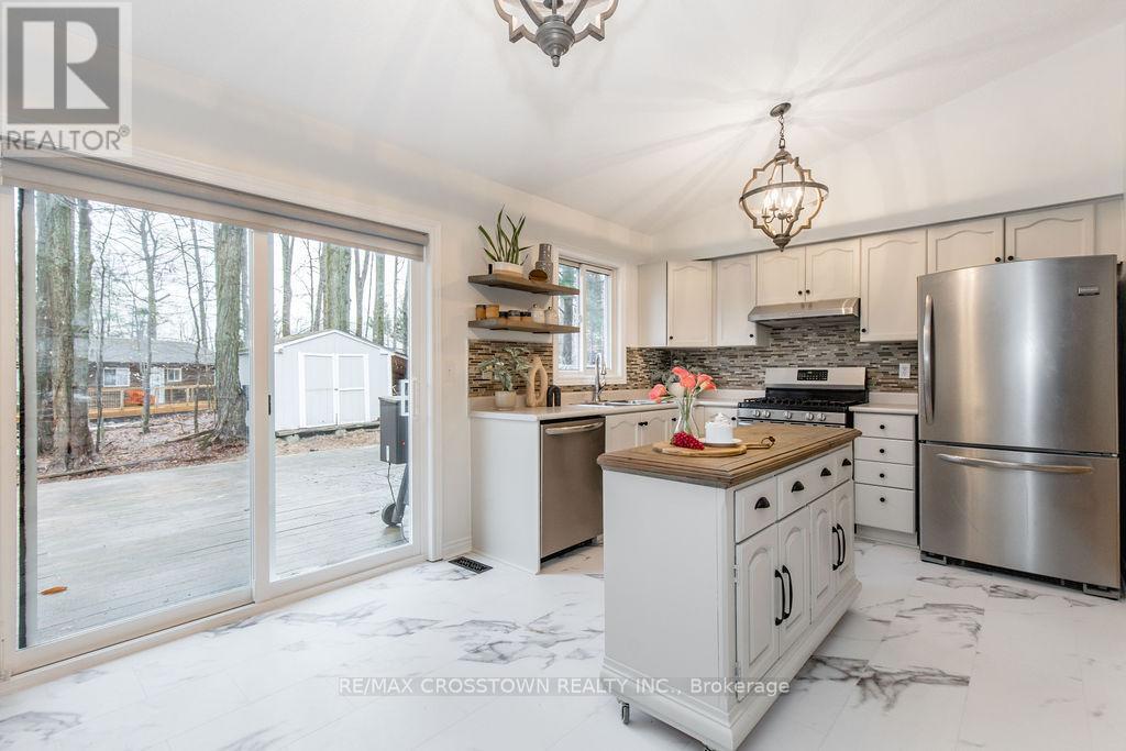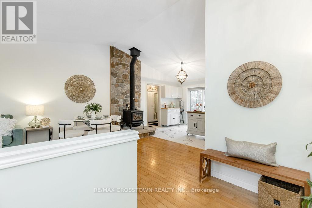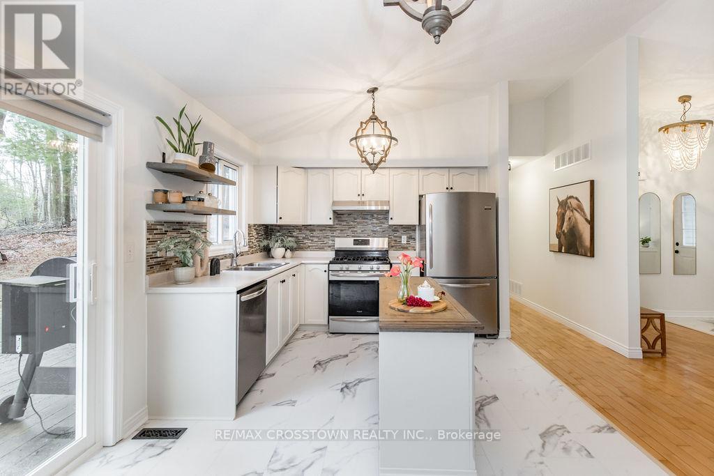 Welcome to 9 Monica Road, set in the highly sought-after community of Sugarbush, where lifestyle meets nature. Located on a quiet dead end street and Surrounded by mature trees and scenic beauty, this spacious 5-bedroom, 3-bathroom home is the perfect fit for a growing family. Set on a spacious lot, enjoy coffee on the front porch, and a 2 car garage with separate entrance. Inside this carpet free home, you'll find a bright and inviting layout that has been recently updated throughout, featuring fresh paint, new kitchen floors, new hardware, and all new lighting. 3 main floor bedrooms, including the primary with ensuite bathroom. The home offers multiple walkouts leading to your private, treed backyard, creating a seamless connection between indoor living and the peaceful natural setting. A cozy wood-burning fireplace adds warmth and charm, perfect for relaxing after a day outdoors. With a finished lower level, there is excellent potential for an in-law suite or multi-generational living with 2 bedrooms, family room and a newly renovated bathroom. Located just minutes to golf courses, skiing, trails, and all that Horseshoe Valley has to offer, this is a rare opportunity to own a home that truly captures the essence of the Sugarbush lifestyle. New Furnace in 2023, roof replaced in 2019 decks built in 2016. (id:64974)