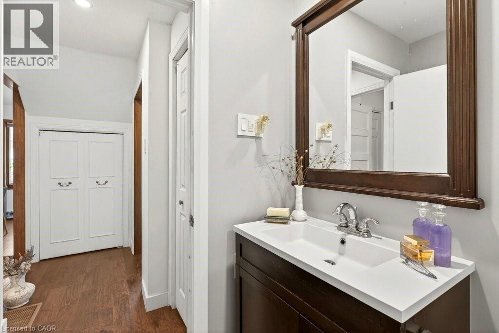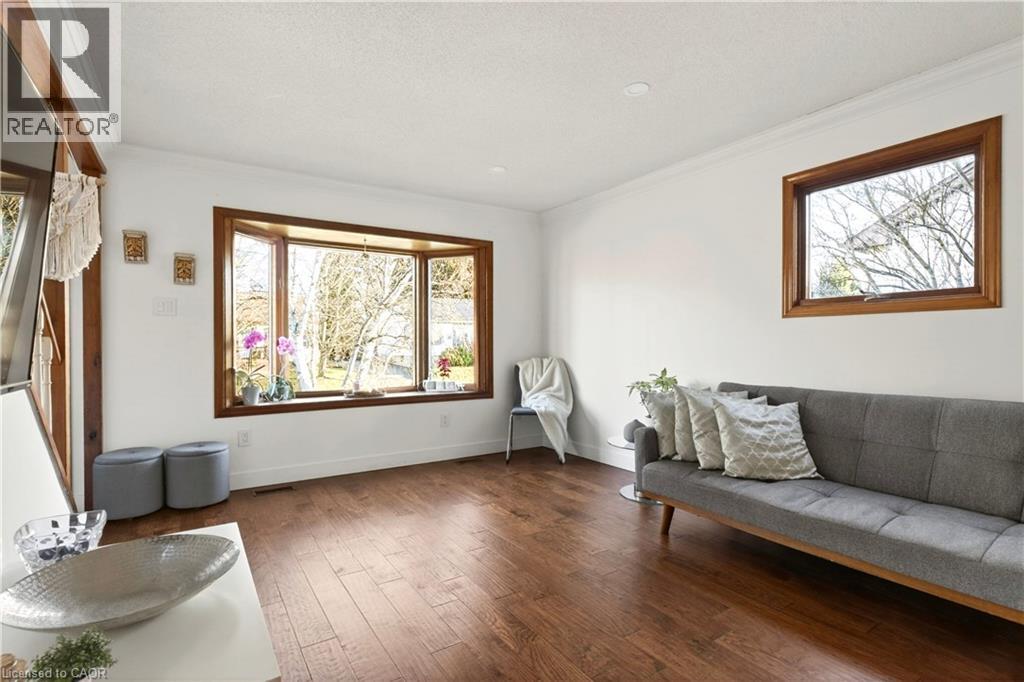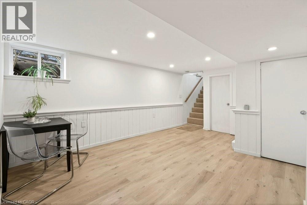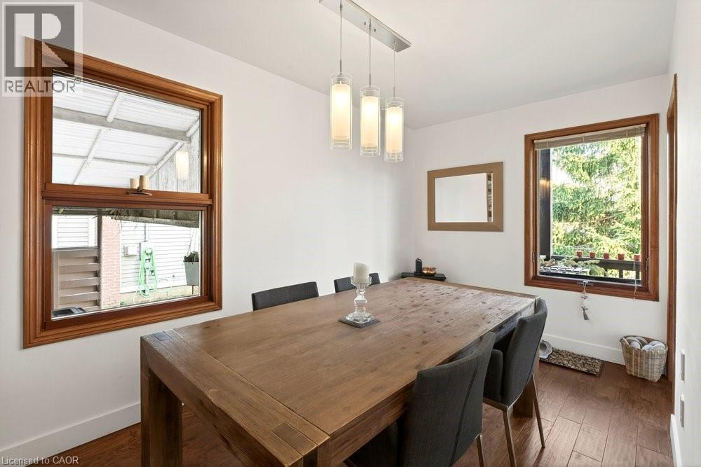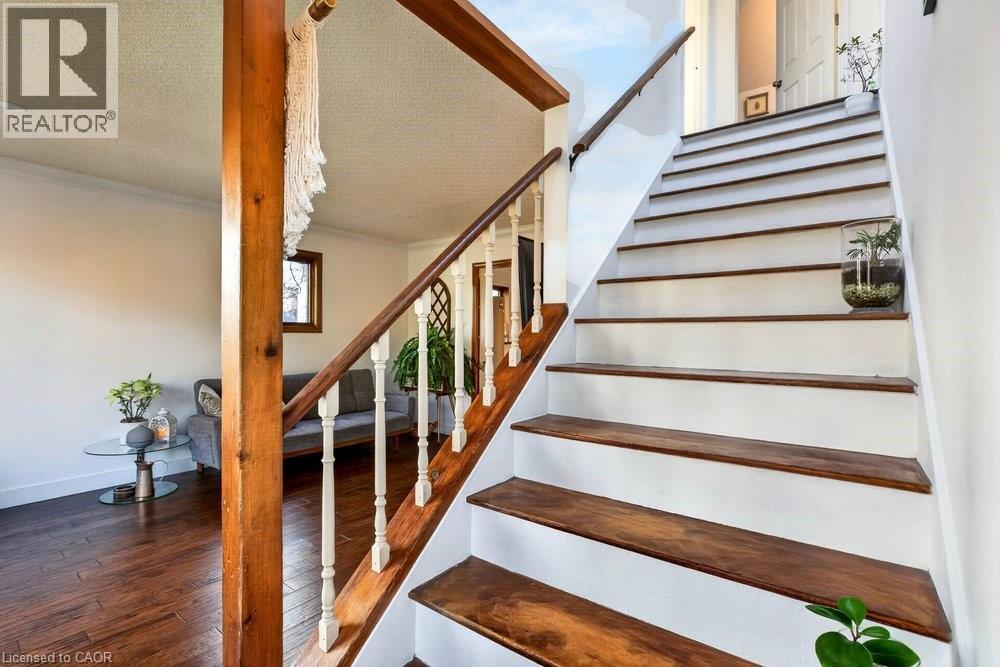 Enjoy the peaceful setting of this updated, move-in ready home in a quiet yet convenient Dundas location. With inviting Arts & Crafts curb appeal, this charming 1 ½-storey, 3-bedroom, 1.5-bath home blends character with thoughtful modern updates. Step inside to a light-filled living room overlooking mature trees and front gardens. A pocket door leads to the stylish kitchen featuring white cabinetry, glass tile backsplash, built-in stainless steel appliances, and space for a casual bistro table. A formal dining room, main-floor bedroom, and updated 4-piece bath complete this level, along with a standout mudroom with access to both the backyard and the newly finished basement. Upstairs, a skylight brightens the staircase leading to a spacious primary bedroom with a walk-in closet, an additional bedroom or office, and a convenient 2-piece bath. The finished basement adds large above grade windows for bright additional living space. Enjoy a large rec room, 2 rooms (a gym and a den with a daybed), the laundry room, storage, and a cold room. Outdoors, enjoy landscaped gardens, a fenced yard with a deck and sitting areas to enjoy escarpment and valley views, ever changing seasonal views and beautiful sunsets. A large shed with hydro is ideal for a workshop or extra storage. Located close to schools, parks, trails, transit, and just a short stroll to the village, with parking for up to five cars plus a carport—this home offers a relaxed, comfortable lifestyle in a sought-after setting. (id:64974)
