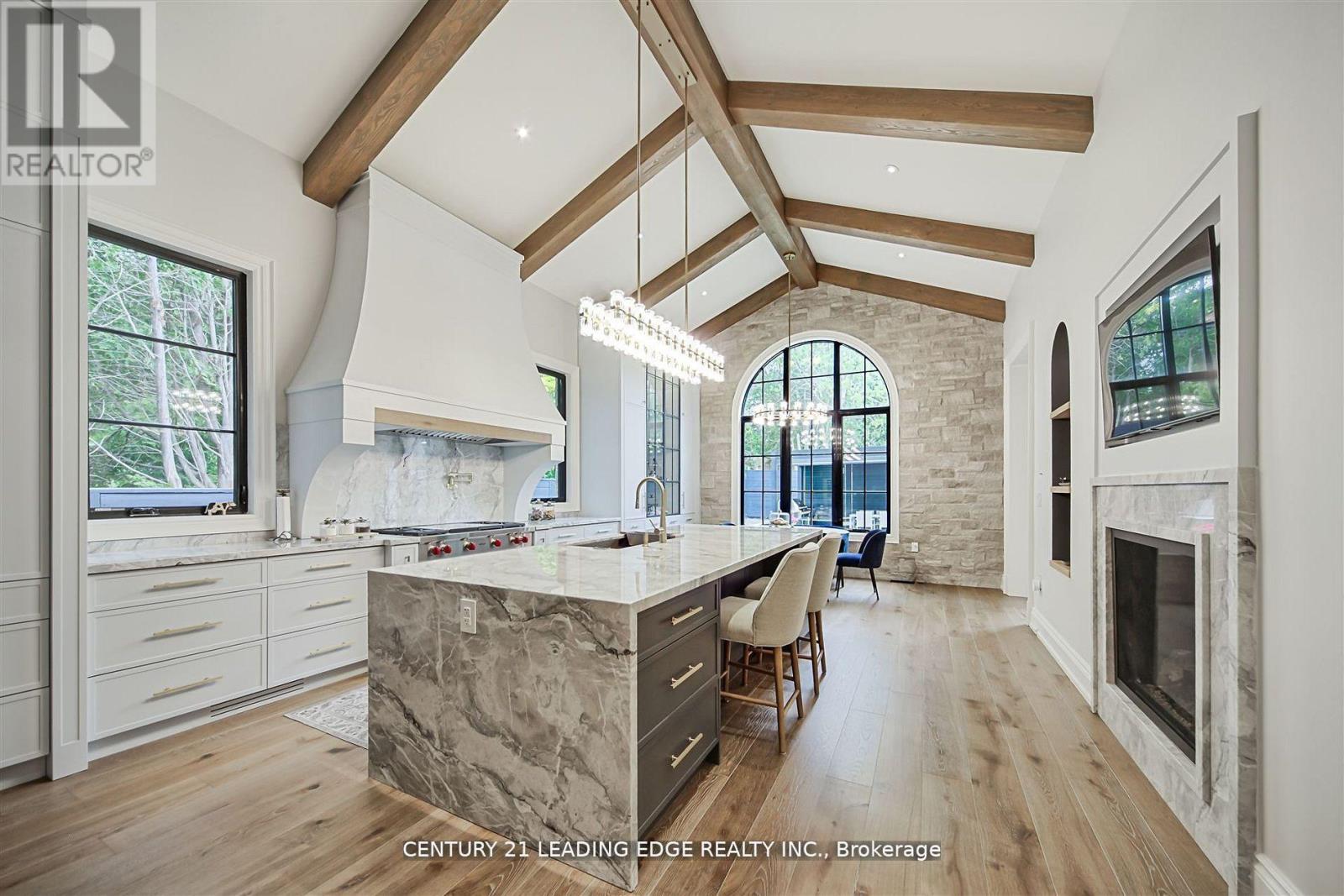 An Incredible French Country architectural masterpiece with timeless appeal, epitomizes luxury blending elegance and comfort, meticulously curated. A prestigious Bungaloft with a total living space of 6350 sq.ft. with approx 4000 sq.ft. above grade and a 2400 sq.ft. lower, at grade level walkout, with huge windows. Opulent Exterior is Natural Indiana Limestone and Smooth Hard Limestone, Heated Driveway, Arched Hallways and Doorways, soaring 12 ft Ceilings, plus 14 and 15 ft arched and cathedral ceilings on the main floor, Elevator, 3 Large Fireplaces, A fantastic culinary designer Kitchen, straight out of a magazine, Sub Zero, Wolf, Cove, Bosch Appliances, Miele and LG Washers/Dryers, Extensive Millwork, Backyard Oasis with huge covered/automatic opening, modern LED lighting, Patio Pergola w/outdoor Kitchen. Too Many upgrades to list. Must come and see. Details through-out are impeccable.Steps to all amenities such as Donalda Club and top-rated private schools, Crescent School, Crestwood, Bayview Glen, and Toronto French School, Granite Club. DVP, Hwy 401, Toronto Botanical Gardens. (id:64974)