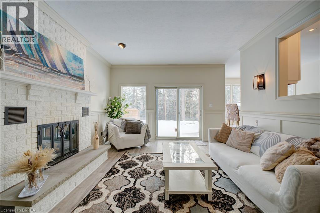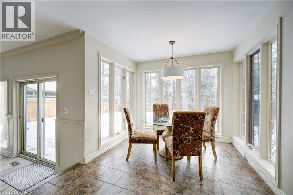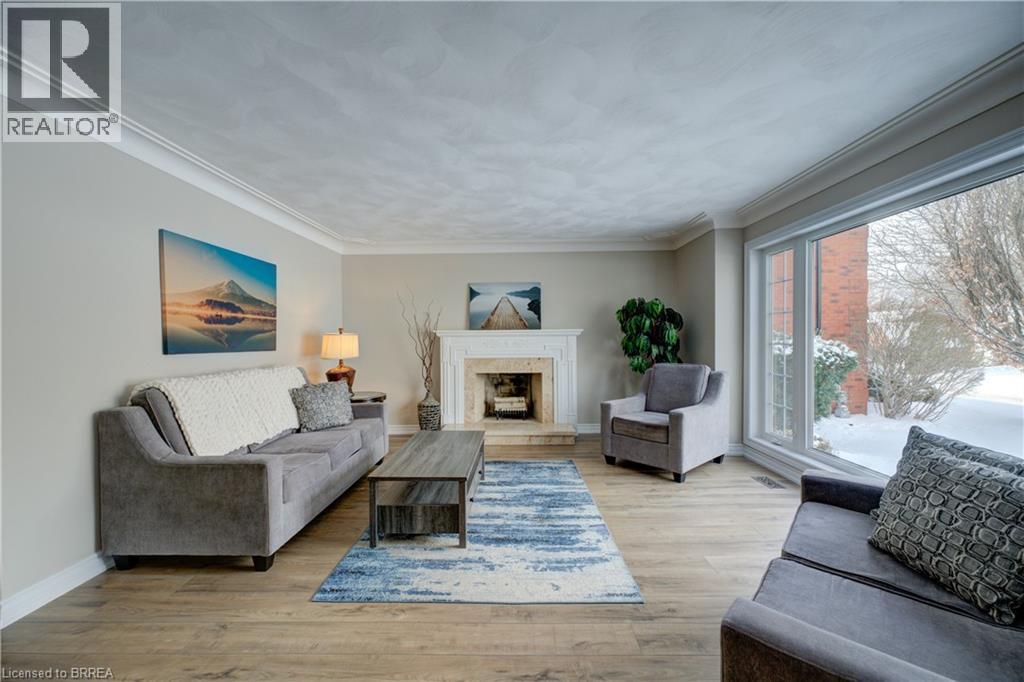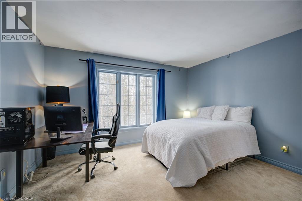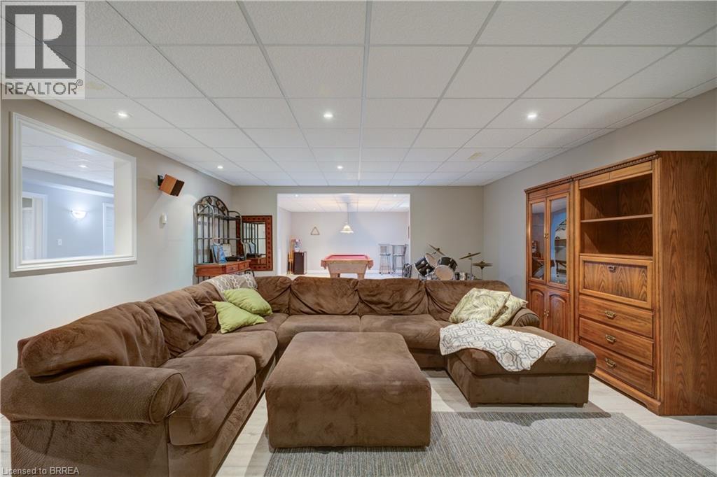Prestigious Court location close to Brantford Golf and Country Club. Private ravine lot with newer inground pool. Grand entranceway with spiral staircase and vaulted ceilings. Front sitting room with large window and natural wood fireplace. Main floor office with beautiful wood inlays and built-in shelves and cabinets. Large formal dining room with bay window overlooking rear wooded area. Newly renovated kitchen, eat-in area with three walls of windows overlooking inground pool. Sunken main floor family room with natural wood fireplace. Beautiful main floor, laundry room with built-in overhead cabinets and lowers. Upper level: Four spacious bedrooms. Large primary suite with bay window overlooking ravine, recently renovated 4pc bathroom with jet, soaker tub, and glass shower, his and her sinks and walk-in closet. Second level: 4pc bathroom recently renovated. Large renovated bright lower level. Rec room with gas fireplace and pool table area, separate home gym and three-piece bathroom. Fully fenced rear yard with newer, inground pool 2023, hot tub with gazebo and stamped concrete; all overlooking picturesque private wooded ravine. (id:64974)