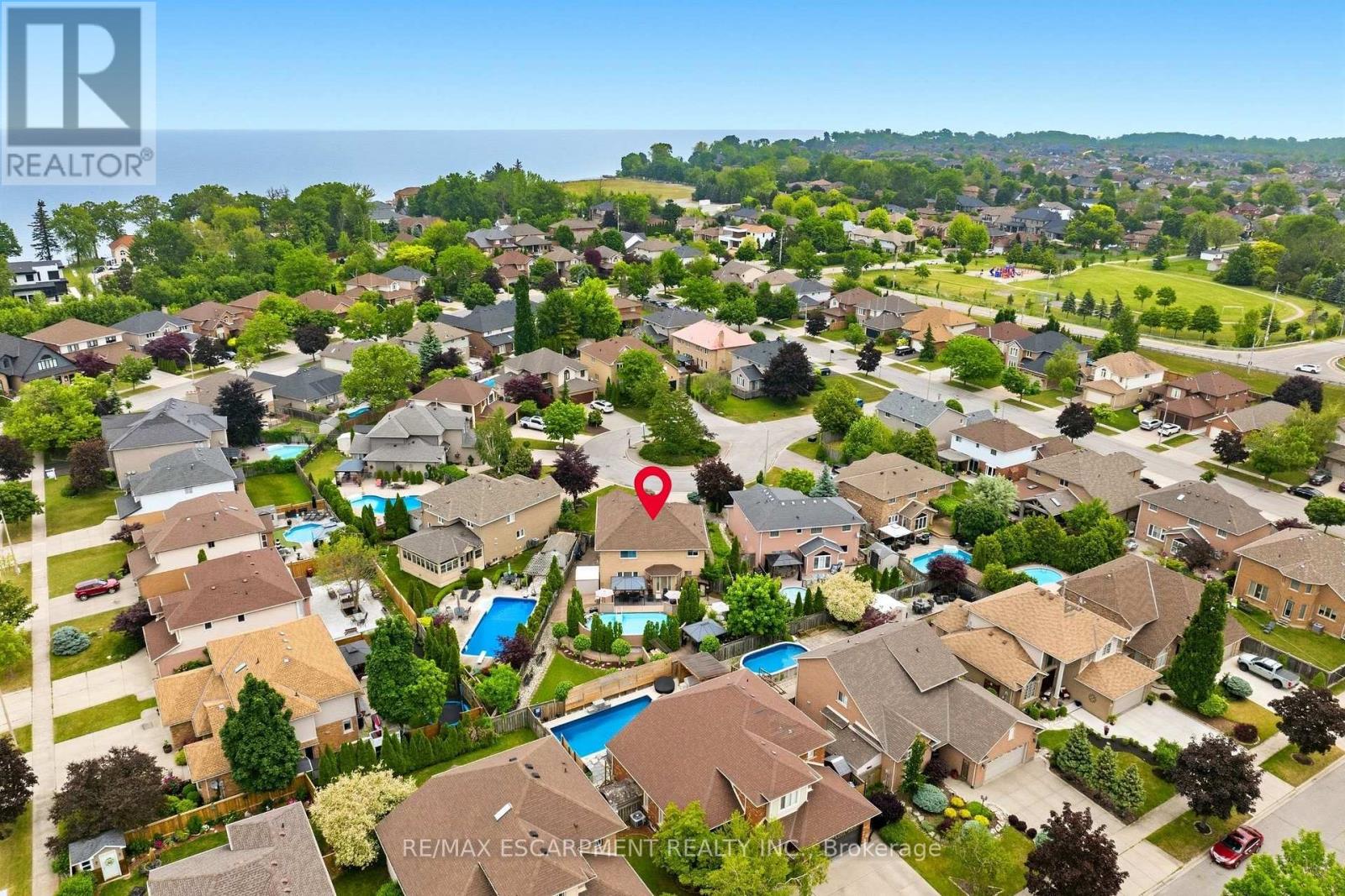 Steps from Lake Ontario, this custom-built four-bedroom home is located in the prestigious Beach Community and Fifty Point neighbourhood of Stoney Creek. Meticulously maintained and fully finished on all levels, the home offers a functional layout with multiple living areas designed for everyday living and entertaining. The kitchen features granite countertops and abundant cabinetry, while the spacious primary bedroom includes a private ensuite and two walk-in closets.The versatile lower level provides additional living space ideal for a home theatre, gym, or games room. A double-car garage and driveway offer ample parking. Professionally landscaped front and rear yards enhance the home's curb appeal, and the private backyard retreat features an above-ground pool surrounded by mature greenery.Situated on a quiet court with an approximate lot size of 47 x 171 feet, this property offers an exceptional lifestyle with close proximity to schools, lakefront trails, marinas, highway access, GO Transit, shopping, and dining. A rare opportunity in one of Stoney Creek's most desirable locations. (id:64974)