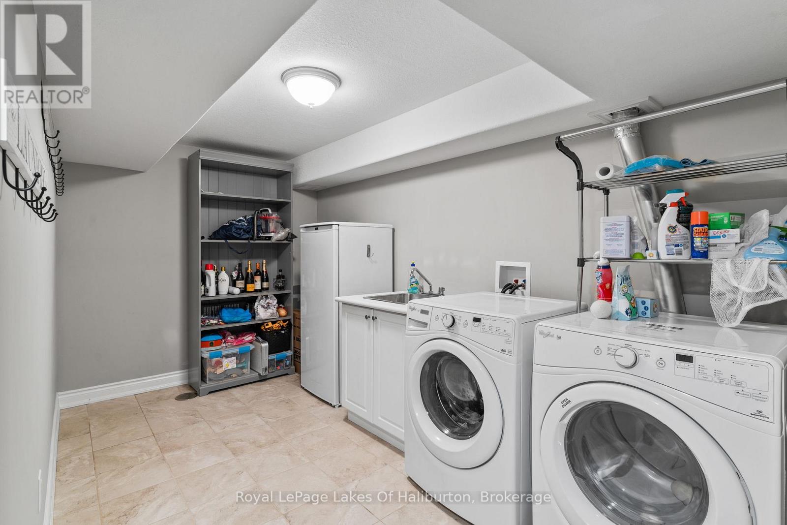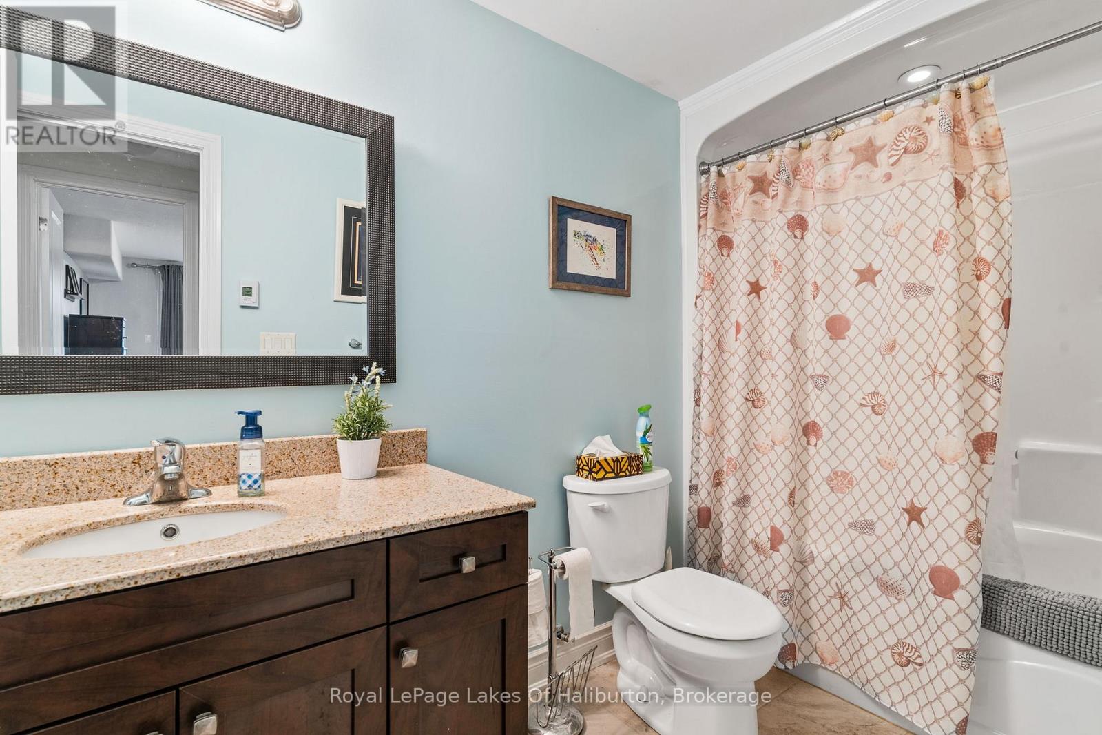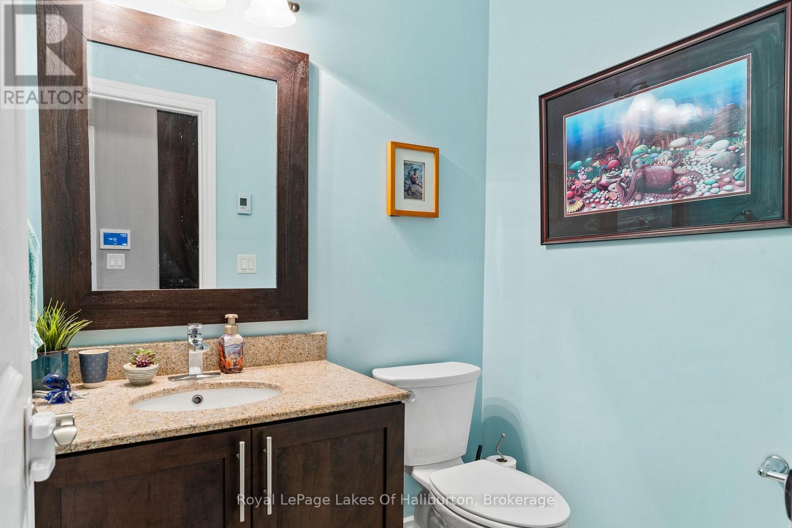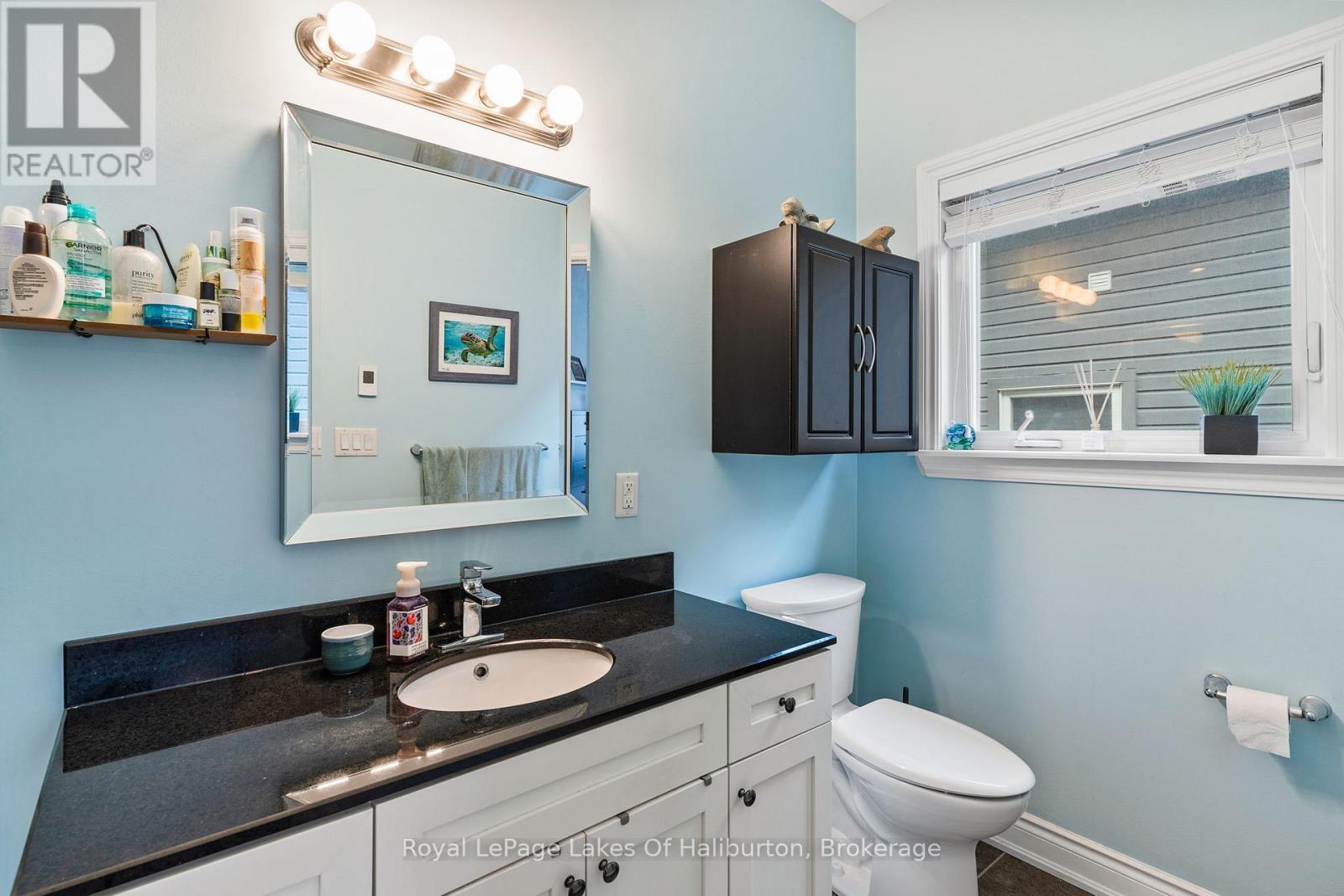 Welcome to this 4-bedroom, 4-bathroom executive home in the prestigious Silver Beach waterfront community on Kashagawigamog Lake, part of the sought-after 5-lake chain. With 2,955 sq. ft. of refined living space, this home combines quality craftsmanship, luxury finishes, and spectacular lake views.The foyer offers keyless entry, retractable screen, and tile floors leading to a gourmet kitchen with upgraded cabinetry, granite counters, under-cabinet lighting, sit-up area, stainless steel appliances, and elegant fixtures. The great room impresses with cathedral ceilings, a stunning floor-to-ceiling stone propane fireplace, hardwood floors, soaring windows, and walkout to a lakeside composite deck featuring a cedar timber-frame pergola and BBQ area and endless lakeviews.The primary suite provides a peaceful retreat with walkout to the deck and awning, ceiling fan, ensuite with heated floors and glass shower. The upper level offers a bright family room with glass panels overlooking the great room, high ceilings, hardwood flooring, 2 bedrooms, carpeted, ceiling fans, and custom blinds, while a walk-in closet area adds generous storage and 4pc bath with soaker tub.The lower level features a spacious rec room with propane fireplace, pot lights, and walkout to an interlocking lakeside patio. A guest suite offers a walkout to waterside patio, walk-in closet, and 4-pc ensuite. Additional highlights include, all bathrooms with heated floors, a multi-zone HVAC system, new hot water on demand (2025), 18W Generac generator, NFTC fibre optics, and a heated, insulated garage with storage and retractable screen. Exterior upgrades include programmable soffit lighting, glass railings, firepit area, and under-deck shielding.Enjoy exclusive access to the Silver Beach Clubhouse featuring a grand hall, kitchen, fitness center, games room, guest suite, two beaches & trails, close to Haliburton for all your amenities. Dock slip available to purchase ($25K). See full list of features. (id:64974)