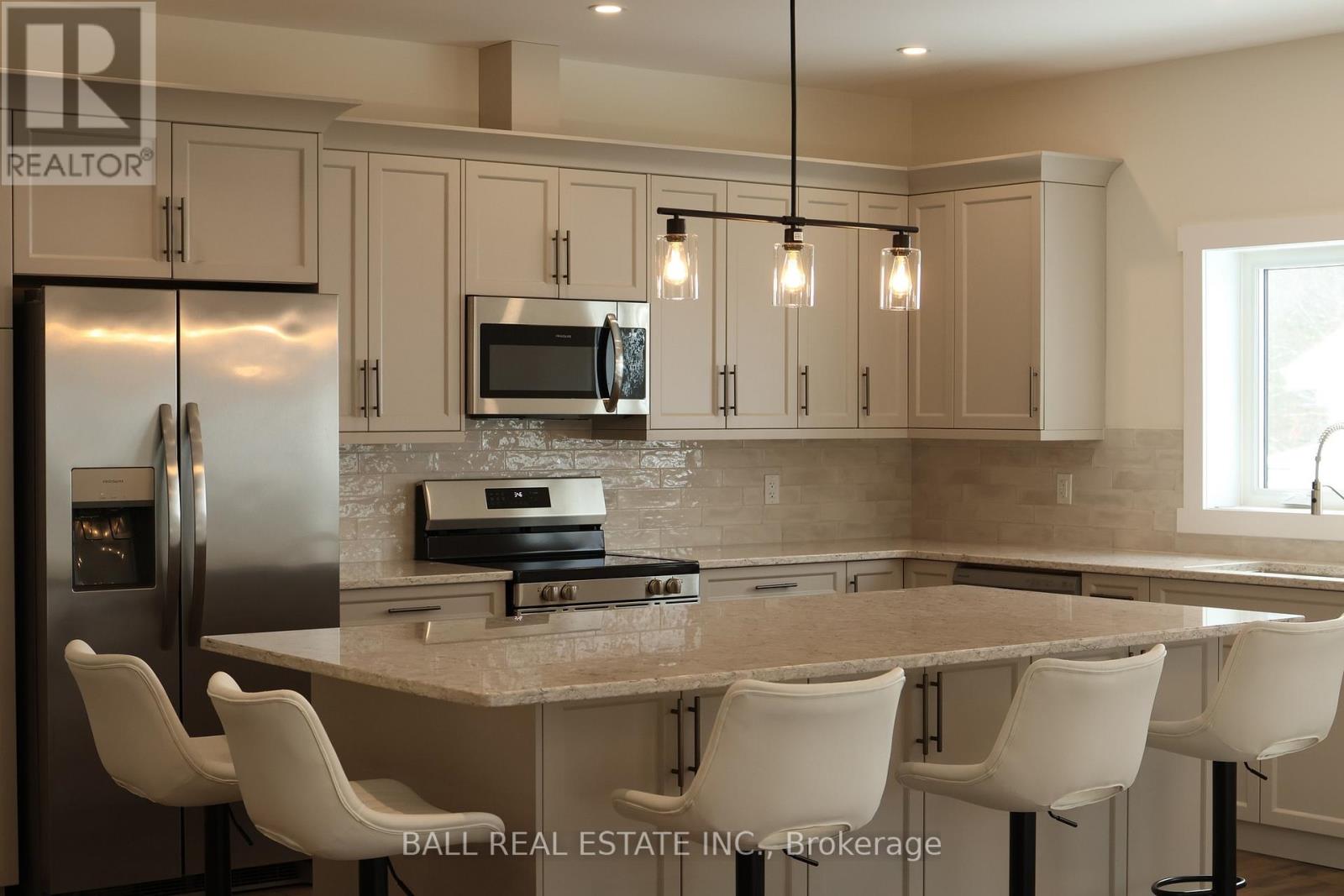 Check out this beauty! 9 Williams Drive in Bancroft - a beautifully crafted home built in 2024 with exceptional attention to detail including high ceilings, the perfect floor plan and high end fixtures. Nestled in a quiet subdivision on a peaceful cul-de-sac. The main floor welcomes you with a spacious foyer featuring double closets, providing ample storage right at the entrance. The heart of the home is the bright, open-concept living space with a walkout to the back deck - perfect for entertaining or relaxing. The custom kitchen is a standout, showcasing quartz countertops, stainless steel appliances, and a large island with additional seating. Convenient main floor laundry includes built-in cabinetry and a laundry sink. The primary bedroom is a true retreat, offering generous space and a luxurious four-piece ensuite complete with a soaker tub and a separate shower. A second bedroom and two piece bath completes the main level. Downstairs, the fully finished lower level features a massive rec room, two additional large bedrooms, a full four-piece bathroom with double vanity, utility area, and plenty of storage throughout! Heated with a propane furnace and equipped with central air, this home ensures year-round comfort. Attached garage, high-speed internet, full cell service, municipal garbage and recycling, and walking distance to all Bancroft amenities, this is a fantastic opportunity to enjoy modern living in a family-friendly neighborhood. (id:64974)