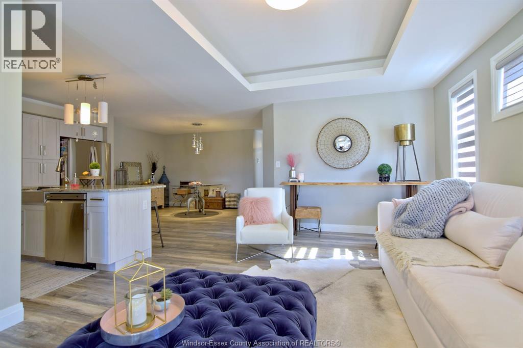 Beautiful, luxurious home for sale in the heart of Kingsville. This newer-built, bright, and spacious ranch features an open-concept layout with 2+2 bedrooms and 2 bathrooms, offering approximately 2,500 sq. ft. of living space. The property includes a gourmet kitchen with granite countertops and a large island, ceramic and hardwood floors, tray ceilings, a body-jet shower system in the bathrooms, and a stunning stone-clad fireplace. Architecturally designed with high-end finishes throughout. The home also offers a fully finished basement and is conveniently located close to all amenities. (id:64974)
