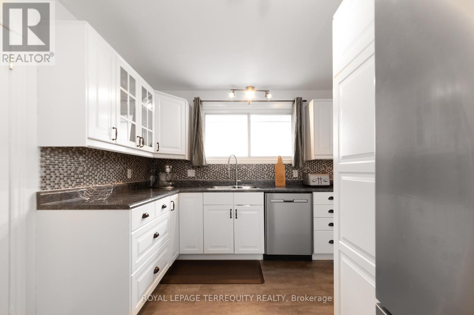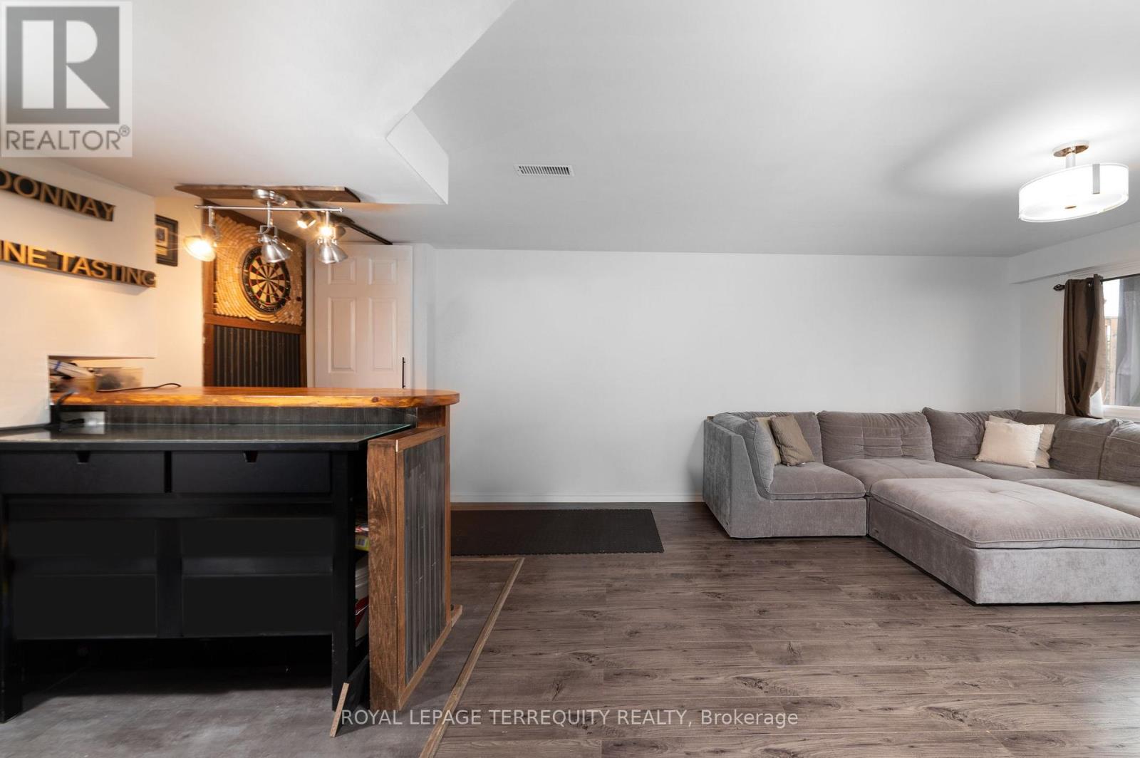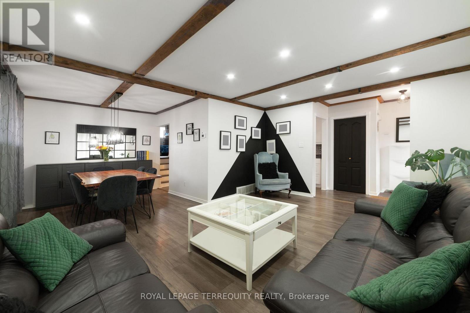 Discover this meticulously upgraded 3-level backsplit, with 3 spacious bedrooms & 2 stylish bathrooms, a true architectural gem nestled in the heart of Oshawa's sought-after Donevan community. From the moment you arrive, the stunning curb appeal captivates with beautiful landscaping, pot lights, a sleek stamped concrete walkway, and a modern front door featuring keyless entry. Relax on your premium composite front deck with elegant glass panels, perfect for morning coffee. Step inside to a sun-drenched main floor where soaring beamed ceilings add rustic character to the spacious living and dining area. The chef-inspired kitchen offers an abundance of cabinetry and stainless steel appliances. Modern pot lights with dimmers create the perfect ambiance throughout. The lower level is a showstopper, featuring floor-to-ceiling windows that flood the space with natural light. The walk-out leads to an entertainer's dream backyard! Dive into the sparkling pool (complete with a brand-new pump) or host unforgettable gatherings on the massive 3-tier deck. This outdoor oasis, framed by lush gardens, offers endless possibilities for summer lounging and al-fresco dining. This home is just waiting for you. Ideally located near top-tier schools, parks, and all major amenities with effortless highway access. Don't miss your opportunity, this gem won't last! (id:64974)