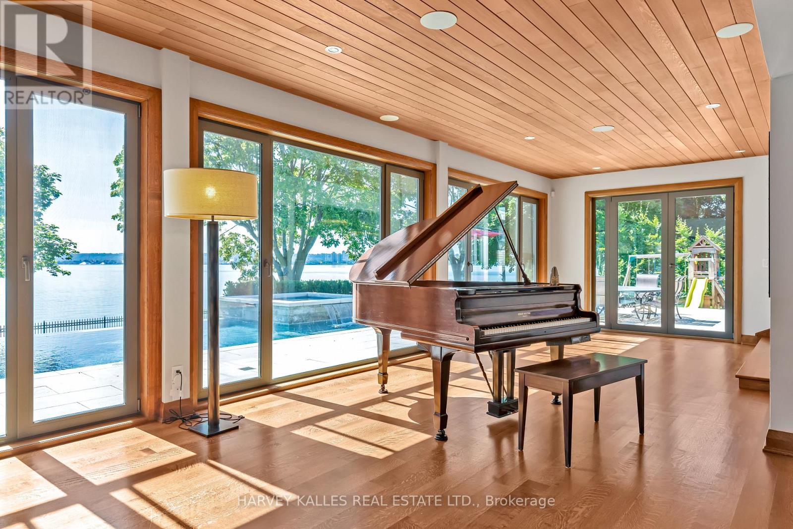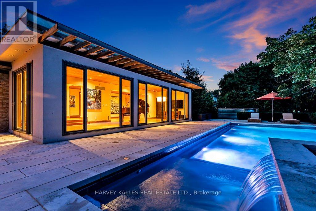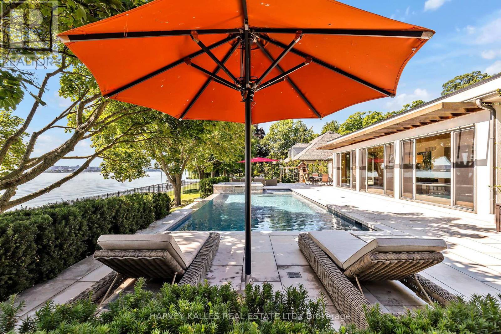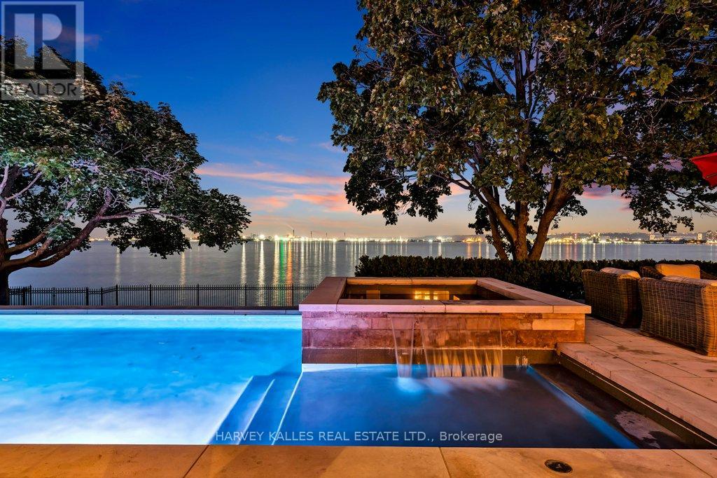 Exclusive ultra-private, this street is home to many of Canada's most prominent families. Located on the shores of Lake ON it has almost an acre, with Burlington and Oakville mins away. The multi-million reno on this bungalow has transformed it into open concept west coast modern aesthetic using natural materials of wood, marble, stone and granite. The architecture embraces the natural setting offering multiple glass walk-outs to the water and views from all the principal rooms. The hot tub, pool with infinity edge overlooking the Bay is irresistible! One a few properties that are allows for a dock. Imagine, after work, you pop into your boat or kayak for a quick work out before slipping into the hot tub. The Great Room has a book matched marble floor to ceiling marble fireplace that is calling for a roaring fire on a winters night. The Observatory Room is special place, whether it is evening drinks or morning cappuccino you will find yourself drawn to sit and watch the lake. **EXTRAS** Air exchanger, Alarm system. Separate heating controls, hot water tank & Irrigation system. (id:64974)