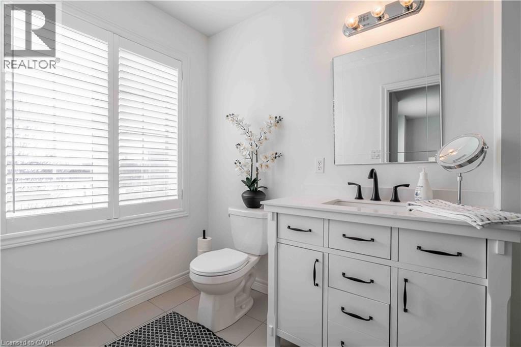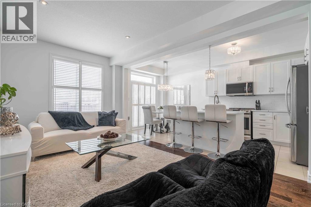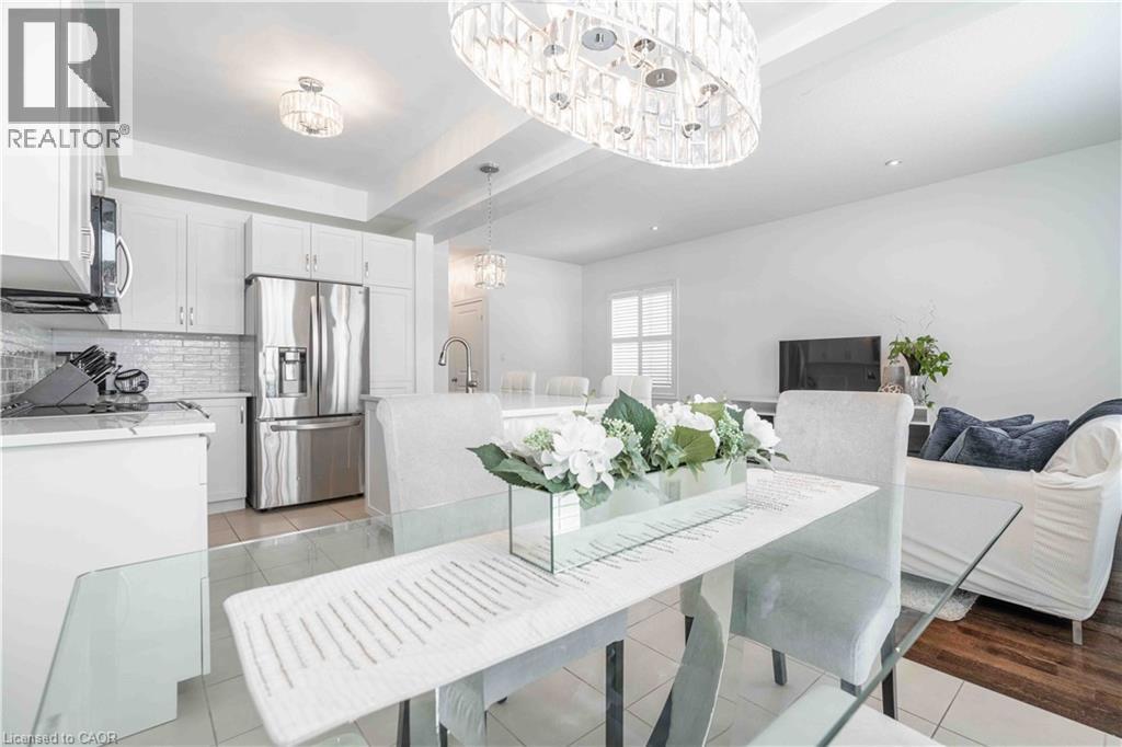 Welcome to this beautiful, clean, crisp two-storey end-unit freehold townhome, ideally located in the heart of sought-after Ancaster Meadowlands. Backing onto peaceful green space, this home offers added privacy and a rare side-back entrance-perfect for easy backyard access without passing through the house. Thoughtfully updated throughout, the home features brand-new California shutters on windows, open living space for perfect entertaining, oak staircase and a new washer and dryer purchased last year. The spacious primary bedroom is enhanced with custom California Closets, while both bathrooms boast newly installed cabinetry for a fresh, contemporary feel. The functional layout includes three well-sized bedrooms, two and a half baths, and an open loft area-ideal for a home office, reading nook, or additional living space. Enjoy the benefits of freehold ownership with a modest condo road fee, all within a family-friendly neighborhood close to parks, schools, and amenities. A rare end-unit backing onto green space—this one truly checks all the boxes. (id:64974)