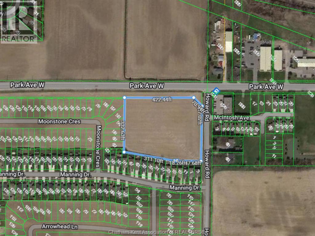 Rare offering of 4 acres of Commercially zoned vacant land. Excellent corner location on Park Ave W corridor, with future plans for widening to 4 lanes. Directly off of Bloomfield Rd, Chatham's West-end 401 interchange connection. Backing onto the largest and most recent new home development in the city with multiple other large developments underway in the immediate Southwest corner of town. Over 422 feet of frontage with a multitude of commercial uses possible. Multiple acre offerings are few and far between with many speculators tying up and hindering development. Act now and secure this prime location and be part of Chatham's aggressive growth strategy towards the 401 via the Bloomfield corridor. (id:64974)