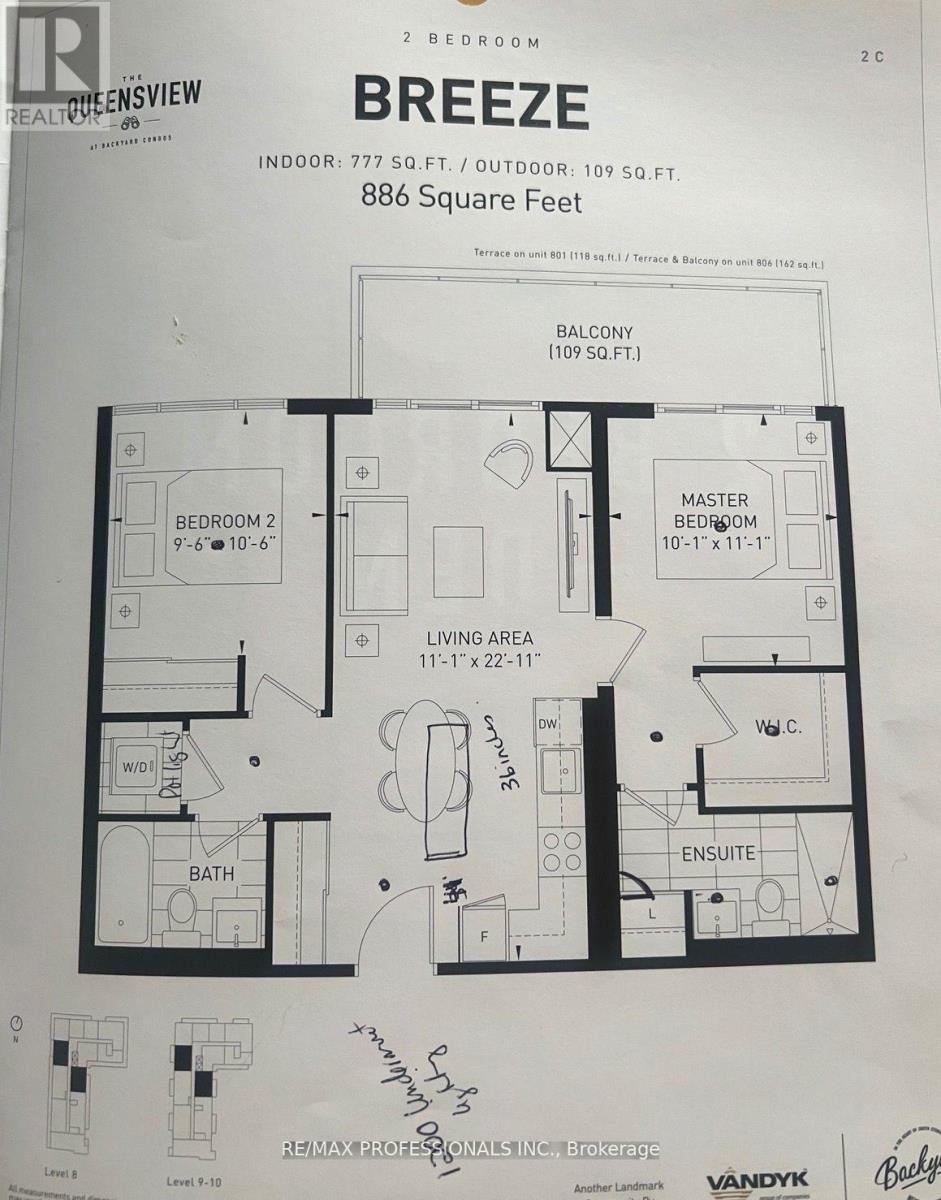 Great opportunity available for a sub-penthouse unit at the new Queensview at Backyard Condos! This 2 bed, 2 bath unit features a functional and ideal layout (see floorplan) with a ton of upgrades. Open concept living/dining with island, laminate throughout, and walk out to a large balcony with incredible views of city skyline and lake! The primary bedroom features a walk-in closet and 3-piece ensuite with large shower and with additional walk-out to the large balcony. The second bedroom (conveniently located on opposite side) is perfect for a child, roommate, home office or hosting. Parking and locker included. Building features Concierge, fitness centre, party room with outdoor lounge including bbq area, conference room, kid's room, pet spa, guest suite and more! Conveniently nestled along the Humber River walking and biking trails. Close to Lake, Transit right outside! Large park, quick access to QEW/Gardiner and convenient retail shops onsite including pharmacy, physiotherapy, F45 and more! (id:64974)