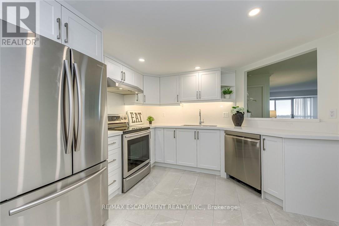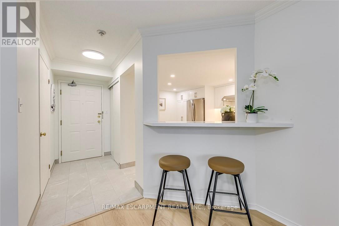 Welcome to one of Burlington's most sought-after condominium communities, offering exceptional comfort, security, and convenience in a prime location. This beautifully updated 2-bedroom, 2-bathroom suite offers 1222 sq. ft. of bright, open-concept living space featuring new flooring, fresh paint, crown moulding, and expansive windows that fill the home with natural light. The spacious living and dining areas lead to an enclosed balcony with sweeping east-facing views of Lake Ontario and the Burlington skyline, creating a wonderful extension of the living space. The home is currently being upgraded with a brand-new kitchen featuring quartz countertops, along with a new bathroom vanity with quartz counters and undermount sinks, adding modern style and value. The generous primary bedroom includes an oversized closet, a 4-piece ensuite bath, and access to a sunroom perfect for a reading nook or office. A second large bedroom, full bathroom, in-suite laundry, and two underground parking spaces provide comfort and practicality. Residents enjoy an impressive selection of amenities including an indoor pool, sauna, exercise room, library, media room, party room, games room, car wash bay, outdoor BBQ area, visitor parking, and beautifully maintained grounds. Condo fees cover building insurance, cable TV and high-speed internet, water, landscaping, snow removal, parking, and common area facilities. Ideally located just steps to Appleby GO Station, Fortinos, Longo's, major shopping plazas, restaurants, cafés, medical centres, Bateman Community Centre and Library, and the waterfront's scenic parks and trails, with quick access to the QEW, 403, and 407. Families will appreciate proximity to top-rated schools including Frontenac PS, Pineland (French Immersion), Nelson HS, Ascension CES, and Assumption CSS. A perfect opportunity for downsizers, firsttime buyers, or anyone seeking move-in-ready living in a quiet, well-managed community close to every convenience Burlington offers. (id:64974)