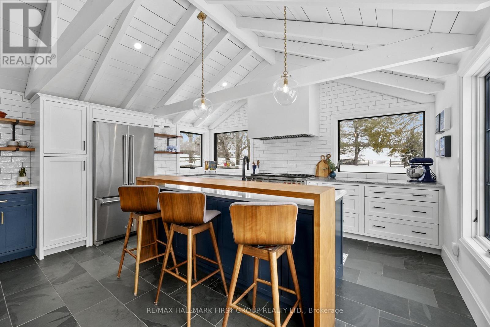 Set on 66.97 acres in the rolling hills of Northumberland County, this masterfully renovated circa-1866 century farmhouse offers a rare blend of historic character and modern luxury. A maple-lined driveway leads to complete privacy, surrounded by open farmland, mature trees, and exceptional landscaping - a lifestyle virtually impossible to replicate. The heart of the home is a stunning chef's kitchen featuring a professional-grade Wolf range, wood-burning fireplace, large island with breakfast bar, custom cabinetry, and soaring vaulted timber ceilings - a space designed for cooking, gathering, and living well. The elegant dining room, with its stone fireplace and dual chandeliers, is made for memorable entertaining. A gracious family room with decorative fireplace offers a warm, inviting retreat. Four well-appointed bedrooms and two exquisitely renovated bathrooms with custom cabinetry provide generous accommodation. Original pine floors, updated propane heating and cooling, generator-ready infrastructure, and modern water treatment reflect the care invested throughout. An inground saltwater pool with automatic cover anchors a beautifully appointed pool oasis, shaded by a commercial-grade shade sail and illuminated at night by in-ground lighting and overhead string lights - a stunning setting from morning to midnight. Separately, a beautifully landscaped courtyard off the kitchen offers an English garden, dry stone wall, fire pit with seating, and outdoor dining patio with propane BBQ connection - effortless indoor-outdoor living at its finest. Approximately 40 acres farmed under lease. A drive shed and a horse barn with water and electricity complete the property. Minutes to Cobourg, VIA Rail, Highway 401, and hospital services. A modernized century farmhouse where history, craftsmanship, and the art of living beautifully converge. (id:64974)