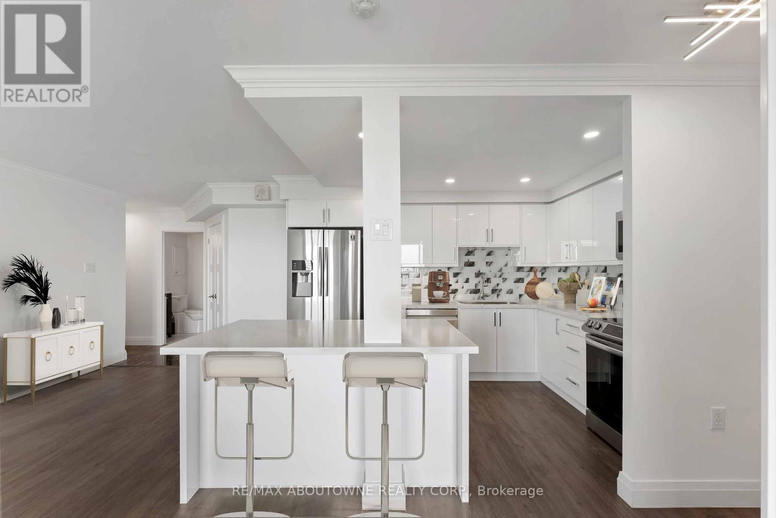 Walden Landing - Discover urban resort style luxury living in the heart of Clarkson Village! This spacious recently renovated sun-filled 2-bedroom, 2-bathroom condo with primary bedroom en suite, en suite laundry and 1,025 sq ft of living space offers unobstructed views of the Toronto skyline. The unit features a bright open-concept layout perfect for entertaining yet romantic cozy feeling for unwinding. As a resident you have access to building and Walden Club amenities: squash/tennis/pickleball courts, outdoor pool, fitness centre, billiard/club room, BBQ area. Storage locker, 2-underground parking spaces come with the unit. Convenient location walking distance to Clarkson GO station and array of boutique shops, cafes and restaurants in Clarkson Village. Pets permitted. All utilities, Internet and Walden Club membership included in condo fees. (id:64974)