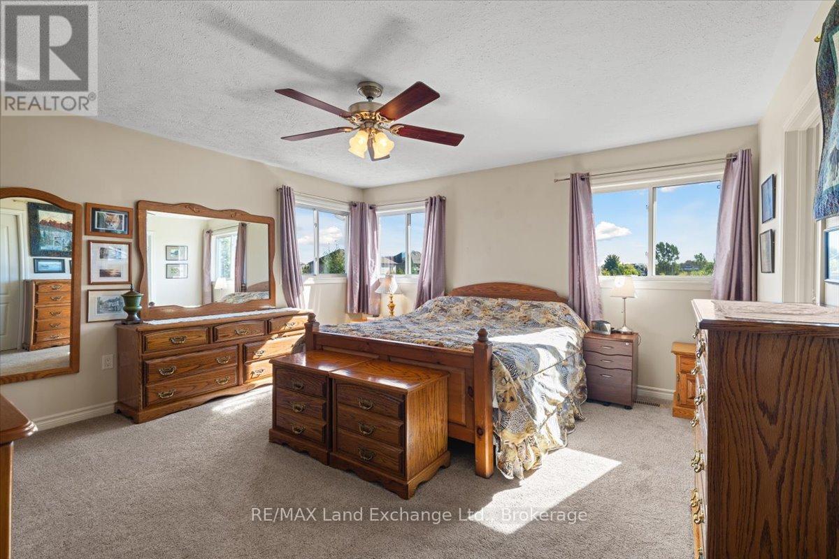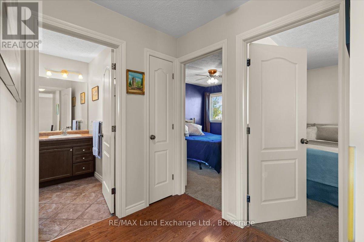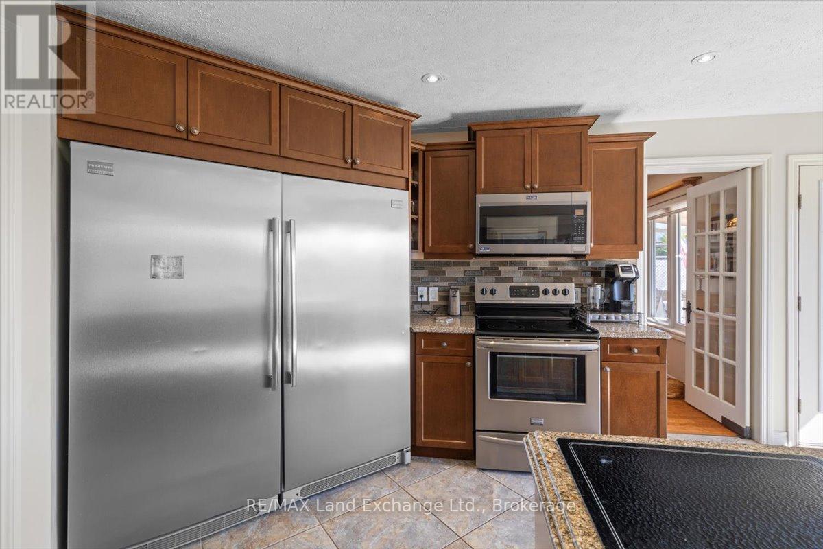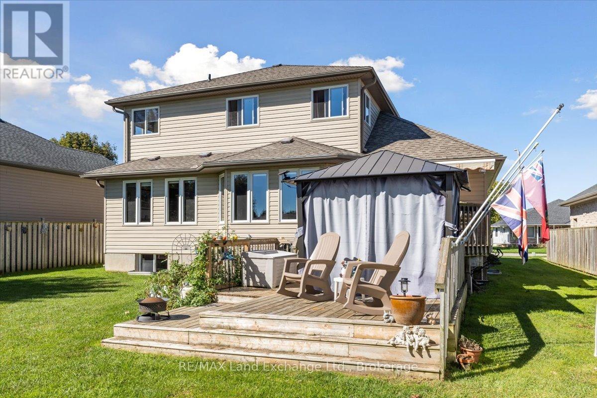 Welcome to this great 2-storey home in the heart of Port Elgin, tucked away on a mature lot just minutes from downtown, the beach, and top-rated schools. With over 2,100 sq.ft. of thoughtfully designed living space, this home perfectly balances comfort and style. The bright eat-in kitchen boasts quartz counters, a large island, and views of the private backyard. Upstairs, the spacious primary suite features a walk-in closet and a spa-like ensuite with a stand-up shower and separate soaking tub. Two additional bedrooms and a full bath complete the upper level. The main floor also offers a powder room, laundry, and a versatile den ideal for a home office. The fully finished lower level expands your living space with a large recreation room anchored by a cozy gas fireplace, two extra bedrooms, a full bath, and abundant storage options. Outside, unwind in your backyard oasis with tiered decking and a hot tub. An oversized double garage adds the finishing touch to this exceptional property. (id:64974)