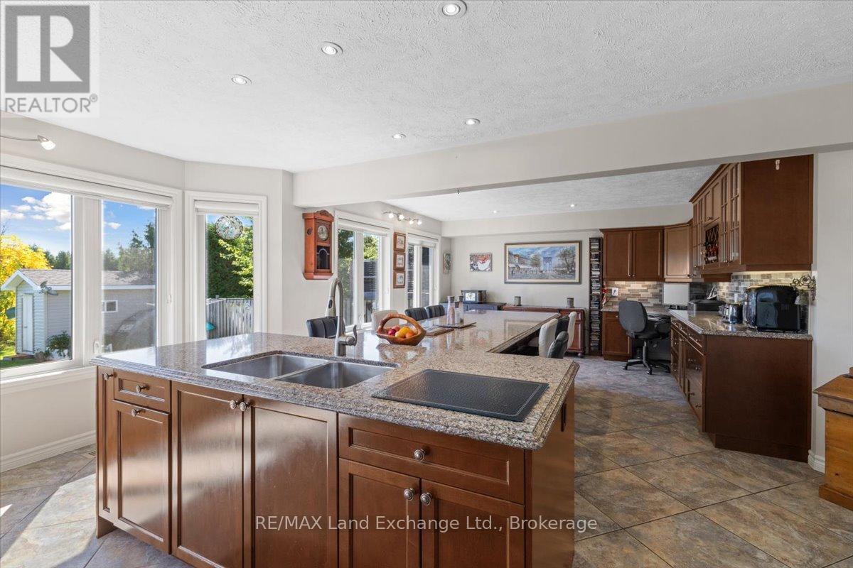 Welcome to a home that truly checks every box! Nestled on a mature lot in the heart of Port Elgin, just minutes from the beach, downtown shops, and Northport Elementary School, this two-storey home presents a standout opportunity for buyers looking to secure space, comfort, and location-all in one. Offering over 2,100 sq. ft. of well-designed living space that truly delivers on both function and lifestyle. The main floor is anchored by a bright, welcoming kitchen featuring quartz countertops, a generous island, and views of the private backyard-creating a natural gathering space for everyday living and entertaining alike. A dedicated den or home office, main floor laundry, and powder room add to the home's thoughtful layout. Upstairs, the primary suite is a true retreat, featuring a walk-in closet and a spa-inspired ensuite with a glass shower and a deep soaker tub-your own quiet place to unwind at the end of the day. Two additional bedrooms and a full bath offer plenty of room for family or guests. Downstairs, the fully finished lower level creates even more space to live and grow, with a large rec room centered around a cozy gas fireplace, two additional bedrooms, a full bathroom, and excellent storage-ideal for growing families, multi-generational living, or hosting with ease. Step outside and you'll find your own private backyard escape, complete with tiered decking and a hot tub-designed for summer evenings, quiet mornings, and everything in between. An oversized double car garage completes the package, offering both practicality and extra space for storage or hobbies.This is the kind of home that grows with you-warm, functional, and perfectly located to enjoy everything Port Elgin has to offer. (id:64974)