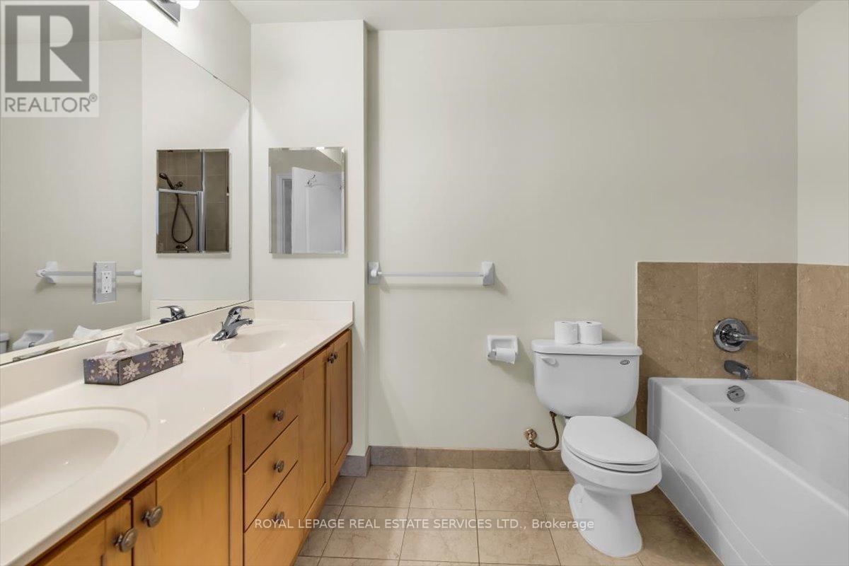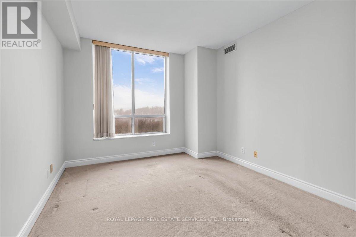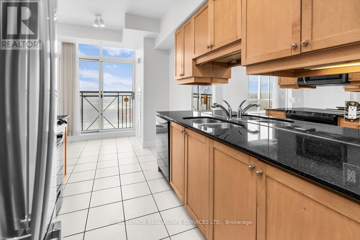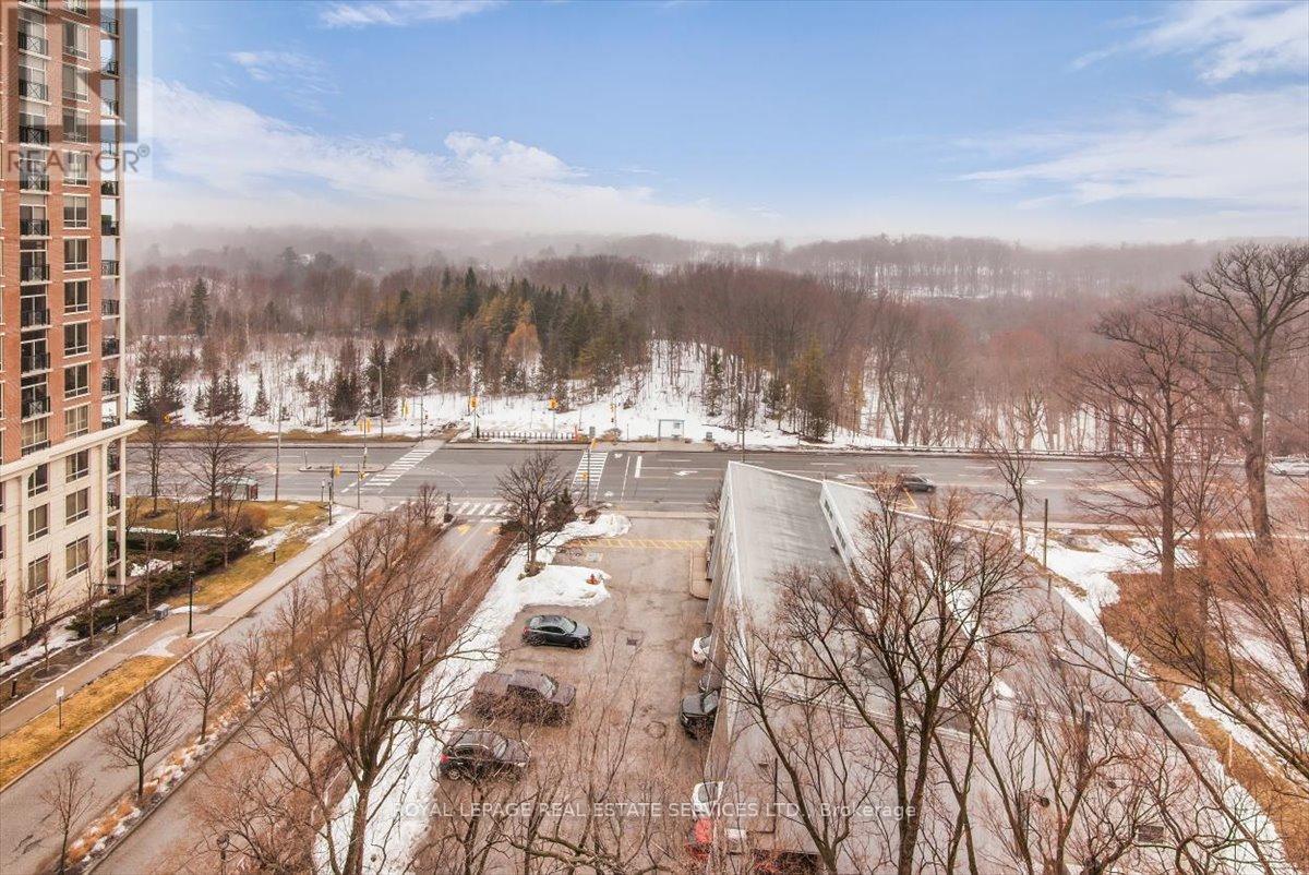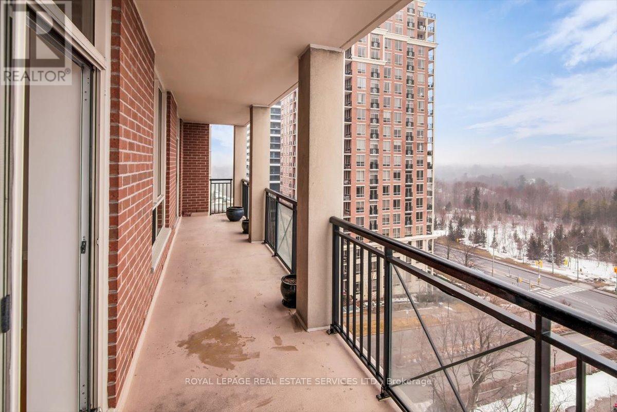 Welcome to Suite 906 at 1105 Leslie Street, a spacious and well-designed condominium offering approximately 1,350 square feet of comfortable living space in a peaceful North York setting. Ideally located near the Don Valley Parkway, this address provides quick access to downtown Toronto while being surrounded by green space, parks, and the scenic Don Valley trail system. Residents also enjoy convenient access to the Shops at Don Mills, grocery stores, cafés, and public transit. Inside, the suite offers a thoughtfully planned layout that balances generous living areas with comfortable private spaces. The expansive living and dining room is filled with natural light from large windows and provides walk-out access to an impressive 30-foot balcony, a wonderful extension of the living space and ideal for relaxing or entertaining while enjoying open treetop views. The kitchen is designed in a practical galley style with granite countertops, ample cabinetry, tile flooring, and full-size appliances, providing excellent storage and workspace. The adjacent dining area sits beside large windows and balcony access, creating a bright and inviting space for everyday meals. Two well-proportioned bedrooms provide comfortable retreats within the home. The primary bedroom offers generous proportions, broadloom flooring, a walk-in closet, and a spacious ensuite bathroom with double vanity and glass-enclosed shower. The second bedroom also includes broadloom and a large window bringing in natural light. A separate den enclosed with French doors and finished with laminate flooring provides excellent flexibility as a home office, study, or reading room. Additional conveniences include a second full bathroom with double vanity, in-suite laundry, and generous storage throughout. Residents enjoy a range of building amenities designed for both convenience and recreation, including concierge, gym, sauna, theater room, party & games room, hobby room and beautifully landscaped grounds. (id:64974)