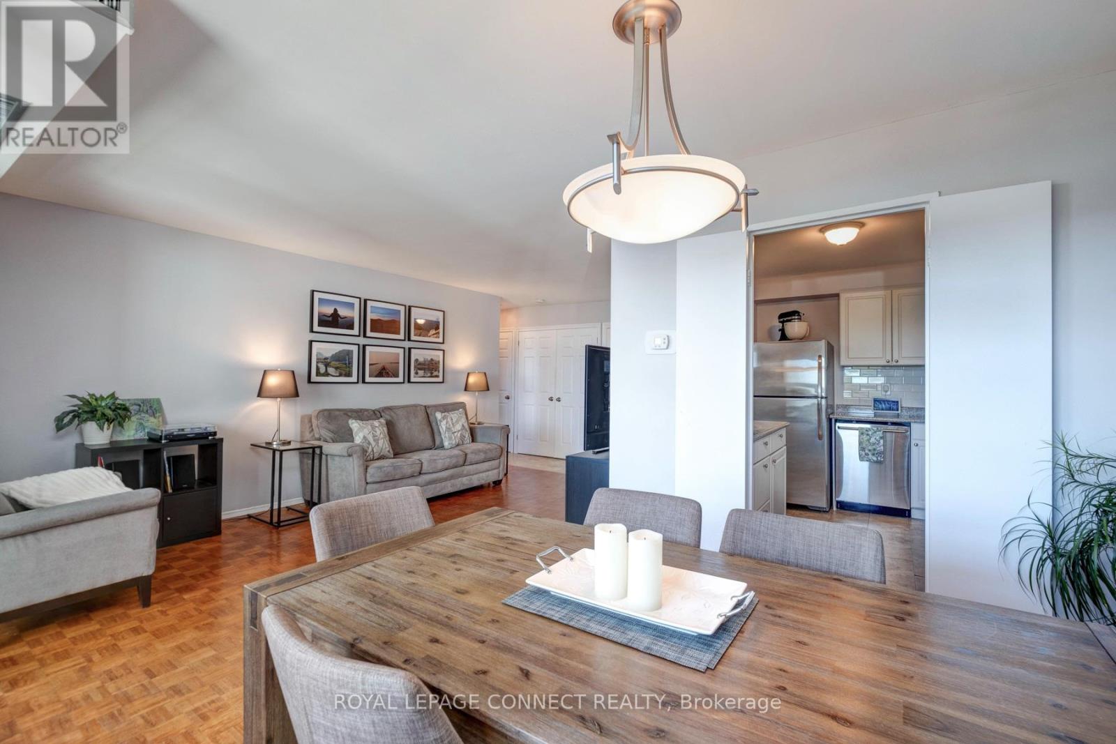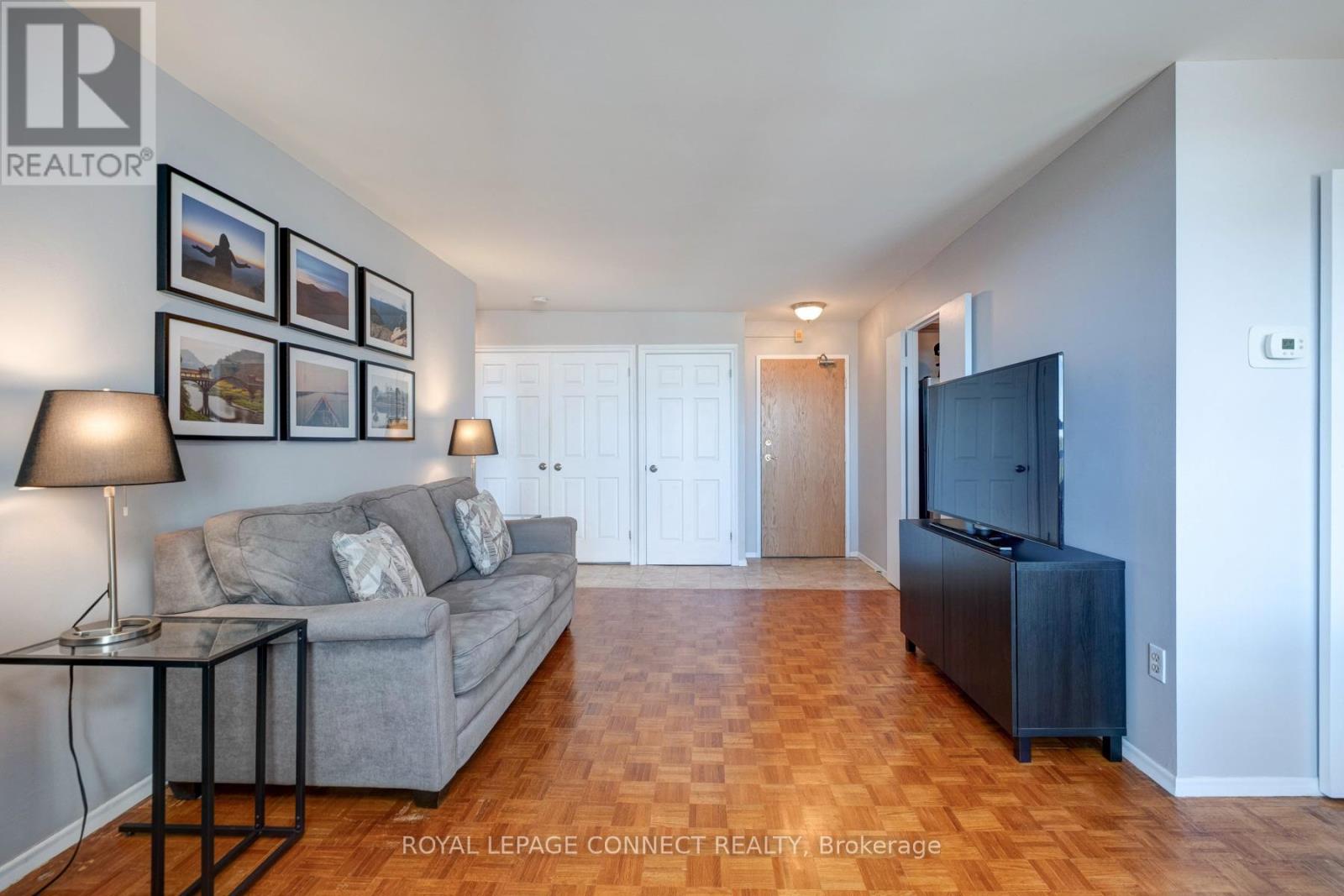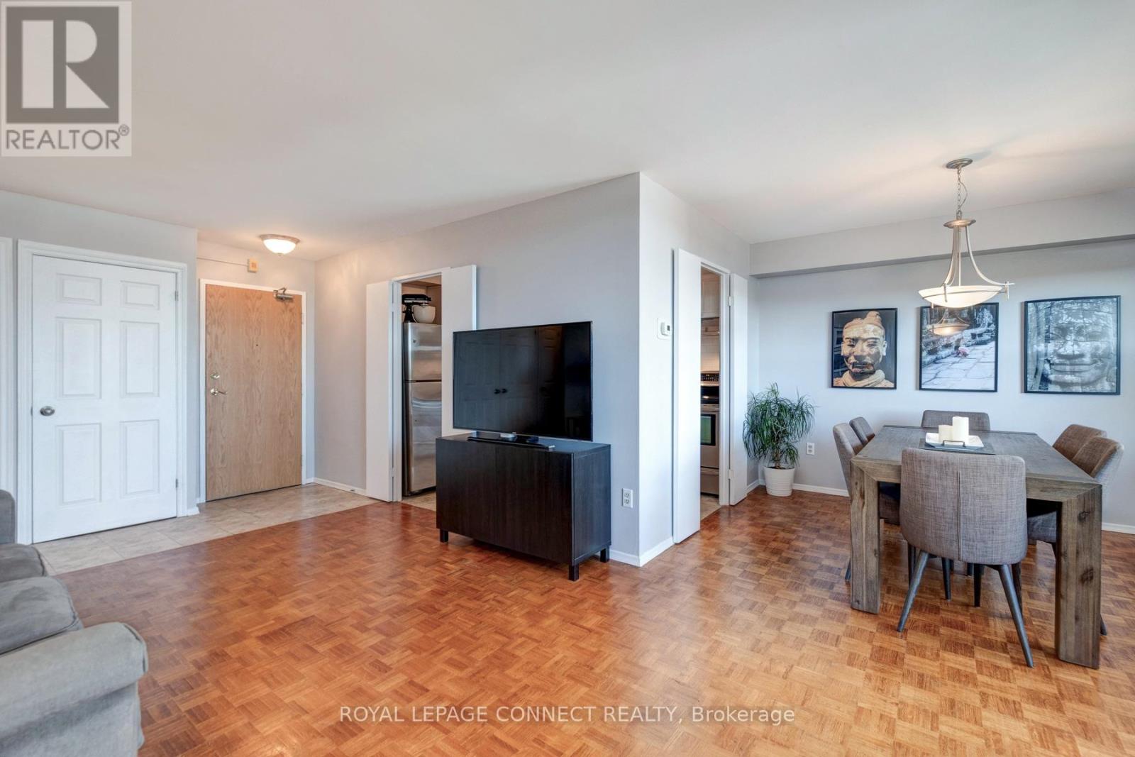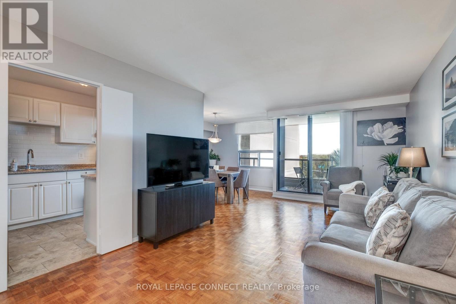 Welcome to Village Gardens, a well-maintained and sought-after condominium community in the heart of Ajax. This bright and spacious one-bedroom unit offers a functional open-concept layout designed for comfortable living. The combined living and dining area flows seamlessly to a large private balcony, perfect for enjoying your morning coffee or relaxing at the end of the day. Large windows fill the space with natural light, creating a warm and inviting atmosphere. The kitchen provides ample counter and cabinet space, ideal for everyday cooking and entertaining. The primary bedroom is generously sized and features a large closet for convenient storage. A well-appointed four-piece bathroom and fresh, neutral finishes throughout complete the homes welcoming interior. Residents of Village Gardens enjoy an impressive list of amenities, including an indoor pool, sauna, fitness centre, party room, games room, tennis and squash courts, and visitor parking. The building also offers a car wash bay, workshop, and beautifully landscaped grounds surrounded by mature trees and green space .Located just minutes from the 401, Ajax GO Station, shopping, restaurants, parks, and transit, this condo offers exceptional convenience in a peaceful setting. Perfect for first-time buyers, downsizers, or investors looking for a low-maintenance lifestyle in a desirable Ajax location. (id:64974)