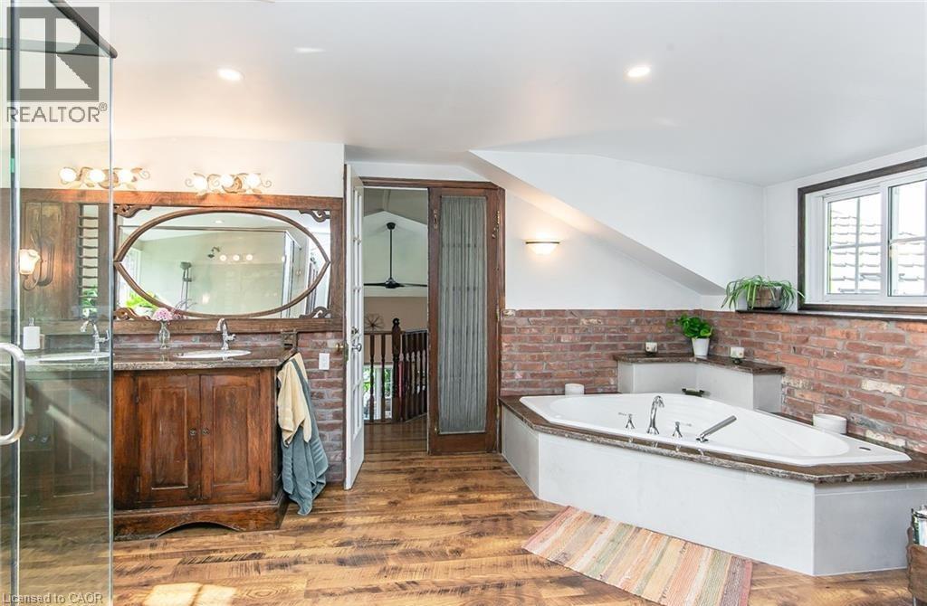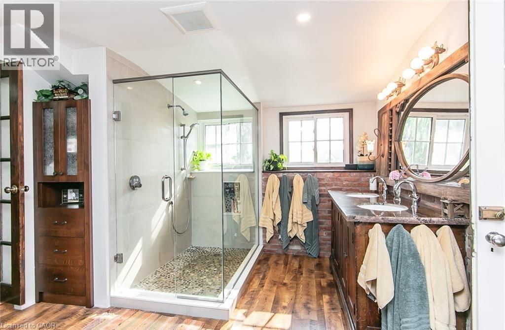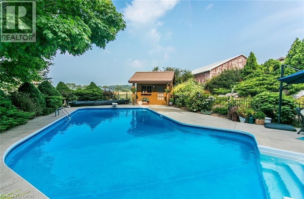 Welcome to your dream country retreat, tucked away on a peaceful rural road just outside Plattsville. This 1857 stone home has been renovated blending character with modern comfort, all nestled on a private, beautifully landscaped 1.6 acre lot that truly is a gardeners paradise. Stroll through the gardens, unwind by the firepit w/ family and friends. You'll find a charming shed, perfect for storing your riding mower, etc A sparkling 20x40 heated inground pool awaits you, tucked into its own secluded, fenced in area surrounded by mature trees and shrubs. There's even a dedicated vegetable garden for the green thumbs in the family. This exceptional home offers approximately 3700 sq.ft of living space, and a massive 4+car garage, featuring an E/V Charger, hot+cold running water, floor drains and portable heater. Two Breezeway entrances offer practical storage and convenience. Inside you will find formal Living/Dining rooms, perfect for family gatherings or quiet relaxation. The Gourmet Kitchen offers an abundance of cabinetry, granite countertops, a lg island with Breakfast bar and high end appliances, and a new SS range hood. There is a spacious laundry/mud room, complete w/storage. Off the Kitchen the outdoor Sunroom offers a perfect spot for movie nights, watching sports, etc. The bright Family room impresses with Cathedral ceilings, skylights, a cozy gas fireplace & a built-in wet bar. A loft area above adds even more versatile living space. Upstairs the Primary Bedroom is its own private retreat, featuring a large walk-in closet, luxurious 4pc ensuite with a walk-in shower, and cozy FP. 3 additional bdrs share a beautifully renovated 3pc bath. The partially finished WO Basement includes a wood FP & more storage. The Home is serviced by 2 wells offering an abundance of water, and a mix of Hot water gas heating, heat pump and ductless A/C Units, Hook up for Hydro Generator,Hy-Grade roof(2016)This is a must see Home. Just 30 mins to K-W. Book your private tour now. (id:64974)