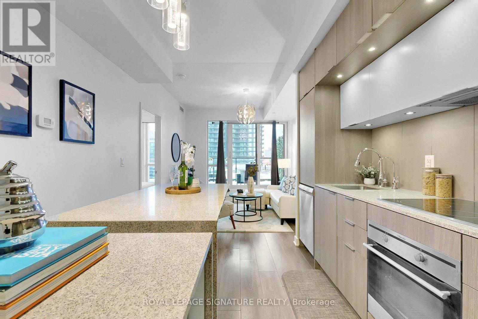 Don't miss the opportunity to own this sun-drenched, Southwest-facing two-bedroom, two-bathroom gem at the prestigious One Park Place. The standout feature is a spectacular spacious private terrace that nearly doubles your living space, offering an incredible unobstructed view of the lush green rooftop and city skyline-the ultimate setting for summer evenings and hosting dinner parties. This functional layout features a spacious primary ensuite, tall ceilings, and floor-to-ceiling windows that highlight the upscale finishes, including engineered flooring, quartz countertops, and stainless steel appliances. Residents enjoy world-class building amenities including a professional-grade gym, basketball court, two squash courts, screening room, party room, and an expansive common courtyard with BBQs. Perfectly situated steps from transit, highways, the waterfront, and the best dining and nightlife Toronto has to offer, this unit comes complete with one parking space and one storage locker. Just move in and enjoy! (id:64974)