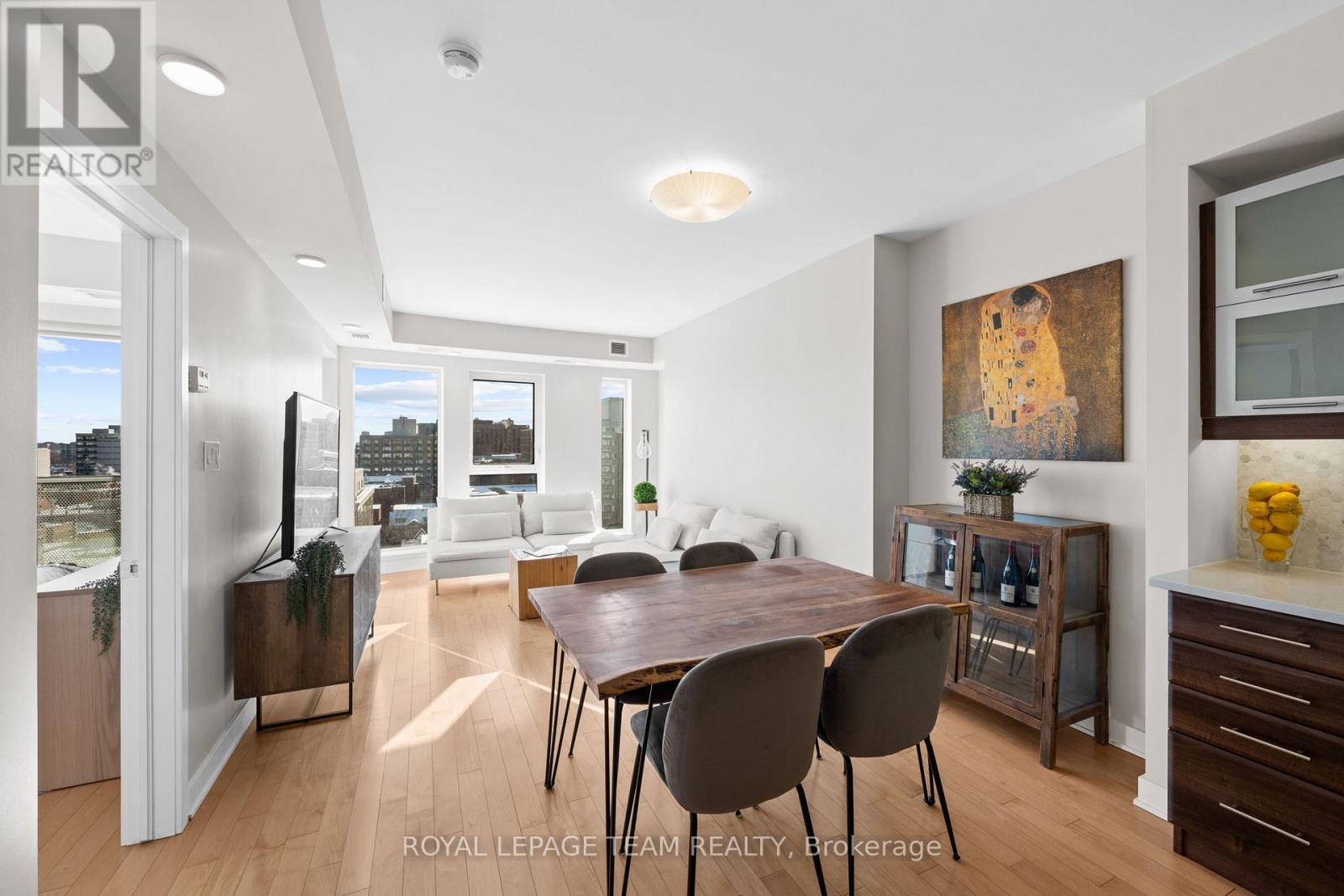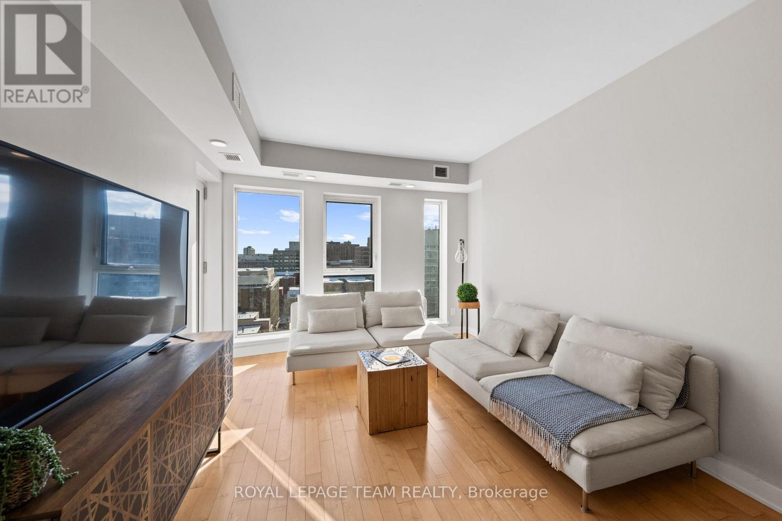 Bright, spacious and ideally located in Tribeca East, this 9th floor corner suite offers unencumbered southeast facing city views that flood the space with natural light through floor to ceiling windows. Offering approximately 955 square feet, this well maintained 2 bedroom 2 bathroom condo features an open concept layout with a bright and airy living space, a balcony, in unit laundry and excellent layout with separation between the bedrooms. The kitchen is finished with stainless steel appliances, granite countertops and a stylish backsplash....it flows seamlessly into the living and dining areas, making it ideal for everyday living and entertaining. The unit is in very good condition and includes two storage lockers, a rare and valuable bonus for downtown living. Located directly above Farm Boy and steps to the shops, restaurants, cafés and nightlife along Elgin Street, this location is ideal for anyone working on Parliament Hill or downtown, as well as young urbanites or seniors who enjoy being at the centre of the action. Tribeca East offers excellent amenities including concierge service, fitness centre, indoor pool, party room, rooftop terrace and guest suites. Available immediately with a parking space conveniently rented at $120 per month. Ask for floor plans. (id:64974)