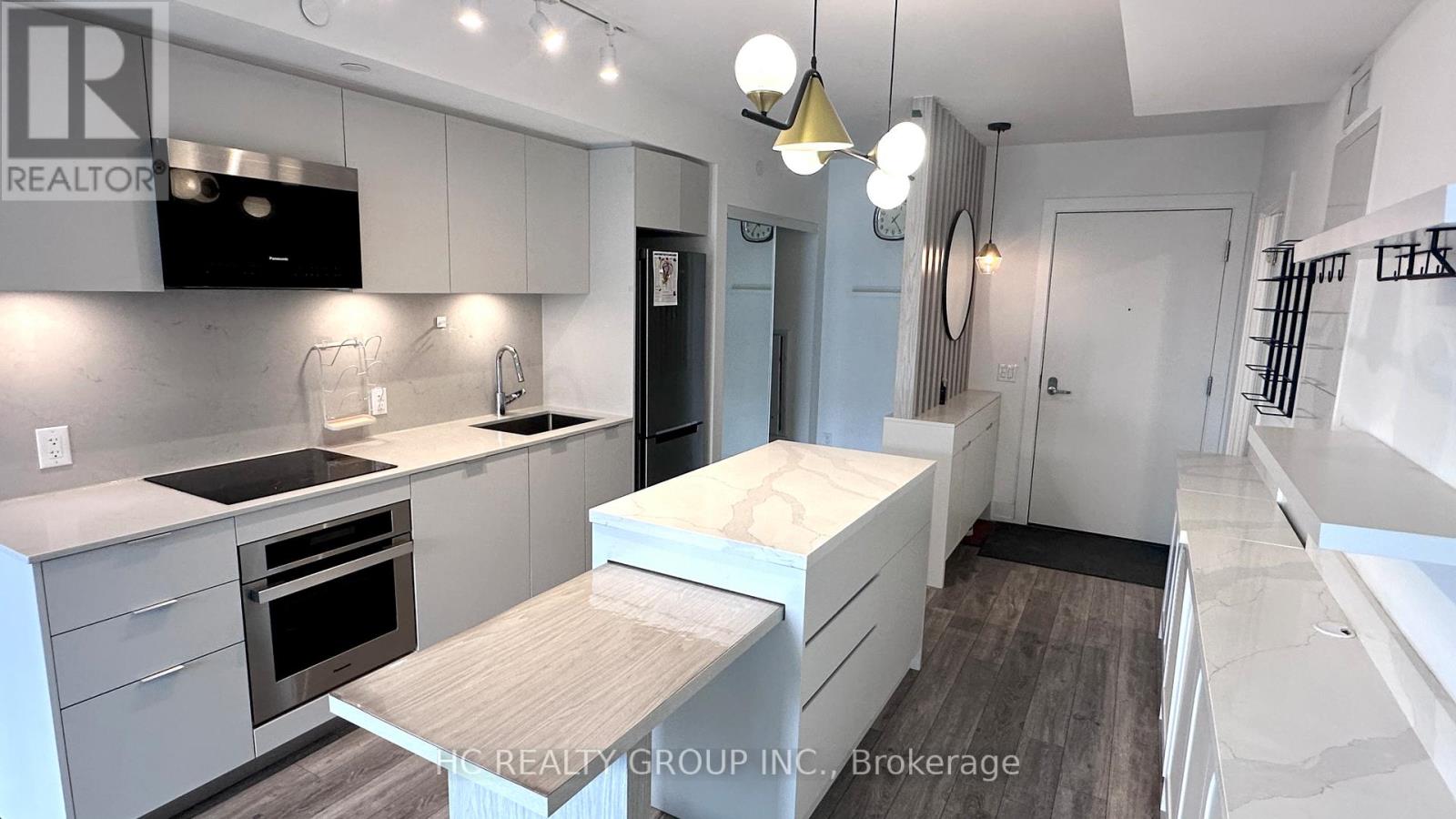 Designer-Upgraded 2-Bedroom Condo With Sunny South Exposure!Bright and beautifully designed 2-bedroom, 2-bathroom condo offering 814 sq ft of stylish and functional living space. Enjoy abundant natural sunlight through the desirable south exposure and relax on the large private balcony.Thoughtfully designed with a split-bedroom layout for enhanced privacy, this unit is perfect for comfortable everyday living or entertaining. Professionally customized by a designer, the unit features a smart divider creating a dedicated workstation, along with additional wall cabinetry for enhanced storage and organization.The condo comes fully furnished, making it truly move-in ready-simply bring your suitcase and start enjoying the space. One Parking and One Locker included. (id:64974)