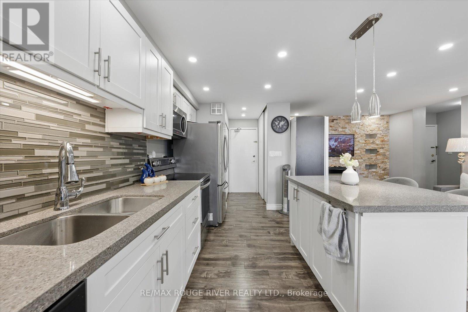Welcome to Unit 907 at 90 Ling Road - A Beautifully Updated Home in a Prime West Hill Location! This bright and spacious (1250 sq ft) suite features a thoughtfully designed open-concept layout perfect for modern living and entertaining. The upgraded kitchen showcases modern finishes, ample cabinetry, and a centre island ideal for casual dining and hosting guests. Both kitchen and bathrooms have been tastefully renovated, offering stylish upgrades and move-in ready convenience. Unwind on the south-east facing balcony, where beautiful summer views come alive as the surrounding trees bloom, creating a peaceful, green outlook.The unit also features in-suite laundry and includes one owned parking space for added convenience.Residents of this well-maintained building enjoy an impressive selection of amenities, including an outdoor pool, gym, sauna, party/meeting room, tennis courts, visitor parking, and beautifully maintained common areas, providing comfort and lifestyle all in one place.Ideally located at Morningside Avenue and Lawrence Avenue East, this condo offers exceptional convenience with shopping, grocery stores, parks, schools, TTC transit, and quick access to Highway 401 all nearby. Just minutes to the waterfront trails, University of Toronto Scarborough campus, and everyday essentials - everything you need is within easy reach.A fantastic opportunity for first-time buyers, downsizers, or investors looking for space, upgrades, and a highly convenient location. (id:64974)