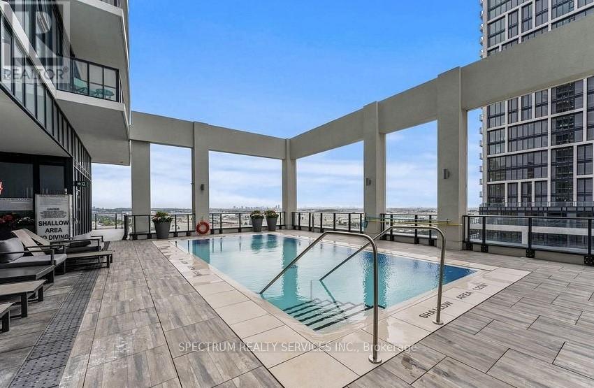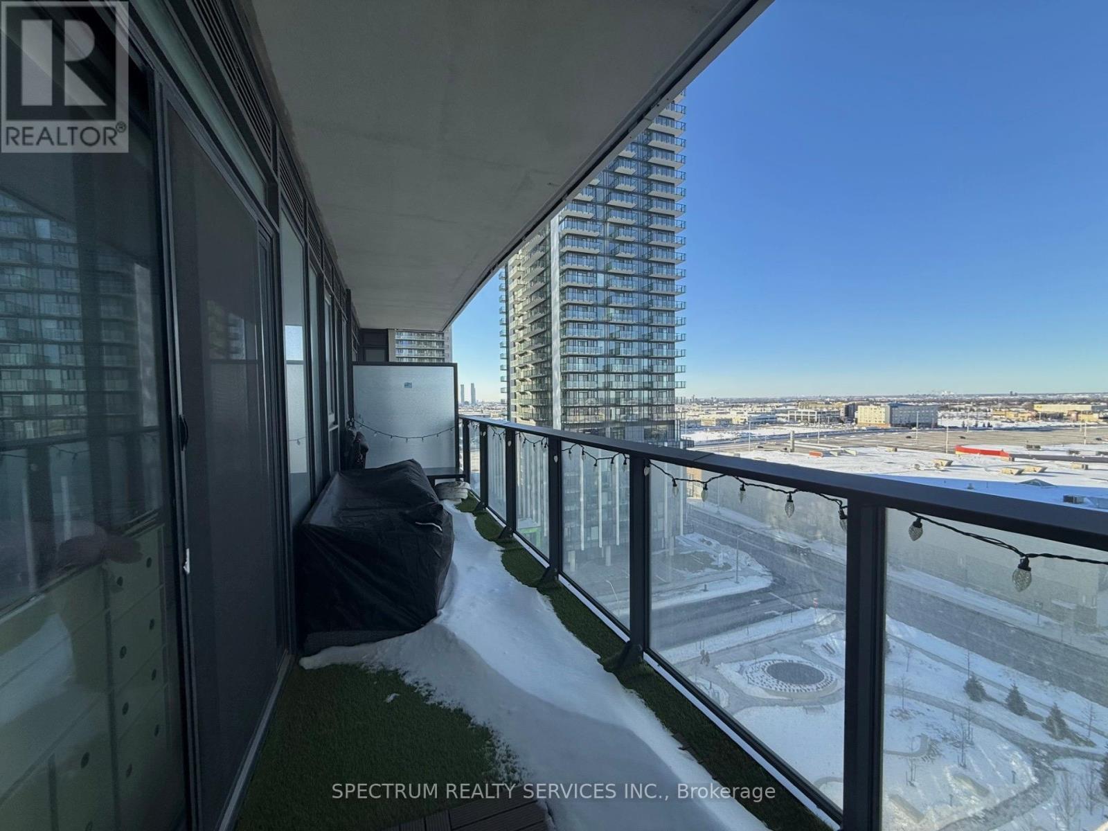 This beautifully upgraded one bedroom plus den, two bathroom unit offers a spacious open concept layout and exceptional functionality. The suite features upgraded kitchen cabinetry with modern hardware, sleek countertops throughout, laminate flooring, updated bathroom floor tiles, and custom roller blinds. The versatile den includes a custom built-in closet, making it ideal for a nursery, home office, or guest space. With desirable southwest facing views, enjoy outdoor living on the large 115 sq. ft. balcony, perfect for relaxing or entertaining. The suite includes two parking spaces for added convenience. Ideally located within steps to Vaughan Mills, top restaurants, Cortellucci Hospital, and easy access to major highways. Amenities include a gym, yoga room, outdoor pool, theatre room, bocce court, rooftop party rooms, outdoor BBQs, 24/7 concierge and so much more. This condo combines comfort, style, and unbeatable accessibility. (id:64974)