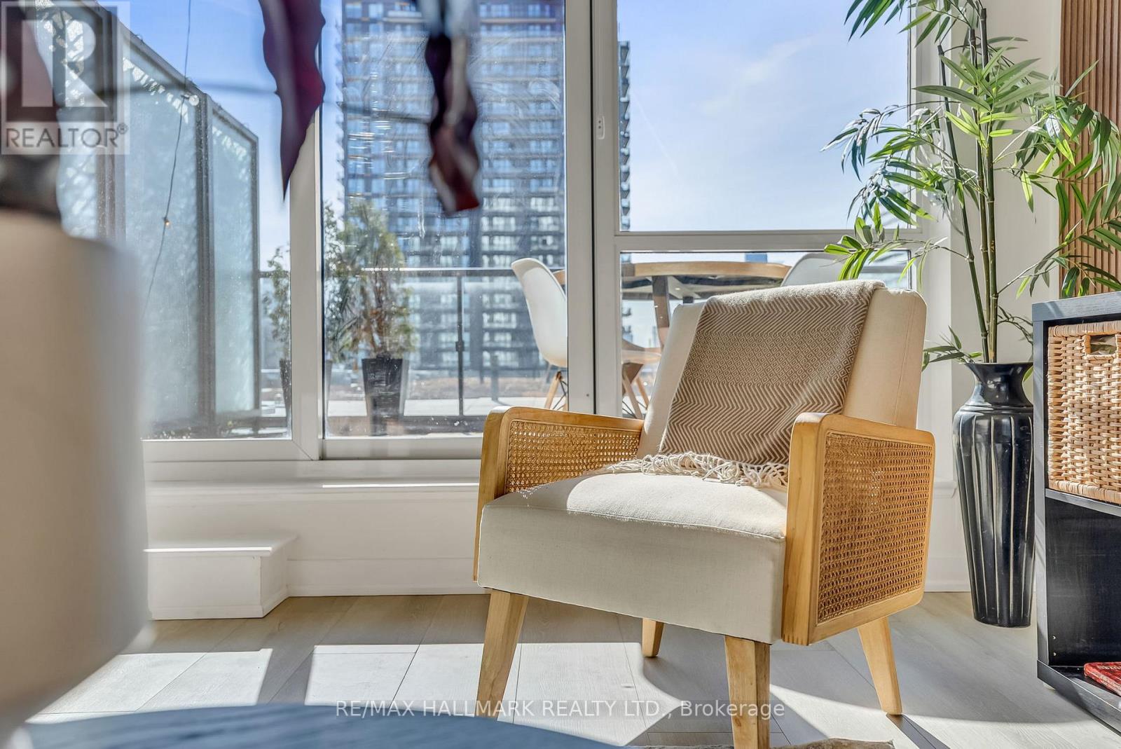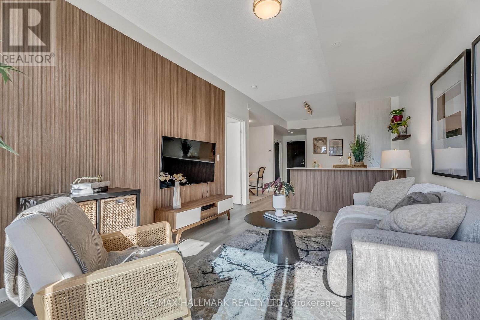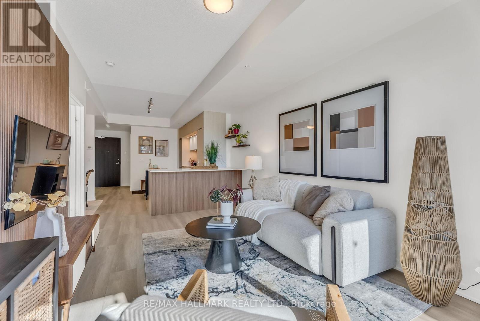 Welcome to this stunning 1+Den residence at Daniels' One Park Place, where sophisticated design meets exceptional urban living. This beautifully presented west-facing suite offers an expansive and airy layout with approximately 695 sq ft of interior space, complemented by an impressive 233 sq ft private balcony-perfect for entertaining or unwinding while taking in breathtaking sunset views. Recently enhanced with new flooring installed in 2025, this elegant home showcases a seamless open-concept design. The modern kitchen is both stylish and functional, featuring stainless steel appliances, a sleek breakfast bar, and effortless flow into the spacious living and dining areas-ideal for hosting or everyday comfort. The generous den provides outstanding versatility, easily serving as a refined home office or guest retreat. Impeccably presented and truly move-in ready, this suite offers a refined lifestyle in one of the city's most dynamic communities. Residents enjoy access to premium amenities including 24-hour concierge, a state-of-the-art fitness centre, basketball court, and more. Parking and locker included. A rare opportunity to own a beautifully upgraded, turnkey residence in a sought-after building-perfect for discerning professionals, first-time buyers, or savvy investors seeking style, comfort, and convenience. (id:64974)