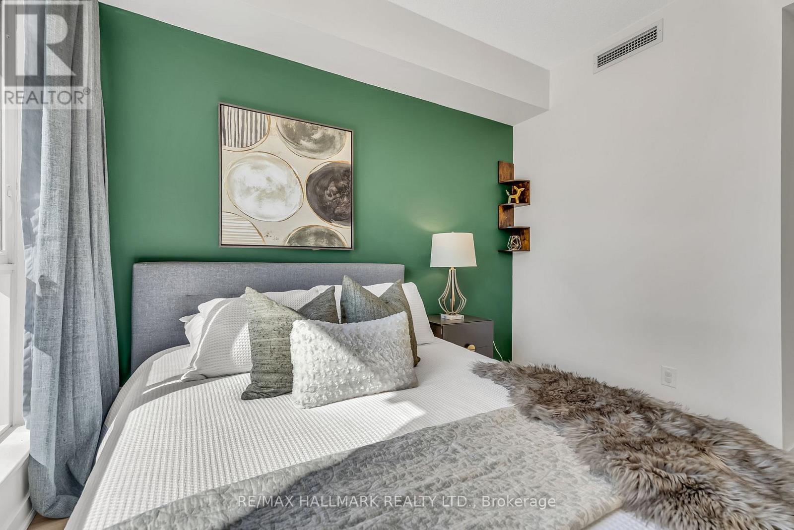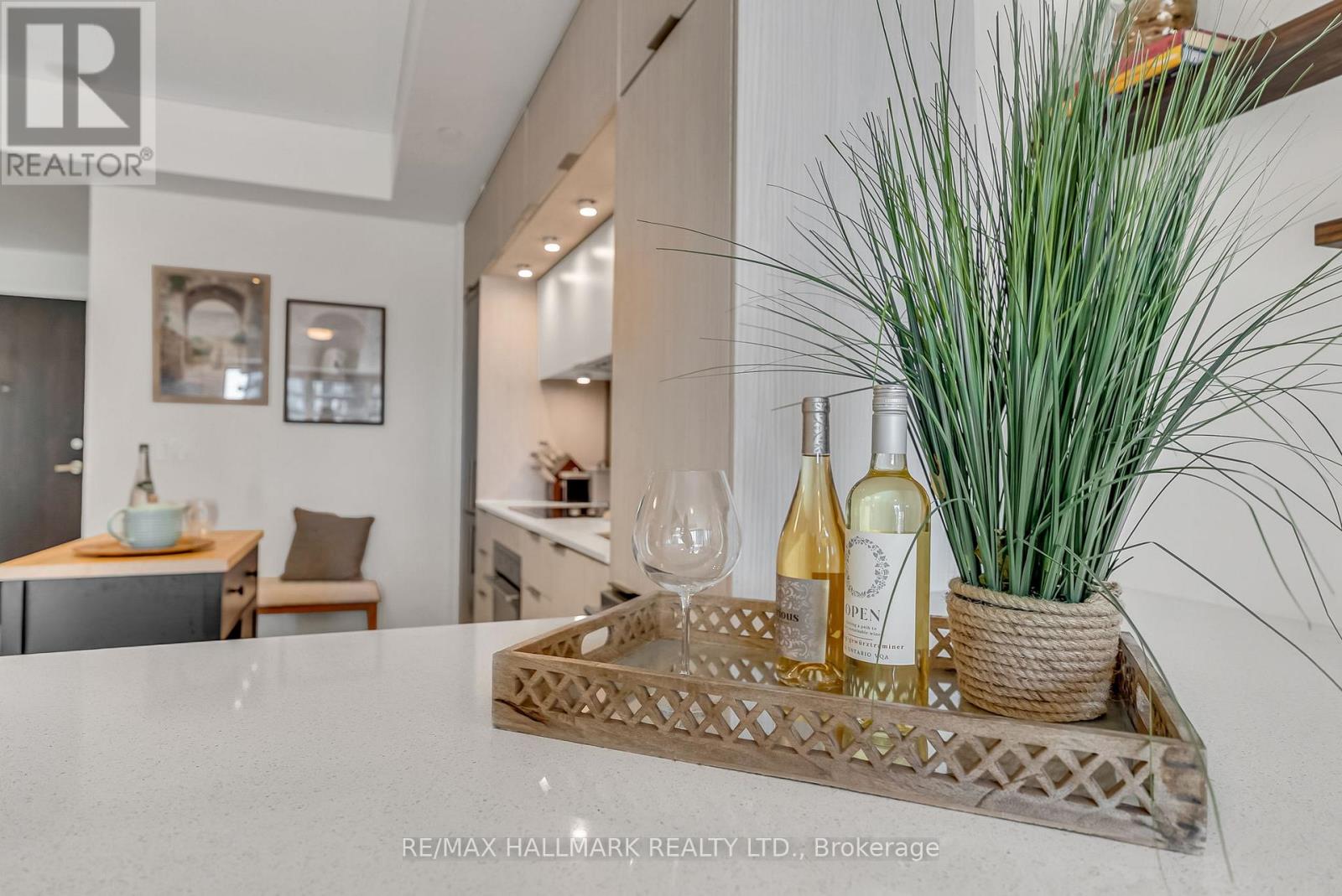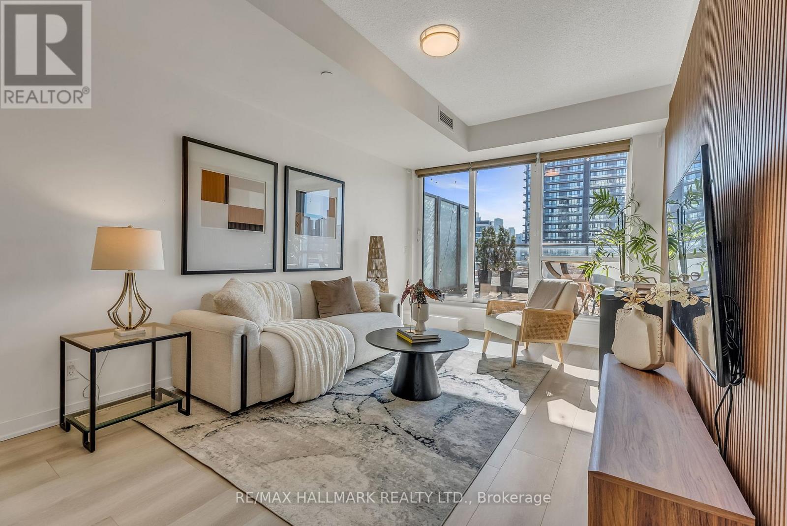 Welcome to this stunning 1+Den residence at Daniels' One Park Place, where sophisticated design meets exceptional urban living. This beautifully presented west-facing suite offers an expansive and airy layout with approximately 695 sq ft of interior space, complemented by an impressive 233 sq ft private balcony-perfect for entertaining or unwinding while taking in breathtaking sunset views. Recently enhanced with new flooring installed in 2025, this elegant home showcases a seamless open-concept design. The modern kitchen is both stylish and functional, featuring stainless steel appliances, a sleek breakfast bar, and effortless flow into the spacious living and dining areas-ideal for hosting or everyday comfort. The generous den provides outstanding versatility, easily serving as a refined home office or guest retreat. Impeccably presented and truly move-in ready, this suite offers a refined lifestyle in one of the city's most dynamic communities. Residents enjoy access to premium amenities including 24-hour concierge, a state-of-the-art fitness centre, basketball court, and more. Parking and locker included. A rare opportunity to own a beautifully upgraded, turnkey residence in a sought-after building-perfect for discerning professionals, first-time buyers, or savvy investors seeking style, comfort, and convenience. (id:64974)