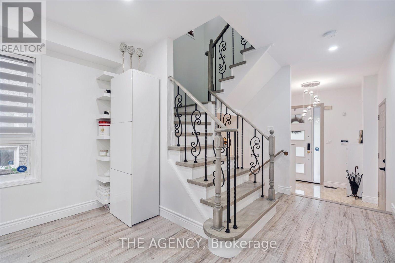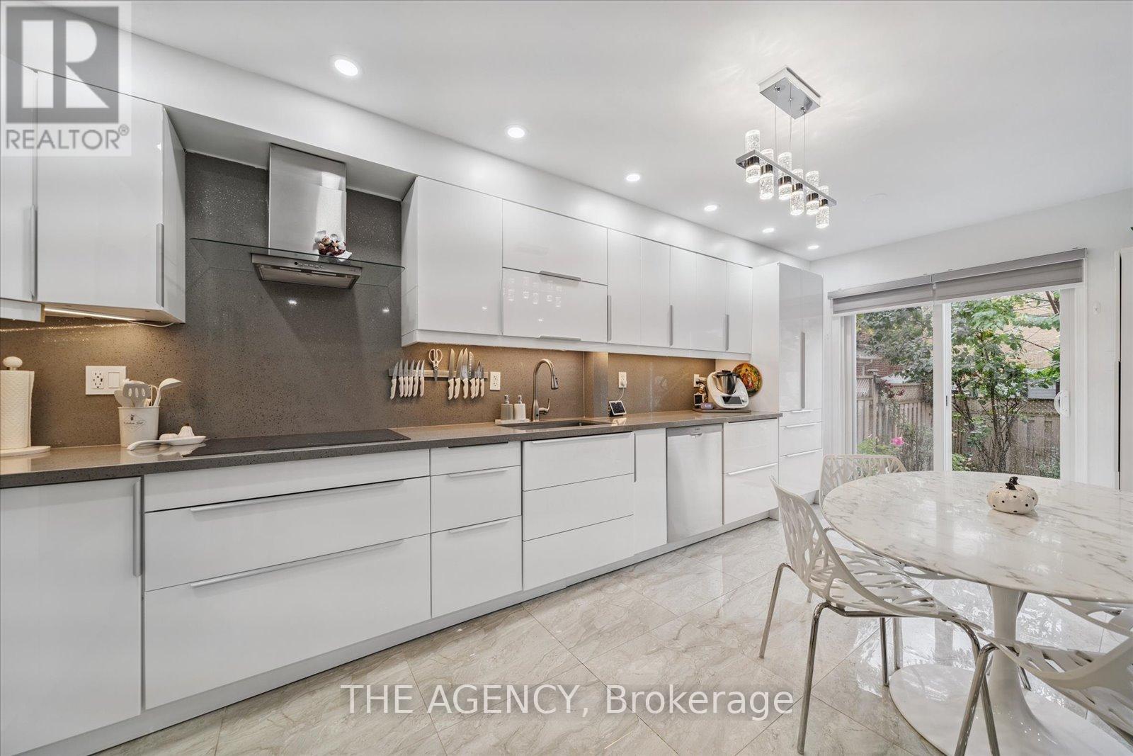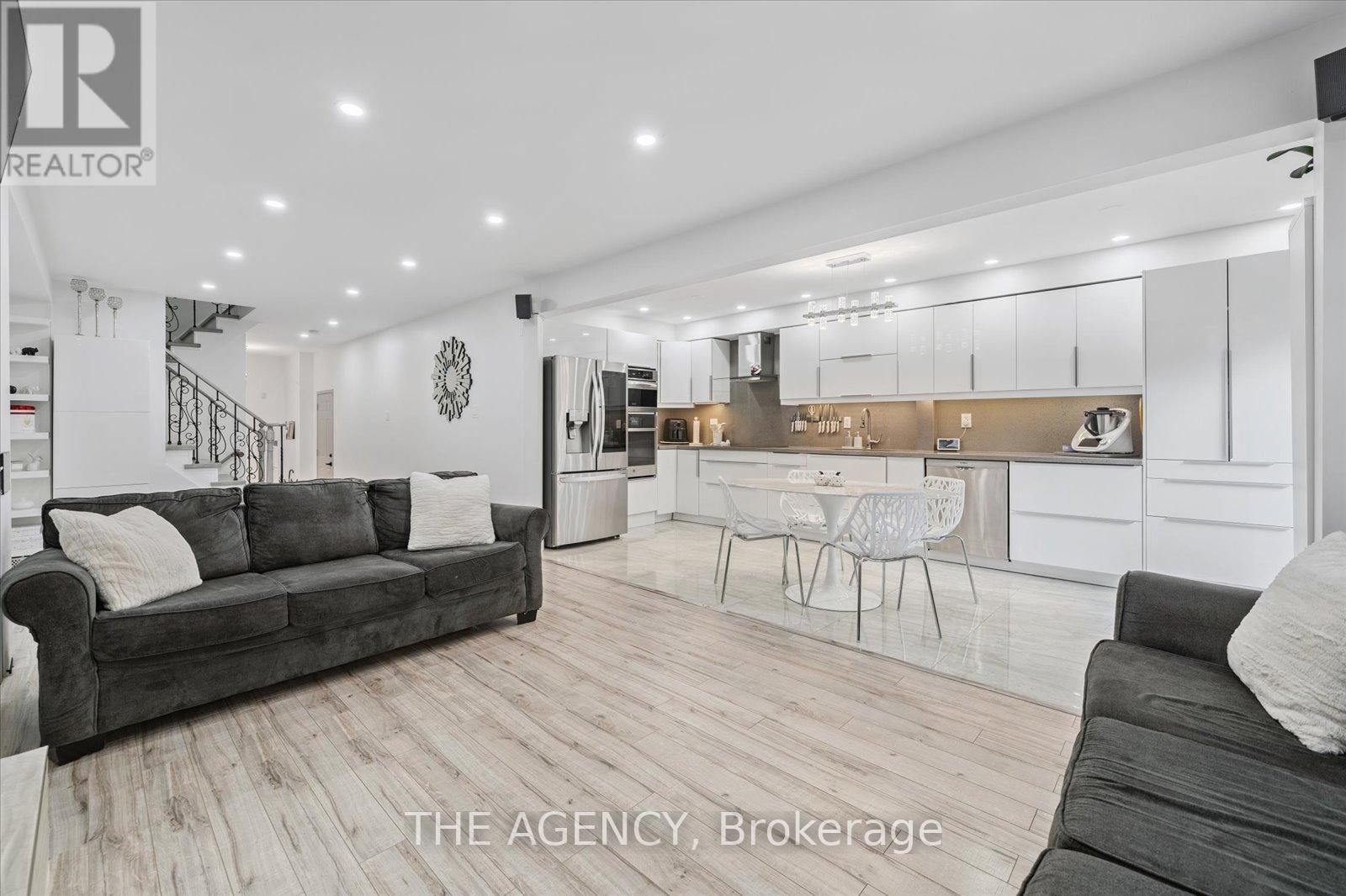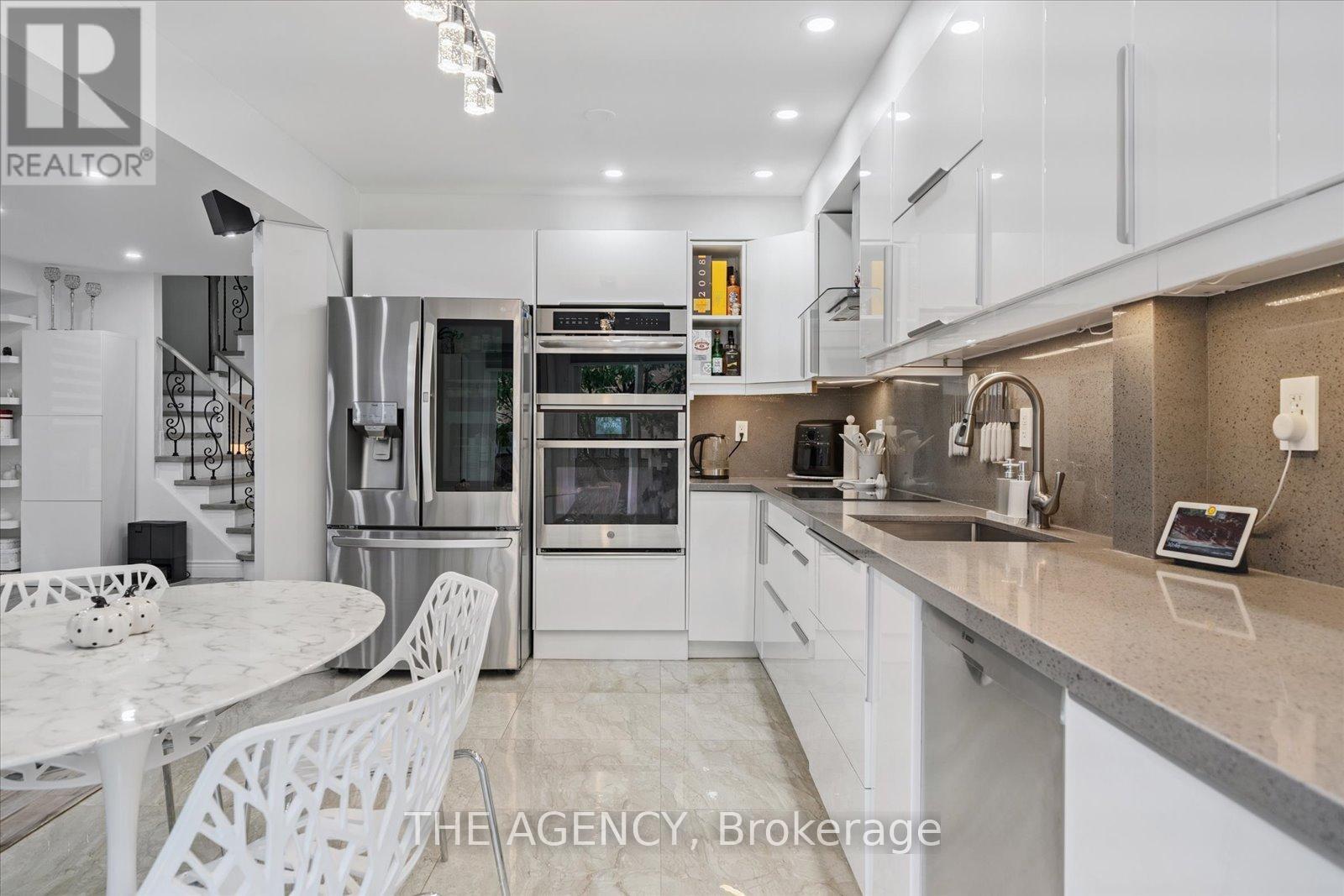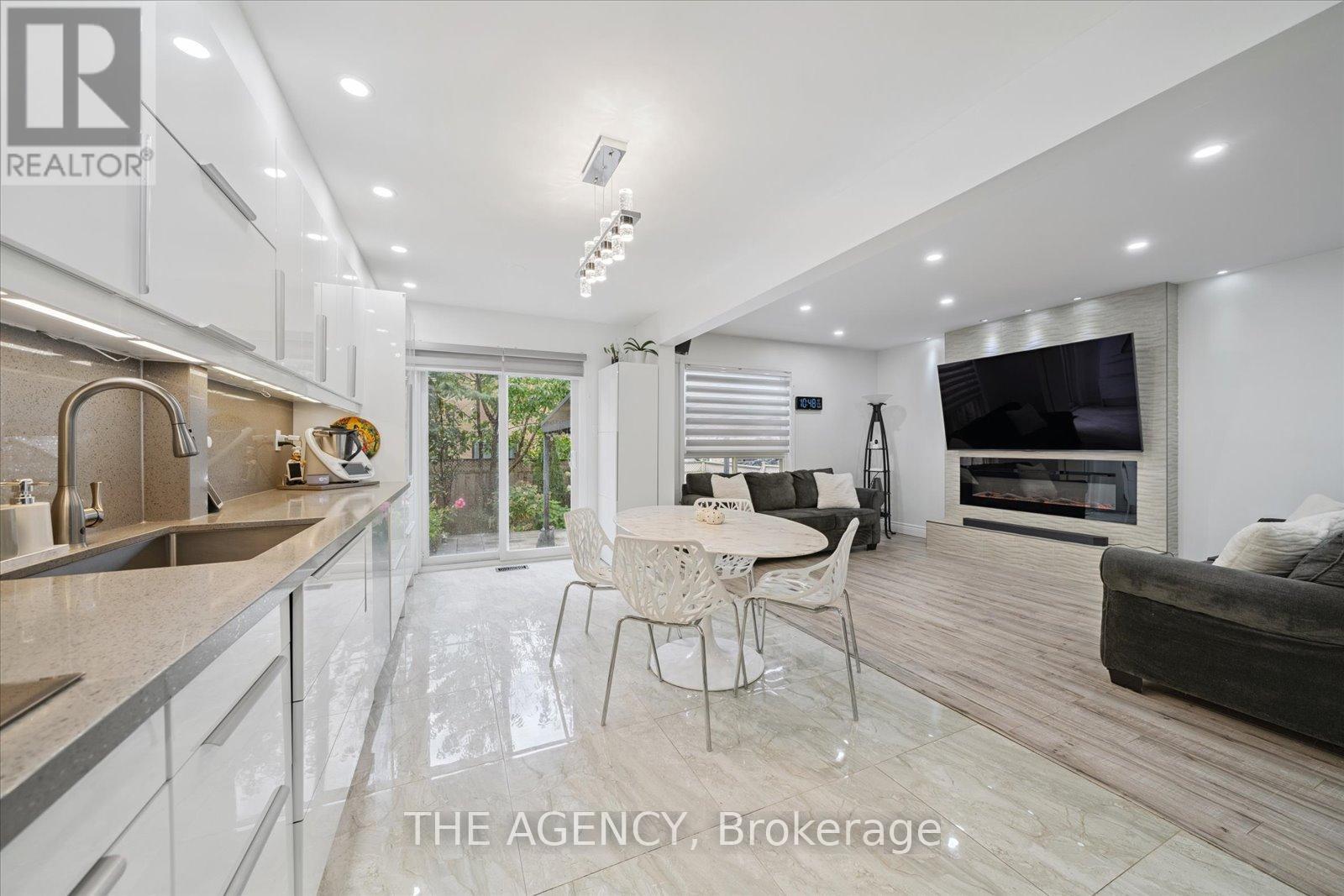 Impeccably updated semi-detached home in the sought-after Summerhill Estates. Bright open-concept main floor with smooth ceilings, modern lighting, and carpet-free flooring throughout. Living room features a custom-designed fireplace.Functional kitchen offering quartz countertops and matching quartz backsplash, a practical layout with ample cabinetry, built-in wall oven and microwave, induction cooktop, and premium-class stainless steel appliances. Sun-filled breakfast area with walk-out to a fully interlocked, low-maintenance backyard with garden space.Second floor features four spacious bedrooms with updated windows. Front entry door, patio door, and garage door have been replaced. Expanded driveway with a custom-added parking space, providing parking for up to four vehicles (3 driveway + 1 garage).High-efficiency heat pump and tankless water heater are owned, with no rental fees. Smart home system allows control of lighting, temperature, and security via smartphone and voice commands, with no monthly subscriptions. Conveniently located close to parks, walking trails, schools, shopping, dining, and Hwy 404. (id:64974)
