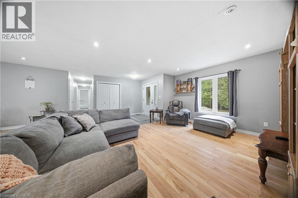 Nestled on a scenic 21+ acre, elevated lot overlooking Driftwood Beach Road, this stunning 2014 built bungalow offers the perfect blend of modern comfort and serene waterfront living. With 1,717 sq ft of thoughtfully designed space, this stone and vinyl home is surrounded by nature and enhanced by direct access to a portion of picturesque Blind Lake, creating a private retreat you'll never want to leave. Step inside to a bright, open-concept layout ideal for both everyday living and entertaining. The spacious main floor features three generously sized bedrooms, including a primary suite complete with a walk-in closet and private en-suite. Large windows invite in natural light while showcasing tranquil views of the surrounding landscape. The basement offers endless potential, ready for your custom finishing to expand living space, add a recreation area, or create the ultimate guest suite. Outdoors, a large, uniquely designed patio provides the perfect setting to relax, host, and take in the peaceful natural surroundings. The expansive property offers privacy and mature greenery, ideal for enjoying waterfront activities, wildlife, and year-round scenic beauty. Car enthusiasts and hobbyists will appreciate the impressive attached 3-bay garage (22 ft x 38 ft), offering ample space for vehicles, storage, and workspace. Ideally situated for convenience, the property is only a short drive to Clifford, approximately 20 minutes from Hanover and Walkerton, about 24 minutes to Listowel, and roughly an hour from both Kitchener and Owen Sound. This is more than a home, it's a lifestyle. Experience the best of lakefront living with unmatched privacy, natural beauty, and modern convenience all in one exceptional property. (id:64974)