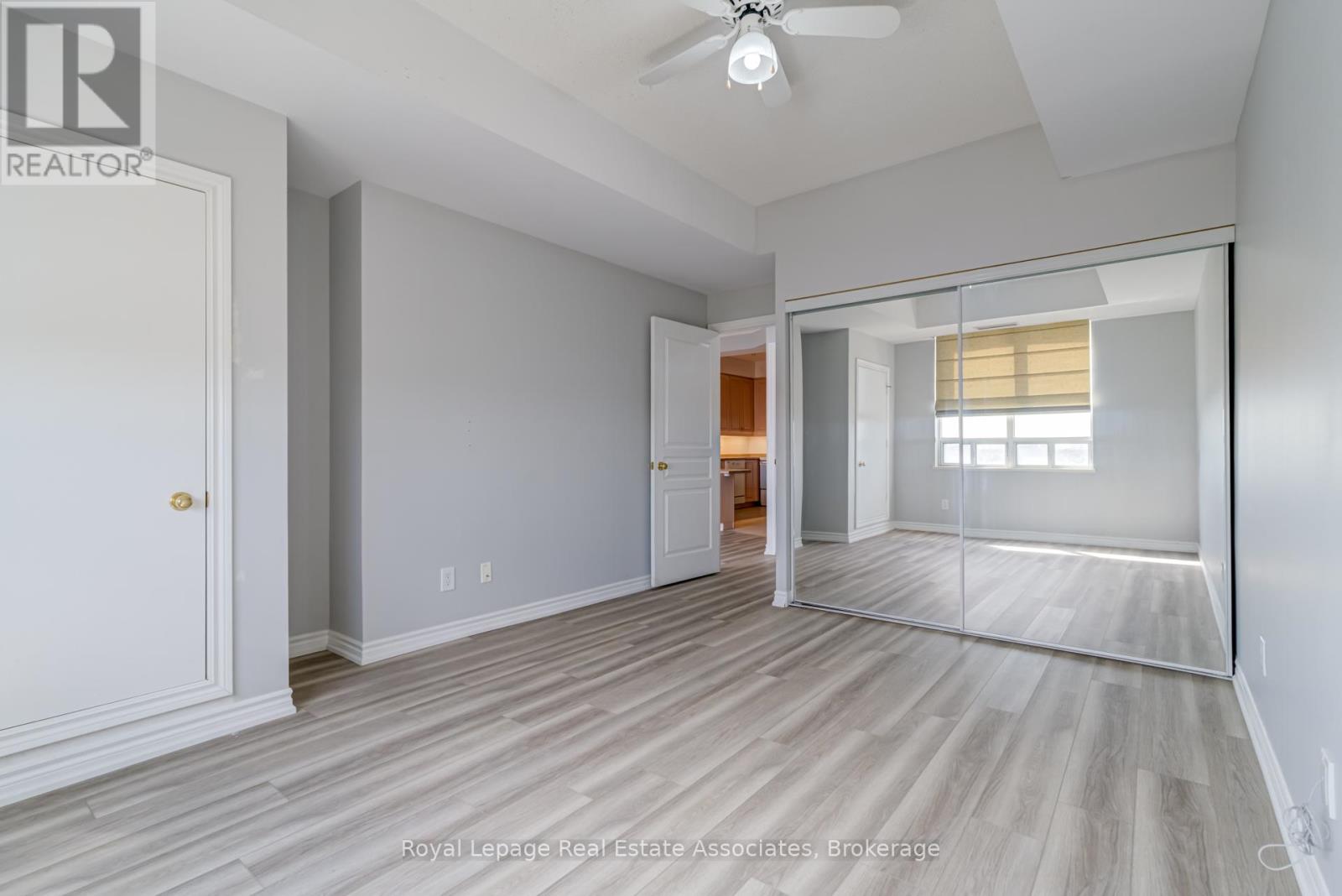 Welcome to the prestigious Belvedere Building, ideally located in the heart of downtown Brampton! This beautifully designed 1+1 bedroom unit features a spacious primary bedroom and an oversized den with a closet perfect as a second bedroom, home office, or guest space. Premium modern flooring and tall kitchen cabinets elevate both style and functionality. Step out onto your private balcony and take in the stunning, unobstructed views ideal for enjoying your morning coffee or entertaining guests. Just steps from vibrant restaurants, Gage Park, the Farmers Market, GO Station, YMCA, and more this prime location truly has it all.Dont miss out book your private showing today! (id:64974)