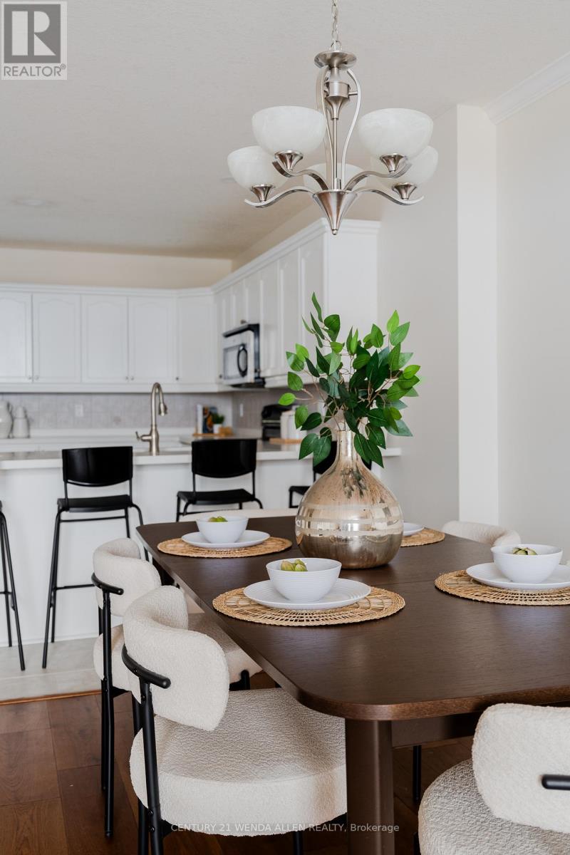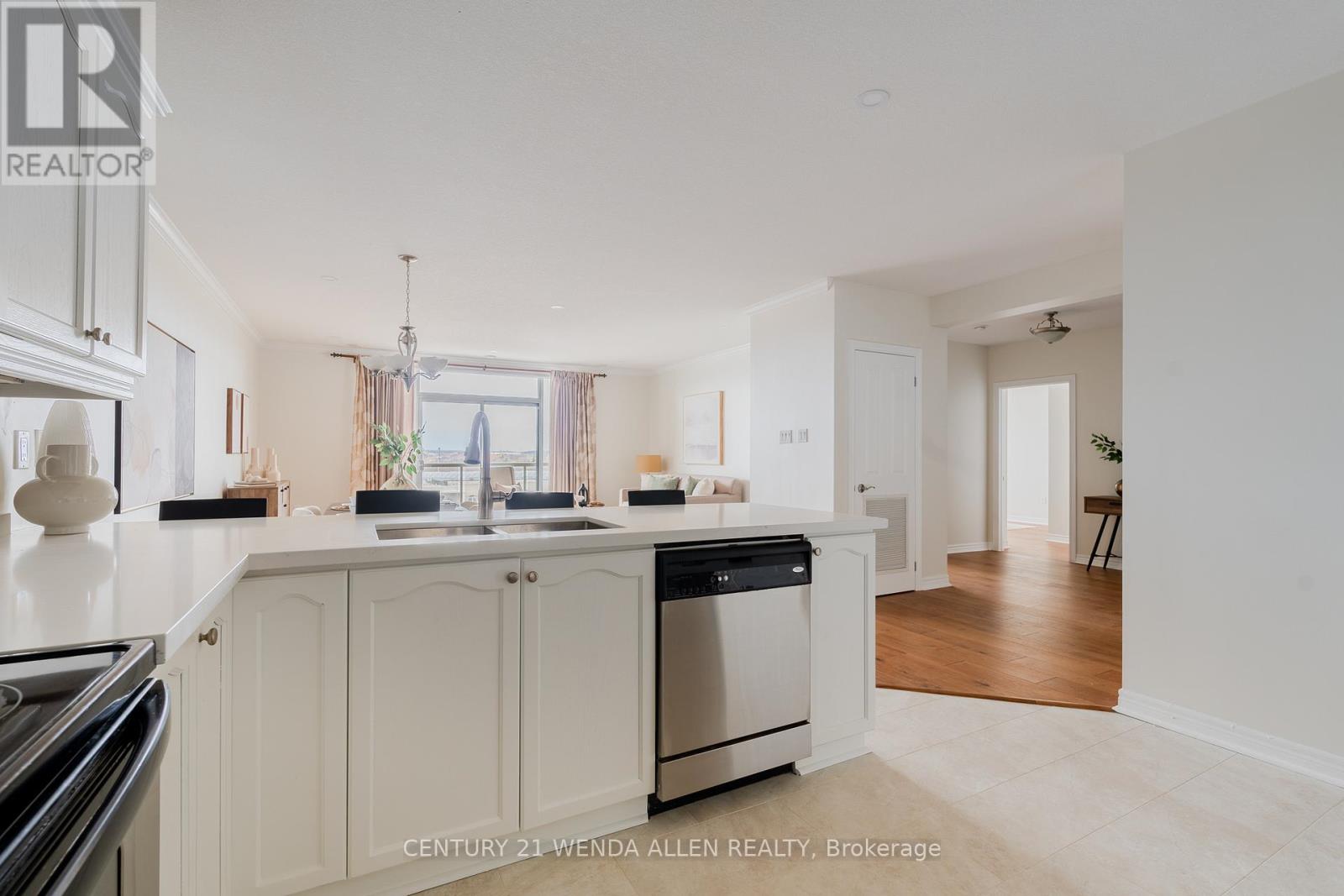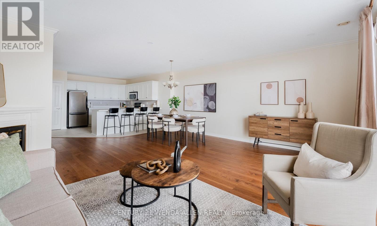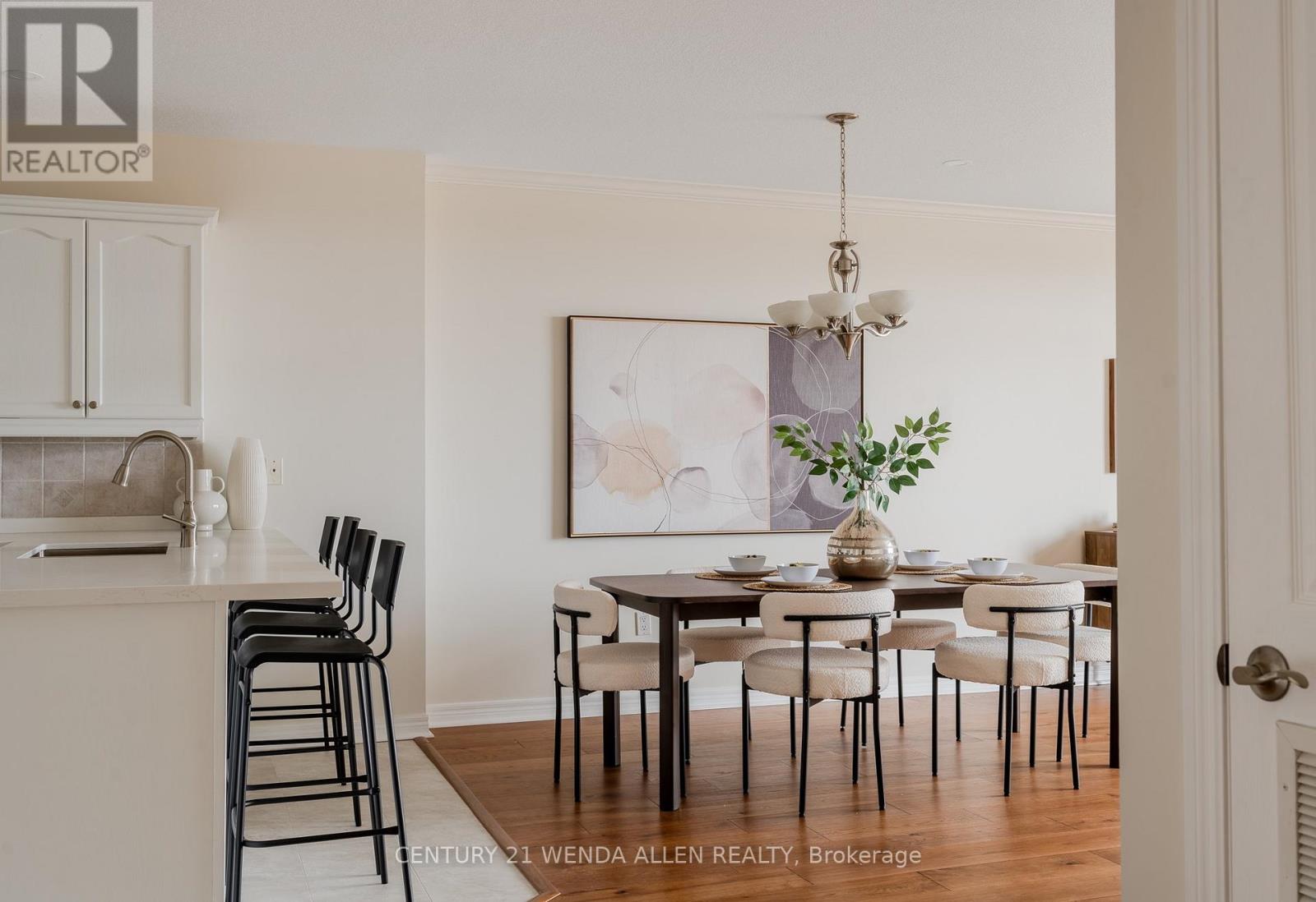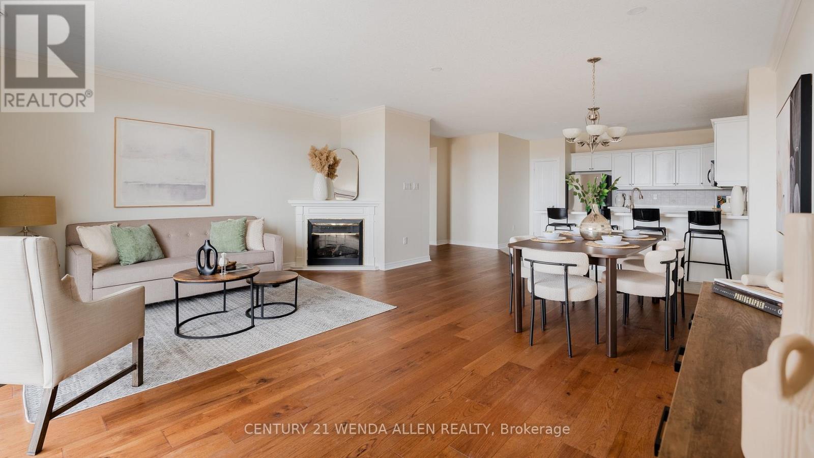 !!Stunning Views Of The Niagara Escarpment!! Experience An Elegant & Upscale Lifestyle In Coveted Millcroft Place In The Heart Of Idyllic Uptown Burlington! Enjoy The Benefits & Convenience Of Condo Living In This Very Spacious 1400SF Of Bright & Airy Living Space! Perfect For Empty Nesters/Professionals Downsizing From House To Condo Life Without Sacrificing Space! Newly Renovated Open-Concept Living/Dining/Kitchen Is Beautifully Highlighted By Gorgeous Panoramic Views! The Crisp White Kitchen Features Quartz Countertops/Tons Of Counterspace/Stainless Steel Appliances/Pantry/Backsplash. The Long Breakfast Bar Accommodates 4-6 Barstools, Making It Handy For Those Quick Meals. The Very Spacious Dining Room/Living Room Is Conducive To The Largest Of Family Functions, Perfect For Entertaining. On Those Cold, Chilly Nights Or Lazy Sunday Afternoons, Sit By The Gas Fireplace. Floor-To-Ceiling Windows Capture A Plethora Of Light. Watch The Seasons Change In The Surrounding Greenspace Or Take In Cinematic Sunsets Over The Niagara Escarpment, All From The Comfort Of Your Open Balcony! Generously Sized Primary Bedroom Boasts A Large Window & Reno'd 3-Pc Ensuite With Glass Shower & Quartz C/T. The Large 2nd Bedroom Offers Many Additional Uses If Needed, Such As Office Space/Hobby Room/Dressing Room. Pamper Yourself In The Spacious & Beautifully Renovated 4-Pc Washroom. The Oversized Ensuite Laundry Room Is Perfect For Additional Storage/Ironing Board/Drying Rack/Supplies. New Engineered Hardwood Flooring! Crown Moulding In Lr/Dr! Extensive Building Amenities Include Gym/Office Space/Workshop/Party Room/Lounge/Seating Areas/Indoor & Outdoor Visitor Parking. Reap The Benefits Of This Prime Location With Excellent Proximity To Schools/Groceries/Shopping/Restaurants/Hospital/Stables/Bronte Creek Provincial Park/Mount Nemo Conservation Area & Much More! Put This Elegant Beauty On Your List! (id:64974)