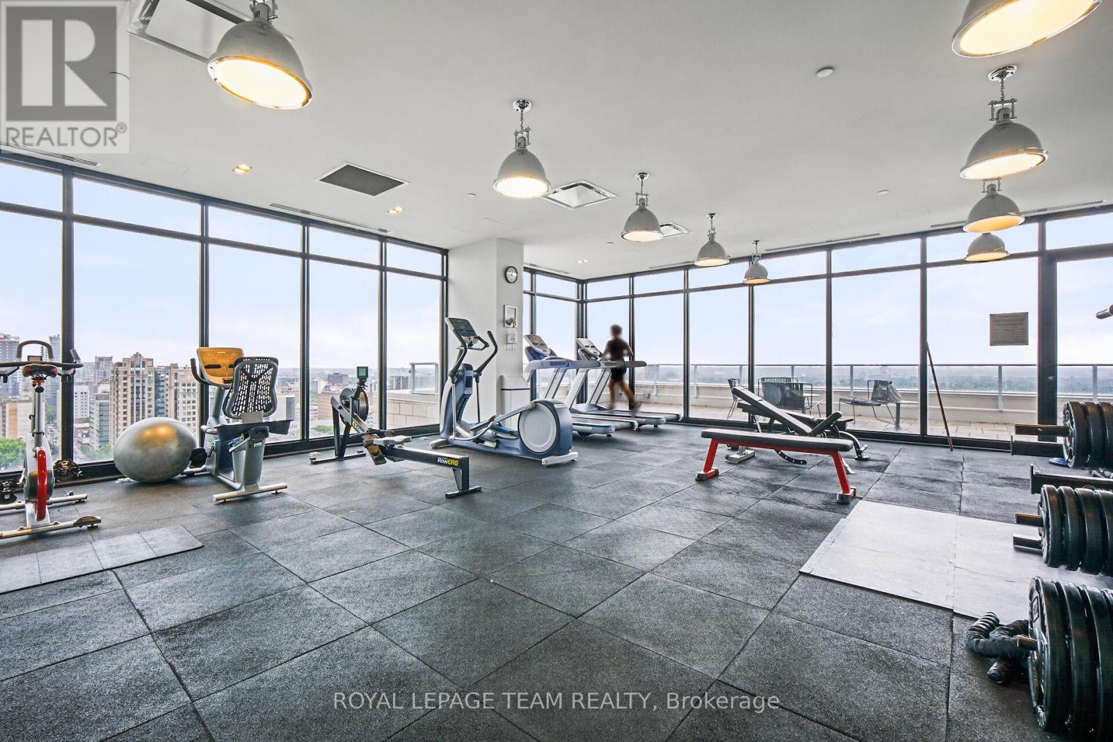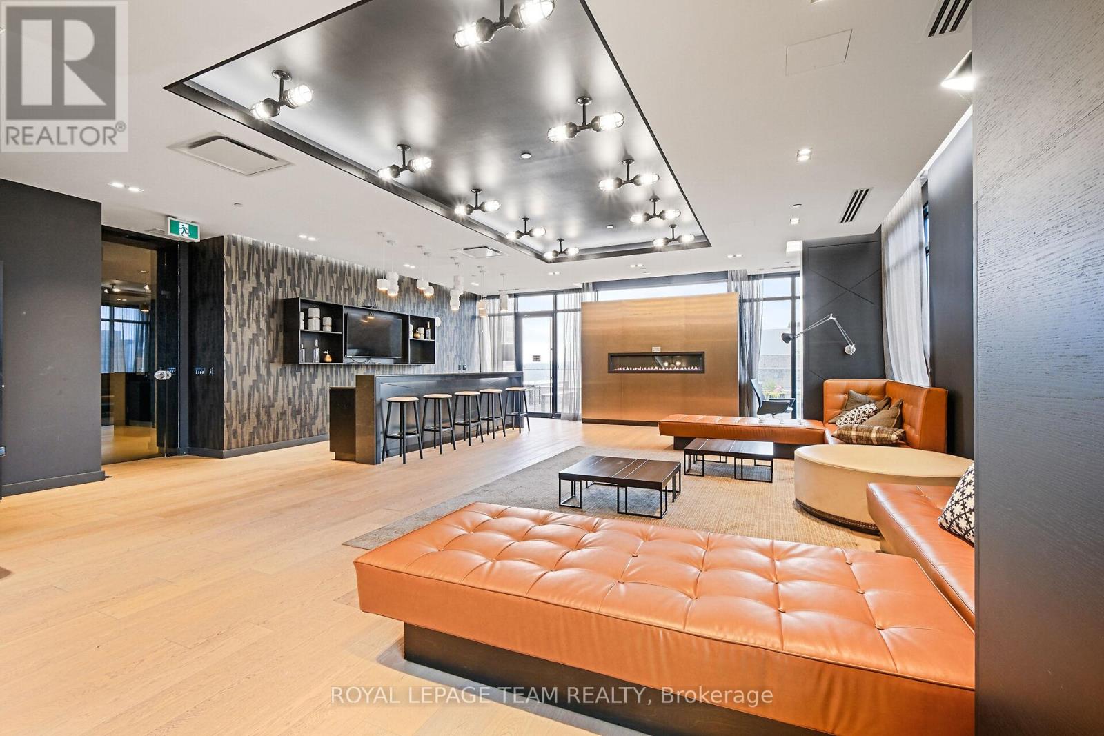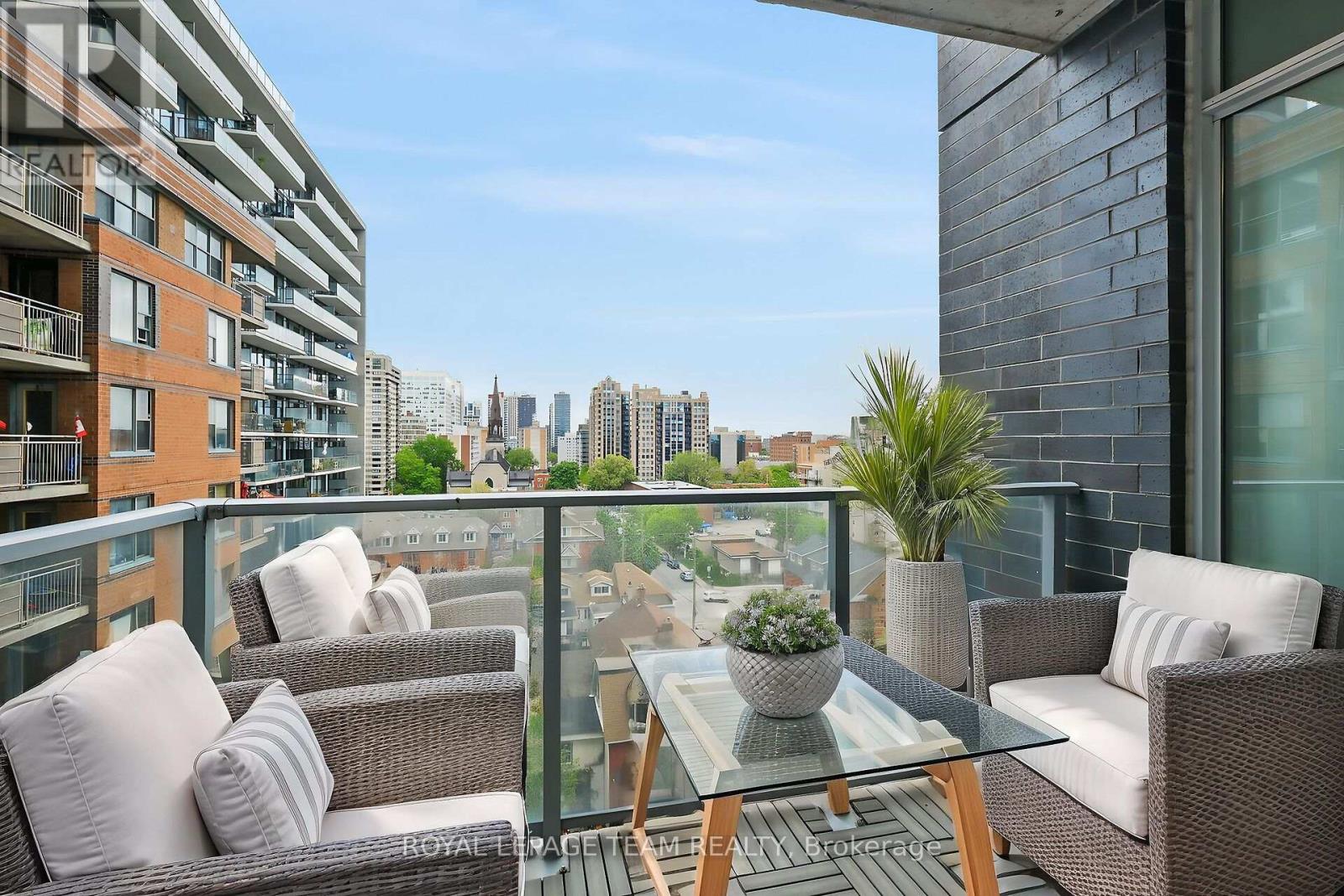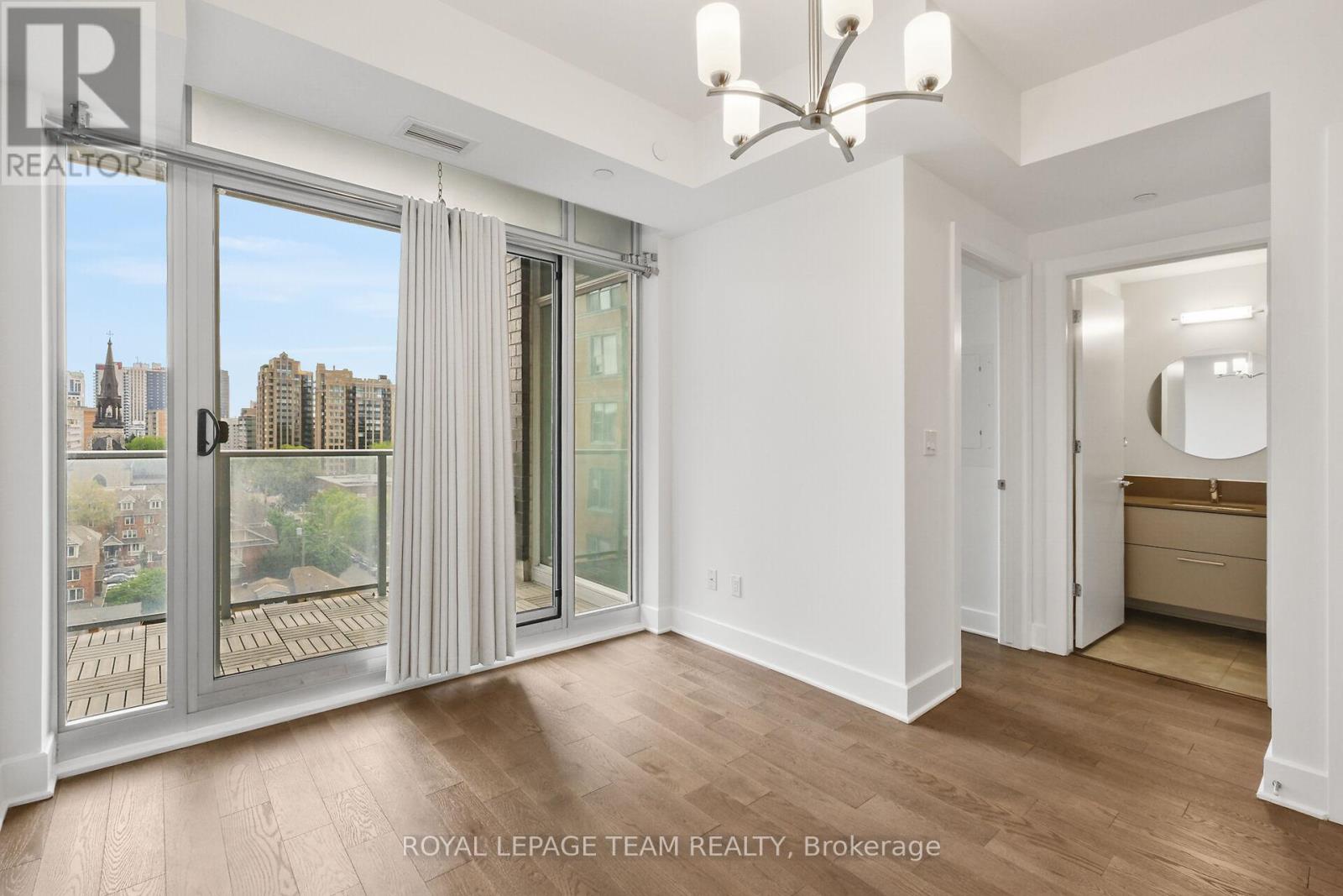 Welcome to this freshly painted, bright & modern, 9th floor, 686 sq ft condo (according to builder floorplans) featuring 1 Bedroom, 1 full Bath, and a versatile flex room. This open-concept layout features a large patio window that fills the space with abundant natural light, complemented by elegant hardwood flooring.The sleek designer Kitchen is equipped with stainless steel appliances, quartz countertops, ample cabinet space and an island with seating; perfect for casual dining or meal prep. A spacious east-facing balcony offers expansive views, ideal for both relaxing and entertaining. The Primary Bedroom is well-proportioned & bright, and features a built-in closet. In the spacious Den/Flex Rm, a sliding pocket door transforms the space into a home office, guestroom or convenient second Bedroom able to accommodate a queen size bed, complete with a closet/built-in storage. Additional highlights include convenient in-unit laundry, personal storage locker and access to top-tier building amenities: indoor pool, outdoor terrace and BBQ, state-of-the-art gym, sauna, party room, meeting spaces and guest suites. Monthly condo fees of $424.34 cover water/sewer, gas, reserve fund contributions, building insurance, management fees. Hydro averages approximately $80/month. Living here has you steps from the O-Train Lyon station, Parliament Hill and so much more! (id:64974)