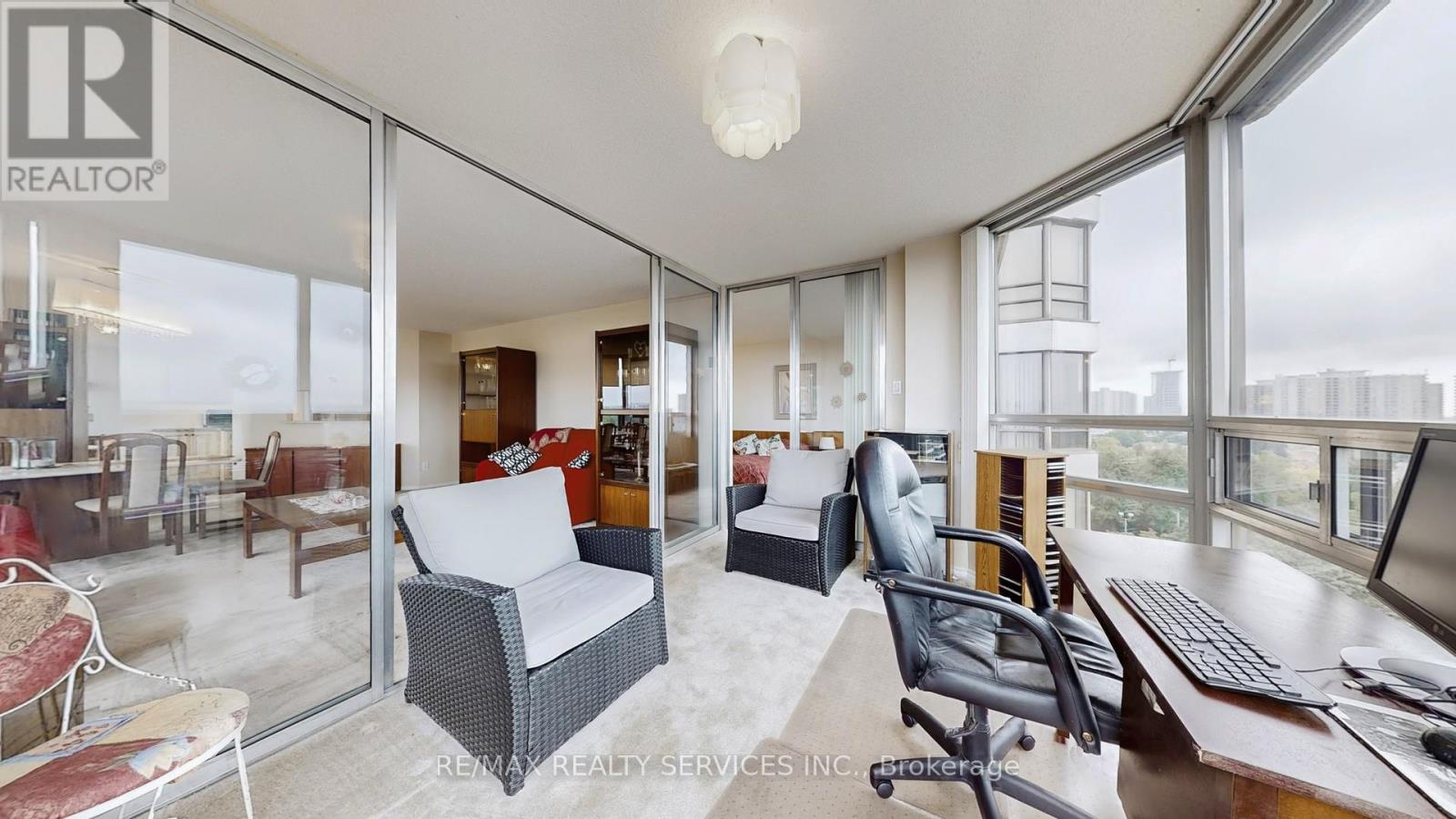 Welcome to Pinnacle III voted condo of the year 2025. A rare gem rustled above the tranquil Etobicoke creek ravine. This suite boasting 1324 sq ft of well designed space is located in one of the areas most established & desirable buildings. Features bright spacious layout with floor to ceiling windows and expansive north west views. The modern kitchen with adjoining breakfast area opens into generous living room dining room and solarium. The suite offers tow full bathrooms including 3pc ensuite, separate shower in primary bedroom, 2nd bedroom comfortable size with large closet. The solarium makes for home office, guest space or even a ding rm. In-suite laundry. Two owned parking spaces together, storage locker. 24 hr concierge plus security system. Indoor pool, men's & women's saunas. Two equipped fitness rooms. Tennis court. Billard's room and party room. Located in a peaceful residential enclave with minutes to future metro links rail & go system. Transportation at the door walk to shopping. Surrounded by walking trails and green spaces. (id:64974)