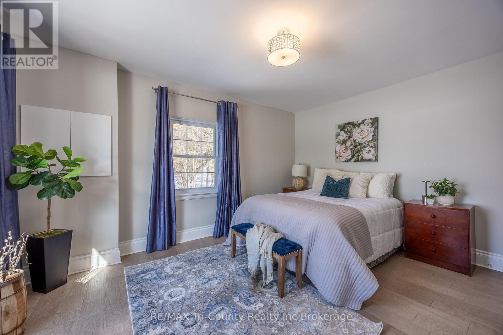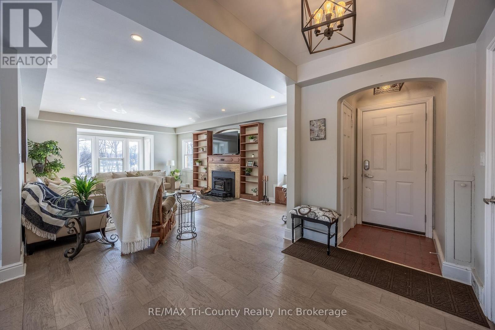 A remarkable 5 bedroom 1 1/2 storey home beautifully situated on over 2 acres that is perfect for large families, multi-gen living or income potential with a legal duplex configuration already in place. This unique property offers spacious living, natural light throughout and flexible living options. Basement unit can be accessed from the interior or exterior of the home. Open-concept main level featuring a bright living and dining area anchored by a cozy wood-insert fireplace. The galley kitchen boasts quartz countertops and a breakfast nook with direct outdoor access to the backyard. Large windows throughout for plenty of natural light. Den has patio access overlooking a large private back yard. Main floor primary bedroom and 4 pc bath. Upstairs has generously sized 3rd and 4th bedrooms each with 3pc ensuite baths with a convenient laundry closet. Downstairs, the walk-up basement expands your living space with two additional bedrooms, a full kitchen, living room area, and another full bath - ready for extended family or rental income. Exterior walk up staircase from the back of the house. Laundry room and utility room in basement. Outside, enjoy a private setting with a peaceful backyard, ample parking and room to roam. The property features black raspberry bushes, fruit trees, mature forest trees, ornamental shrubs, and a variety of seasonal flowers, along with ferns and decorative grasses throughout the landscape. With separate hydro meters for each unit and an exterior generator plug, this home blends comfort, versatility and value like no other. Registered natural gas well for free heat. Central air & 2 wall heating & cooling units on 2nd floor 2022. 2 steel garage doors 2022. 3 steel doors at back of house 2022. Fireplace insert & chimney liner with WETT inspection 2023. Roof 2025. 6 new windows on the second floor. Exterior plug for generator. Separate hydro metres for basement unit and main household. (id:64974)
