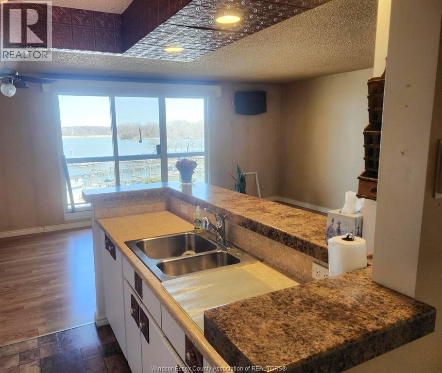 WOW! describes this 2 balcony,1 BR corner unit. Picturesque Nth & Nth East water front views of Lakeview Marina, WYC, Peche Island, Detroit River and Lake St Clair. Impressive from the moment you enter this well cared for open concept design, full of natural light. Kitchen w/breakfast island/bar, Livingroom w/corner electric FP ,custom bathroom with wide double size shower. Great place to enjoy nature, walking trails, rec centre, with many amenities, even pickle ball court. (id:64974)