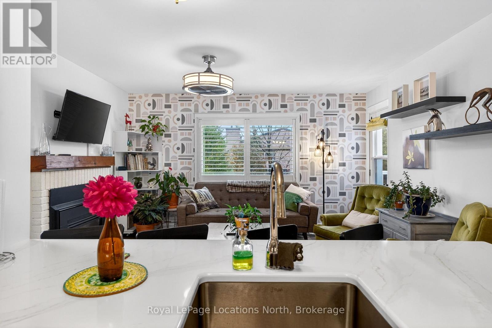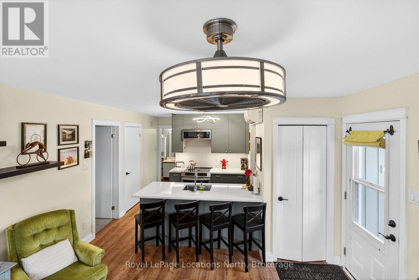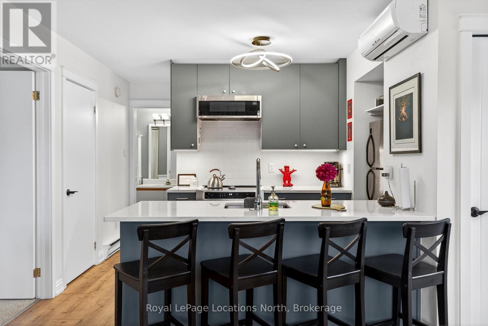 Discover easy, four-season living in this stylish 2-bedroom, 2-bathroom condo located in the heart of Cranberry/Living Stone. Just minutes from downtown Collingwood and Blue Mountain, and a short stroll to Georgian Bay, golf, and trails, this location puts everything at your doorstep.Positioned as a desirable southwest-facing upper unit in the Glen II building, this home benefits from quality construction with concrete flooring that significantly reduces sound transfer-offering a quieter, more private living experience.Inside, the bright and functional layout features an open-concept updated kitchen, dining, and living area anchored by a cozy gas fireplace. A large living room window enhances the sense of space, while the private balcony is the perfect spot to unwind on sunny afternoons.The primary bedroom offers direct access to the balcony along with a walk-in closet and 4-piece ensuite. A well-sized second bedroom and 3-piece bath provide comfortable accommodations for guests or family. Additional highlights include in-suite laundry and air conditioning for year-round comfort.Whether you're looking for a full-time home, weekend escape, or investment opportunity, this property delivers on lifestyle, location, and low-maintenance living. (id:64974)