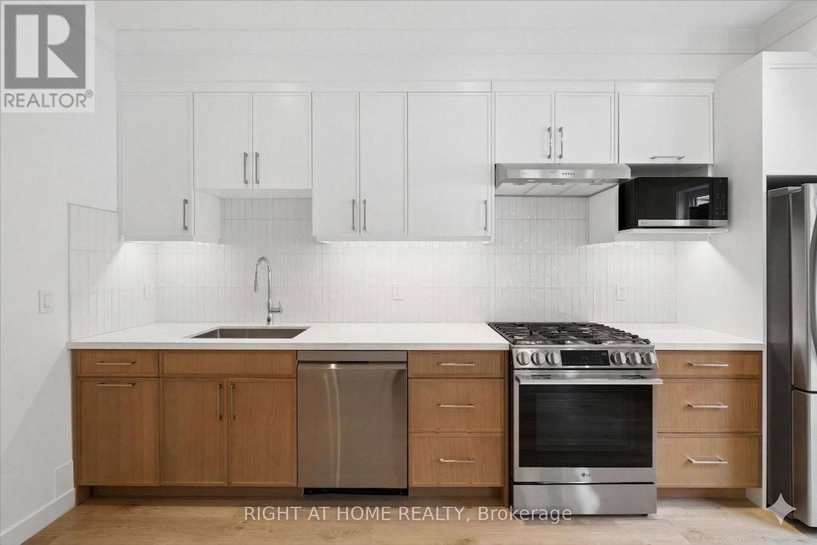 Experience unparalleled privacy and modern luxury in this stunning 3-bedroom, 3-bathroom laneway suite nestled at 91 Barton Avenue in the highly sought-after Seaton Village/Annex neighborhood. Offering the rare advantage of having no neighbors above or below, this beautifully designed home seamlessly blends the historic charm of the area with a sleek, contemporary aesthetic. The sun-drenched, open-concept floor plan features wide-plank oak-style flooring, brilliant skylights, and a chef-inspired kitchen equipped with premium stainless steel appliances-including a gas range-gorgeous two-tone cabinetry, and a classic subway tile backsplash. Intelligent design touches are found throughout, from the spacious bedrooms featuring clever built-in floating desks for remote work, to the spectacular walk-in closet with custom organizers. Unwind in one of three spa-like bathrooms showcasing bespoke tilework, including a striking green shower surround, chic LED-backlit mirrors, and modern wood-toned vanities. With high-speed internet included in the price and the exclusive tranquility of a detached laneway build, this immaculate, move-in-ready oasis is perfectly positioned steps from vibrant local shops, cafes, and transit. (id:64974)