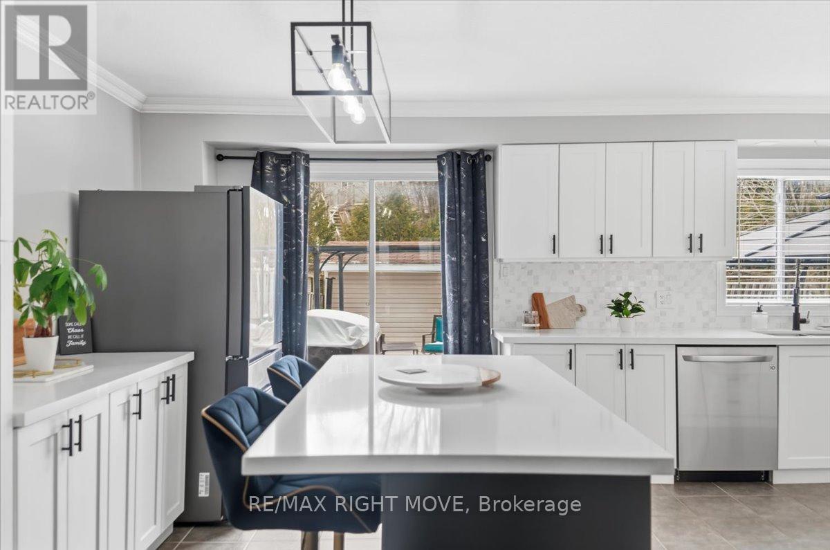 Welcome to 91 Benjamin Crescent, a beautifully updated end-unit home in the heart of Orangeville, offering the perfect blend of modern upgrades, functional space, and family-friendly living. Step inside to a stunning, recently renovated kitchen designed to impress - featuring plenty of storage, sleek new appliances, a gas stove, and a convenient pot filler above the stove for effortless cooking. The spacious island serves as the centerpiece, perfect for meal prep, casual dining, and entertaining.Upstairs, you'll find three generously sized bedrooms, ideal for families or those needing extra space for a home office or guest room. The finished basement adds even more versatility, complete with a bathroom rough-in, giving you the opportunity to customize and add future value. As an end-unit, this home offers added privacy and natural light, along with a large backyard that includes hot tub, extensive decking, fully fenced yard- perfect for outdoor gatherings, kids, pets, or simply relaxing in your own space. Ideally located just minutes from Fendley Park, where you'll find a splash pad, playground, and green space, this home is perfectly positioned for families and outdoor enjoyment. Close to schools, parks, and everyday amenities, this move-in ready property offers a wonderful lifestyle in a welcoming community. (id:64974)