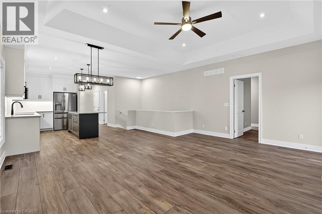 Welcome to 91 Homestead Drive, a beautifully crafted, newly built bungalow nestled in the heart of Virgil, one of Niagara-on-the-Lake's most charming communities. This new builder's home has had approximately $100k in builder upgrades. Ideally situated just minutes from renowned wineries, exceptional dining, golf courses, and boutique shopping. Designed for seamless living, the open-concept main floor welcomes you with a large great room with fireplace and bright and modern kitchen complete with large island and contemporary light fixtures. There is also a spacious primary suite complete with a walk-in closet and private ensuite, a second bedroom with a full bath nearby, and a third bright front-facing bedroom - or perfect for a home office. Engineered hardwood flooring flows throughout and convenient main-floor laundry. The basement extends the living space with a third bedroom, full bathroom, a cozy family room with another gas fireplace, and lots of storage. Step outside to a beautifully finished composite deck-ideal for relaxing or entertaining. An attached two-car garage and private double driveway complete this exceptional property. This home is a perfect blend of modern finishes, functional design, and an unbeatable location - ready to welcome you home! (id:64974)