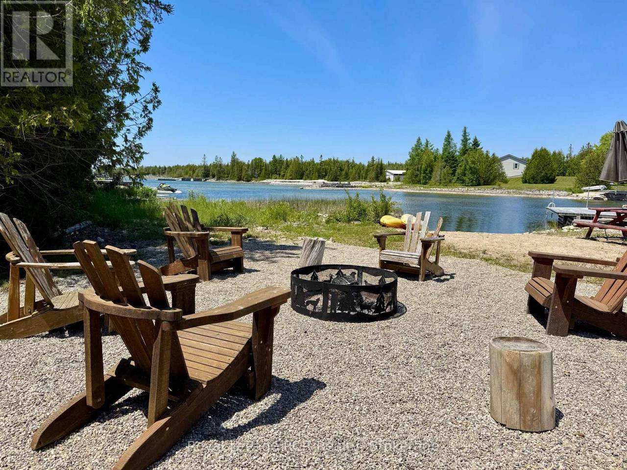 A 'MUST-SEE' WATERFRONT HOME in EXCLUSIVE LITTLE PINE TREE HARBOUR on Lake Huron. Just walking up to the TIMBER-FRAMED covered front entry with 'CUSTOM-MILLED' SOLID FRONT DOOR SYSTEM, you know that you are entering 'SOMETHING SPECIAL'. There is nothing ordinary about this 2,300+ sq ft 3-LEVEL waterfront vacation home, owned and built by an 'old-school' artisan wood carpenter. All of the DETAILS ARE 'CUSTOM'- interior doors are trim-milled from solid wood, kitchen cabinets and most windows are custom built - 'just for this home'. HIGH-END WOOD and NATURAL STONE details everywhere ... in the oversized MAIN FLOOR MASTER RETREAT w/6pc ensuite, walk-out to private covered patio area andVAULTED WOOD CEILINGS ... in the vaulted 2- STOREY GREAT ROOM with STONE WALL FIREPLACE ... in theOPEN-CONCEPT, MODERN-WHITE KITCHEN with solid wood cabinets and POLISHED NATURAL STONE COUNTERS ... in the 2ND level VAULTED-CEILING SITTING ROOM and the 3rd level LOFT GETAWAY or 4BEDROOM SPACE ... custom craftsmanship apparent everywhere - inside & out! Modern mechanicals incl.forced-air furnace. NATURAL WOOD SIDING and decking blends in perfectly with the 1 ACRE cedar fore stsetting PROPERTY. Little Pine Tree Harbour on Lake Huron offers DEEP, CRYSTAL CLEAR WATER with protection from open water waves for SAFE WATER-SPORTS & BOAT DOCKING. Great mid-Peninsula location - 15mins from Lions Head (shopping, hospital, marina, school), 20mins to NATIONAL PARK &GROTTO, 25mins to TOBERMORY & Fathom-Five Marine Park (Flowerpots!). This special, finely crafted waterfront property is a MUST-SEE!!! (id:64974)