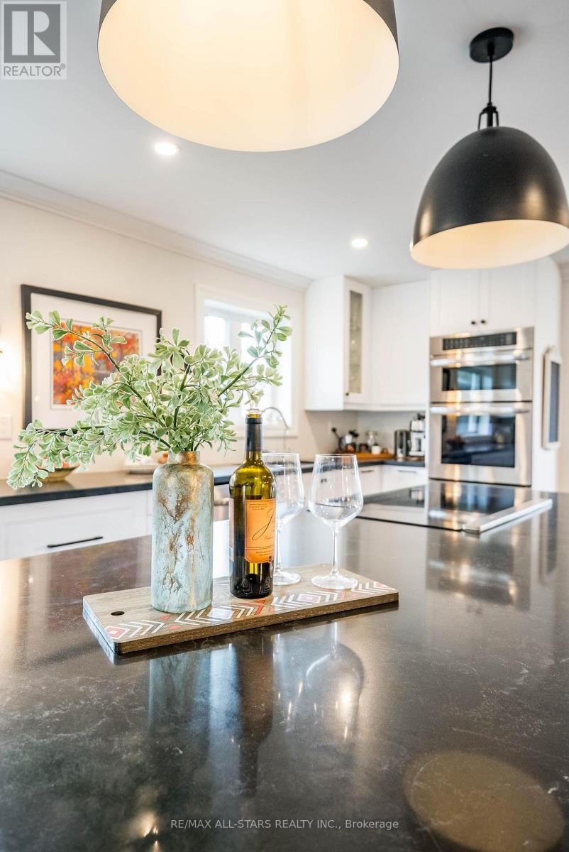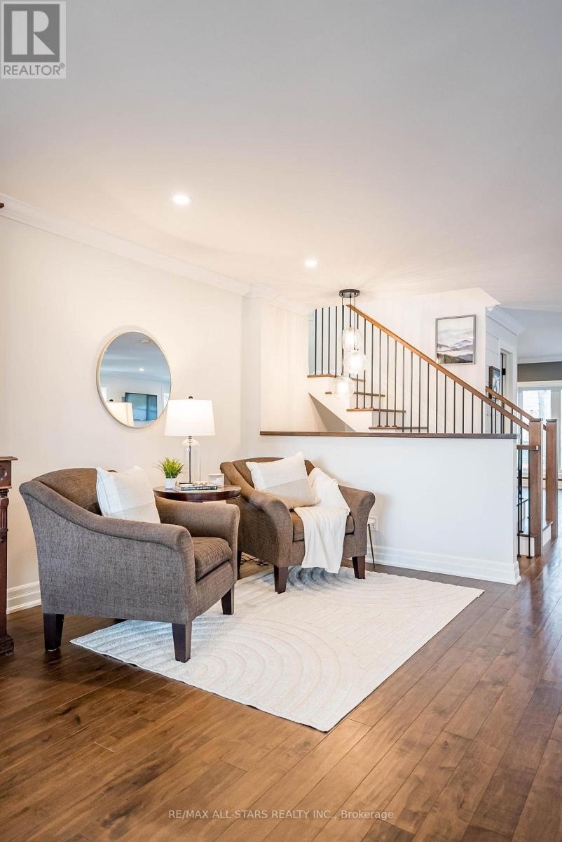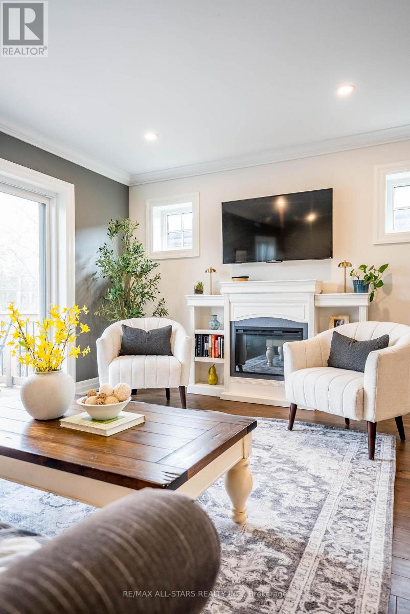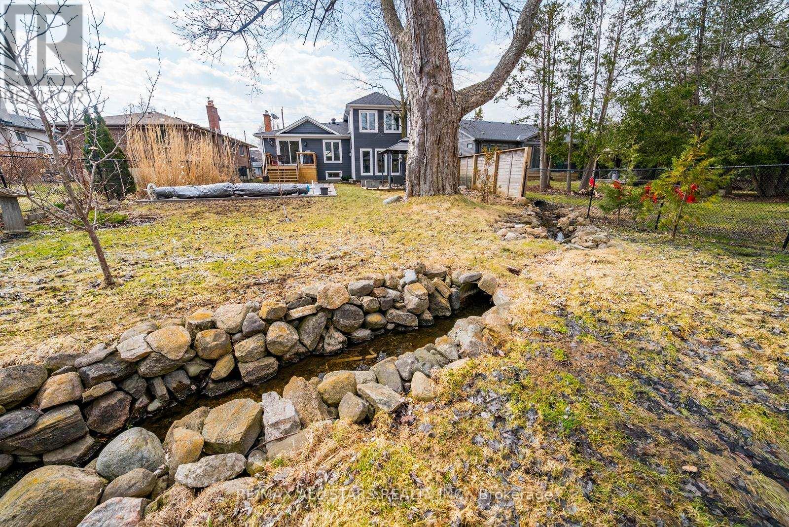 Stunning custom side-split in the heart of Stouffville-modern farmhouse meets California coastal design. From the moment you arrive, the charming craftsman style exterior & inviting front porch set the tone for this thoughtfully curated home. Step inside to a bright open concept main floor designed for both everyday living & entertaining. A formal dining area w/ a large picture window offers an elegant space for hosting, while the kitchen serves as the centerpiece of the home w/ stone counters, an oversized island, built in stainless steel appliances & generous storage. The main floor also features a cozy sitting area & a spacious family room w/ walk out to the backyard. Set on an impressive 50 x 200 foot lot, the backyard offers an in-ground heated pool, expansive space for entertaining or relaxing, & a charming creek running through the property, adding a rare & peaceful natural element. Hardwood flooring, pot lights & upgraded fixtures run throughout, complemented by custom millwork incl. wainscoting, crown moulding & shiplap accents that bring warmth & character to every level. Two spacious bedrooms are located on the upper level & share a well appointed 4 pc bathroom. A few steps down from the main level, the private primary suite features floor to ceiling windows, a walk out to the backyard, a custom walk in closet & a beautifully finished ensuite with heated floors, oversized glass shower & additional vanity. This level also includes a functional mudroom with side entrance & direct access to the garage. The finished basement offers additional living space w/ a rec room featuring a stone fireplace, home office, 4th bedroom, 3 pc bathroom, laundry room w/ custom cabinetry & a cold cellar. Extensively renovated & expanded, this home offers a refined balance of style, comfort & functionality. Located just a short walk to Historic Main Street Stouffville, Memorial Park, schools, walking trails & the GO station, in a community known for its charm & convenience. (id:64974)