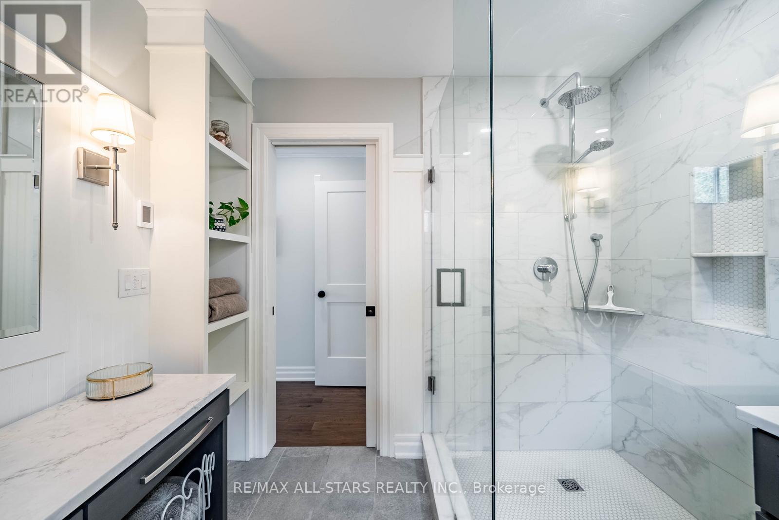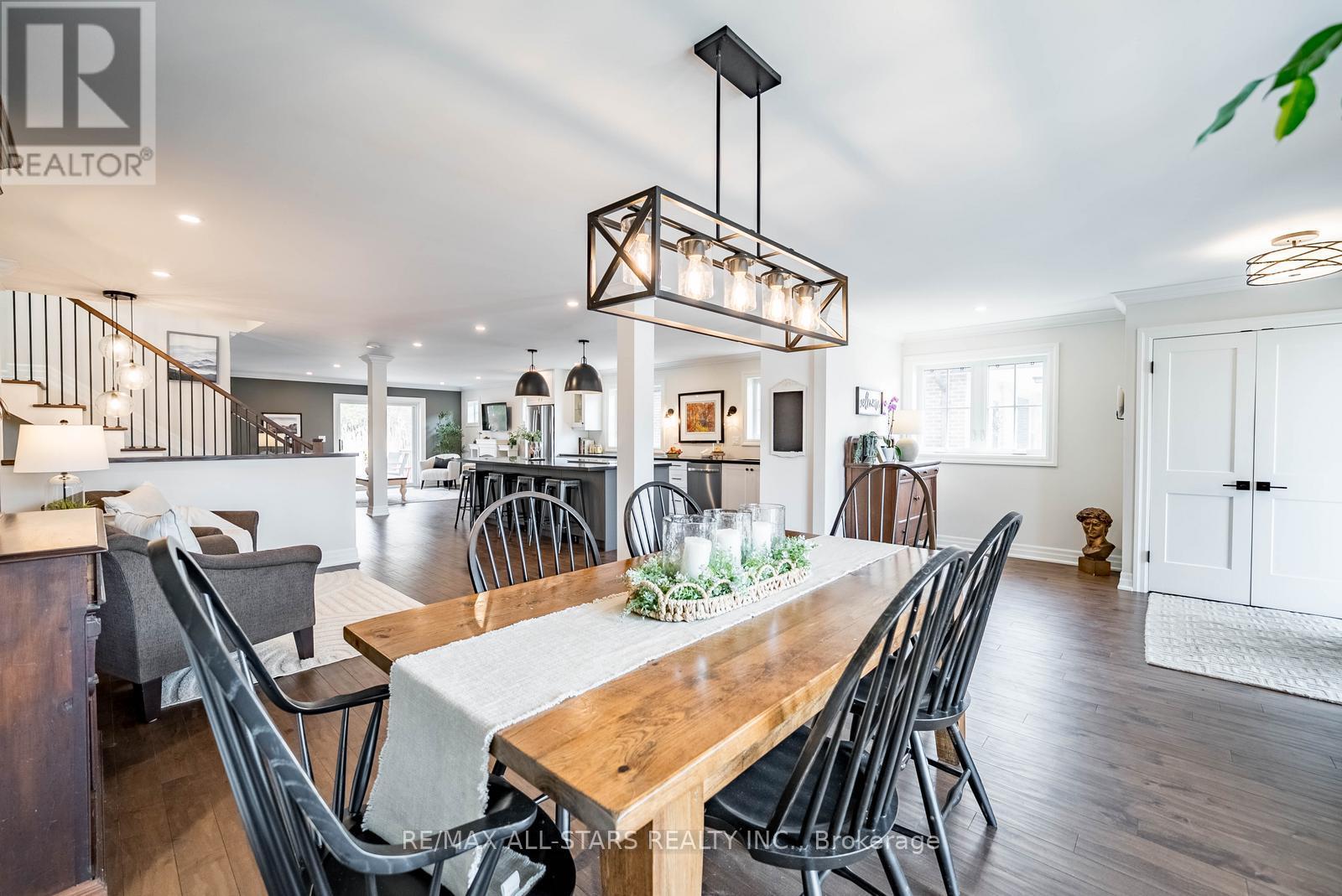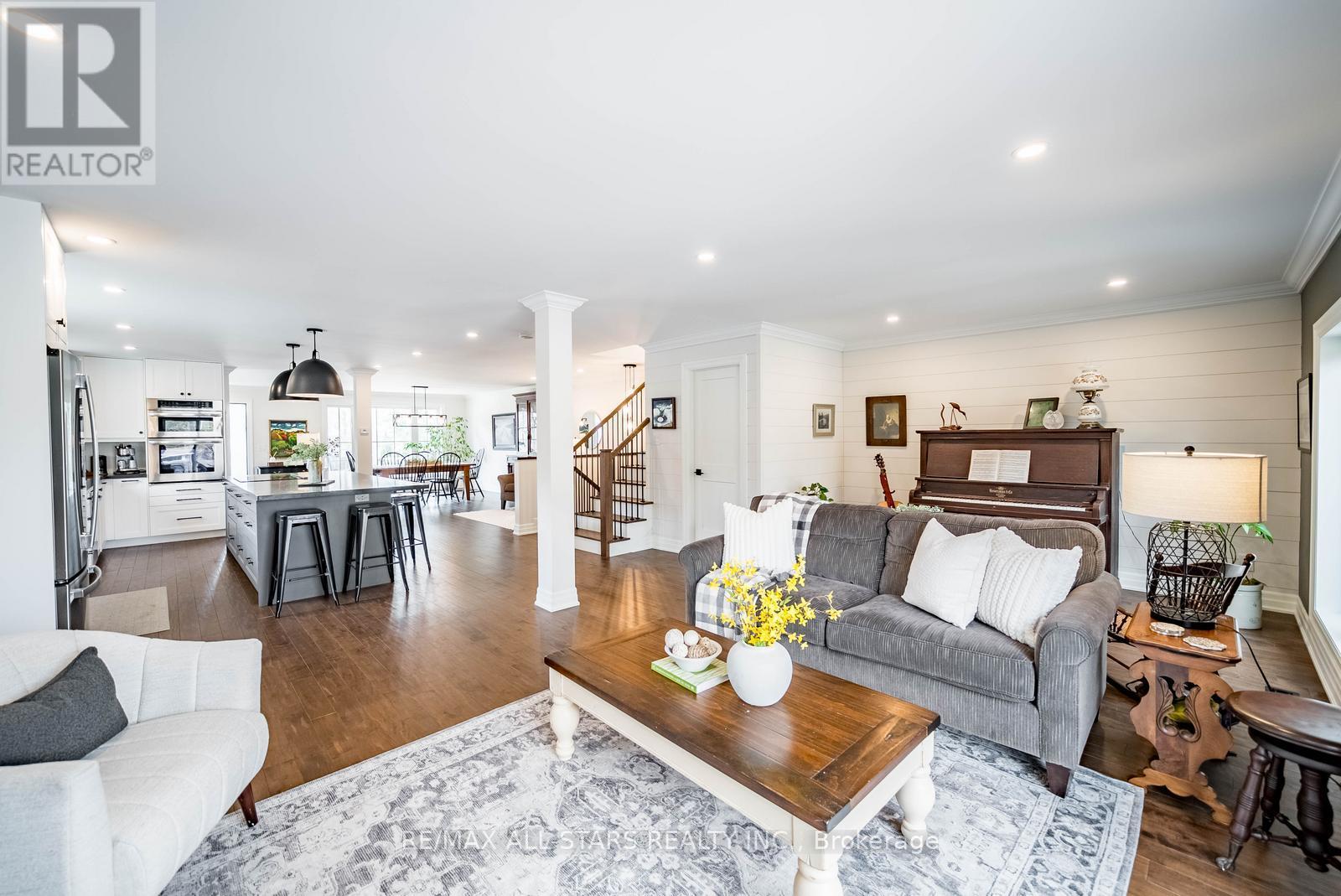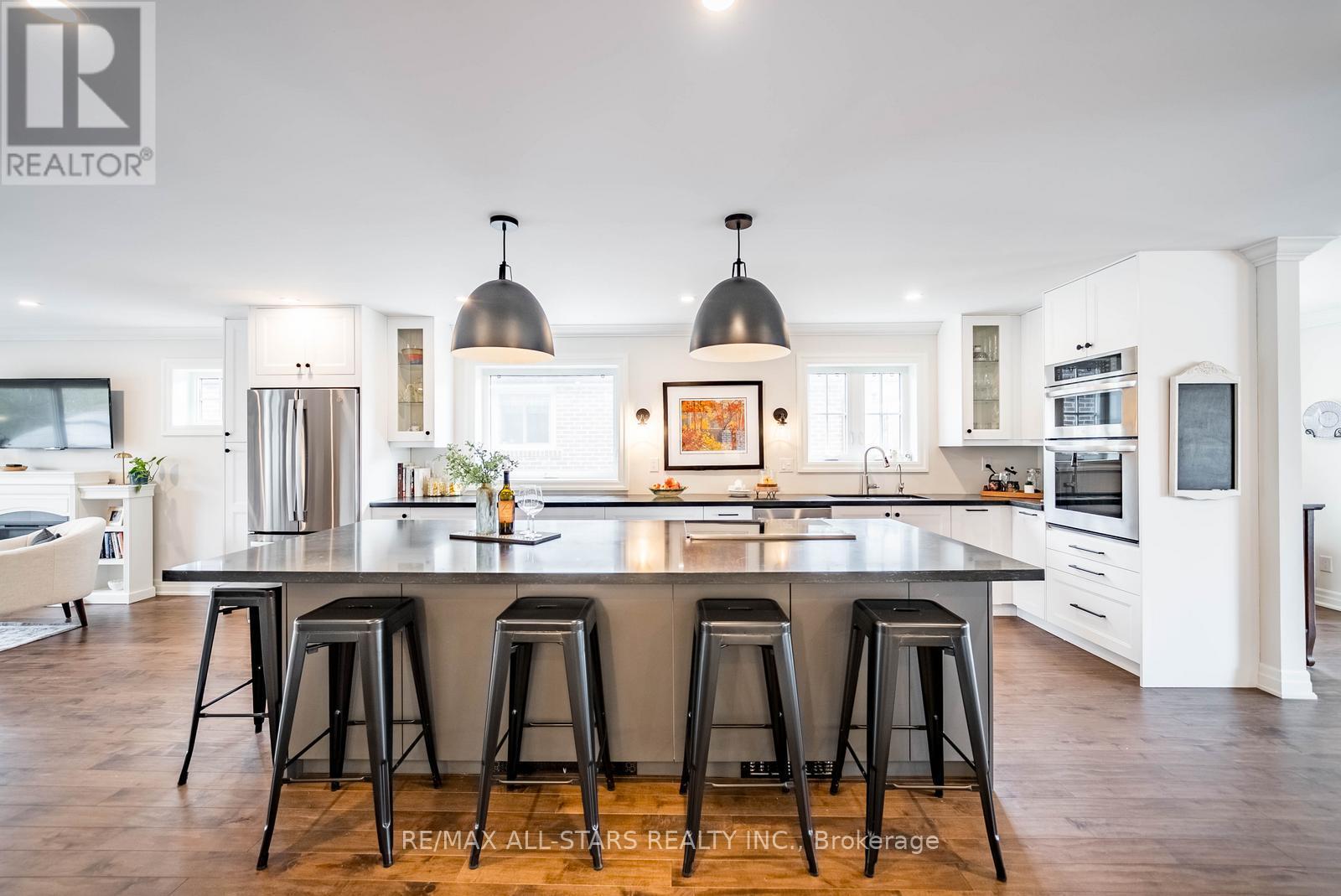 Stunning custom side-split in the heart of Stouffville-modern farmhouse meets California coastal design. From the moment you arrive, the charming craftsman style exterior & inviting front porch set the tone for this thoughtfully curated home. Step inside to a bright open concept main floor designed for both everyday living & entertaining. A formal dining area w/ a large picture window offers an elegant space for hosting, while the kitchen serves as the centerpiece of the home w/ stone counters, an oversized island, built in stainless steel appliances & generous storage. The main floor also features a cozy sitting area & a spacious family room w/ walk out to the backyard. Set on an impressive 50 x 200 foot lot, the backyard offers an in-ground heated pool, expansive space for entertaining or relaxing, & a charming creek running through the property, adding a rare & peaceful natural element. Hardwood flooring, pot lights & upgraded fixtures run throughout, complemented by custom millwork incl. wainscoting, crown moulding & shiplap accents that bring warmth & character to every level. Two spacious bedrooms are located on the upper level & share a well appointed 4 pc bathroom. A few steps down from the main level, the private primary suite features floor to ceiling windows, a walk out to the backyard, a custom walk in closet & a beautifully finished ensuite with heated floors, oversized glass shower & additional vanity. This level also includes a functional mudroom with side entrance & direct access to the garage. The finished basement offers additional living space w/ a rec room featuring a stone fireplace, home office, 4th bedroom, 3 pc bathroom, laundry room w/ custom cabinetry & a cold cellar. Extensively renovated & expanded, this home offers a refined balance of style, comfort & functionality. Located just a short walk to Historic Main Street Stouffville, Memorial Park, schools, walking trails & the GO station, in a community known for its charm & convenience. (id:64974)