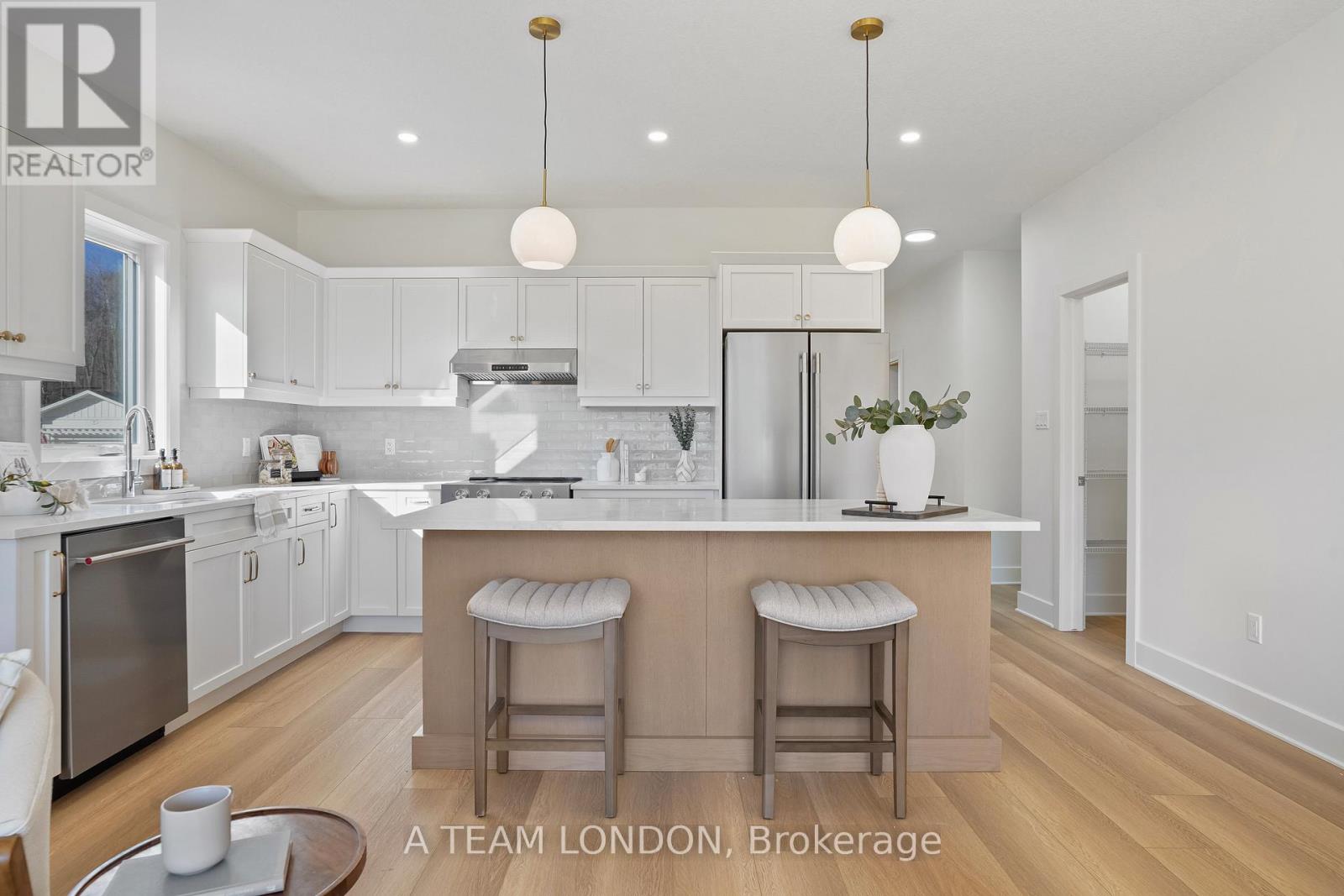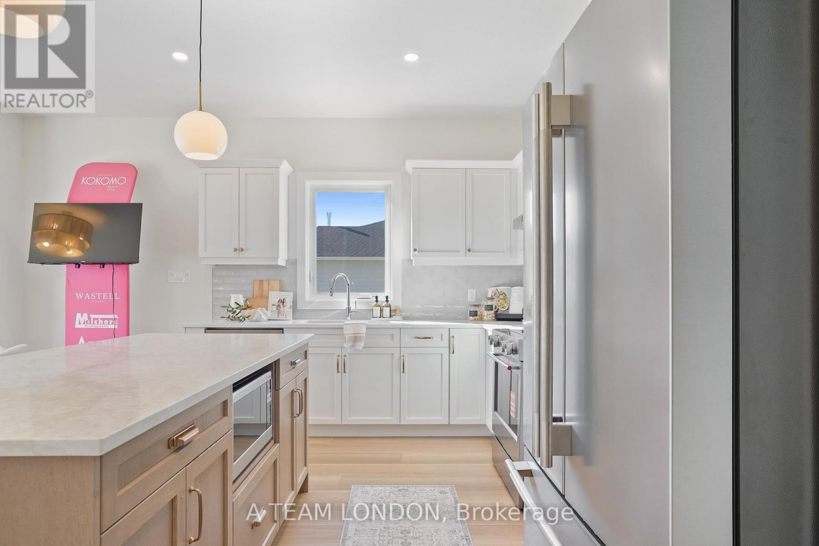 A brand new build with immediate possession available! Welcome to The Dock Model, where upscale living meets effortless style. This 1,580 sq. ft. bungalow is designed for those who love to be part of the action, whether hosting friends or catching the game from the kitchen island. The open-concept layout connects the kitchen, living, and dining areas seamlessly, creating the perfect space for entertaining. Luxury vinyl plank flooring flows throughout the main living areas, while the kitchen showcases quartz countertops and an inviting island. The primary bedroom features a walk-in closet and a spa-inspired ensuite. A second bedroom, full bath, and versatile bonus room-ideal for a home office or den-complete this stylish and functional layout. A large two car garage is a great place to store your paddle board or beach gear! Homeowners are members of a private Beach Club, which includes a large pool, fitness centre, yoga studio and an owner's lounge. The community also offers pickleball courts, playground, and only a 5-minute walk to the beach! That means Lake Erie, sand, surf and relaxation are always at your fingertips. (id:64974)